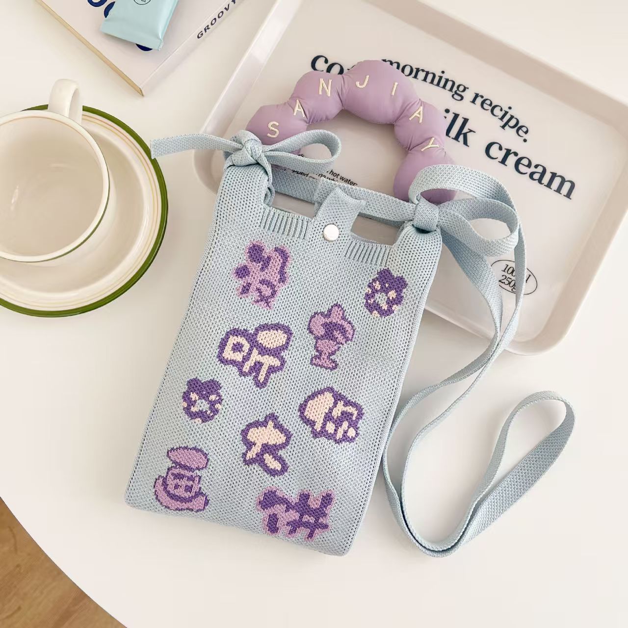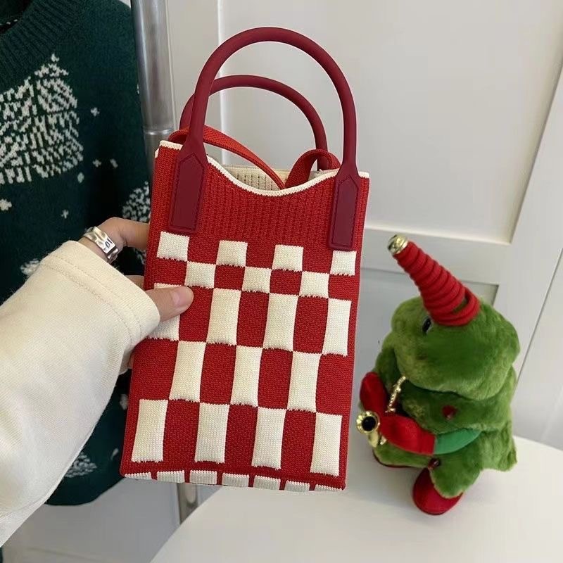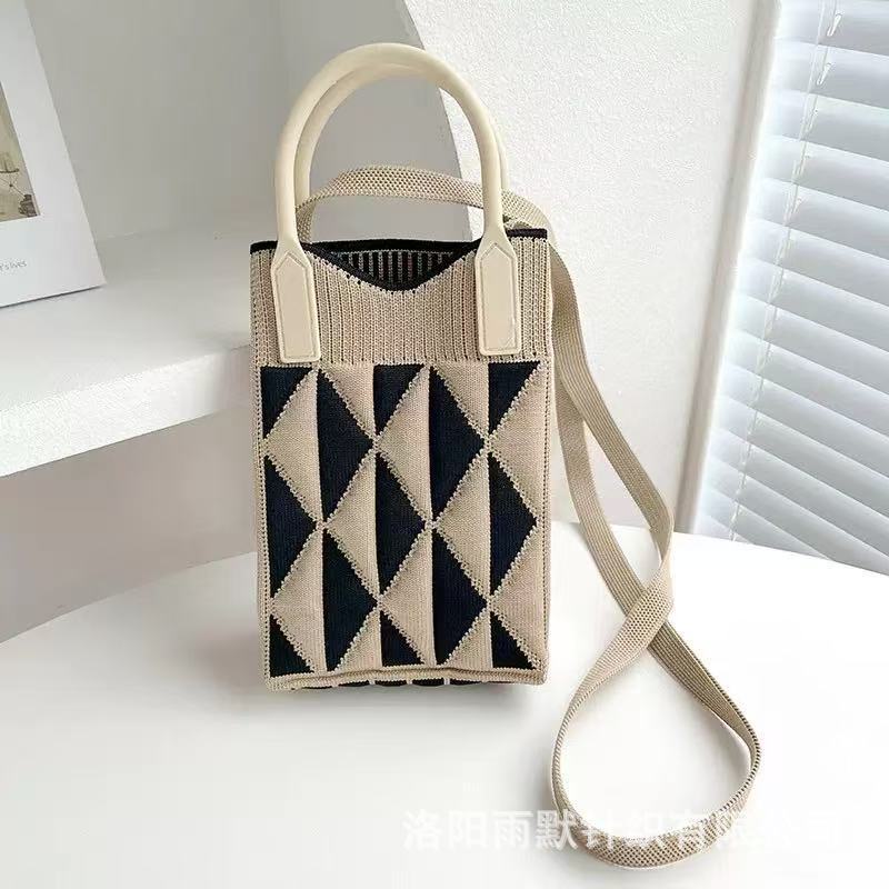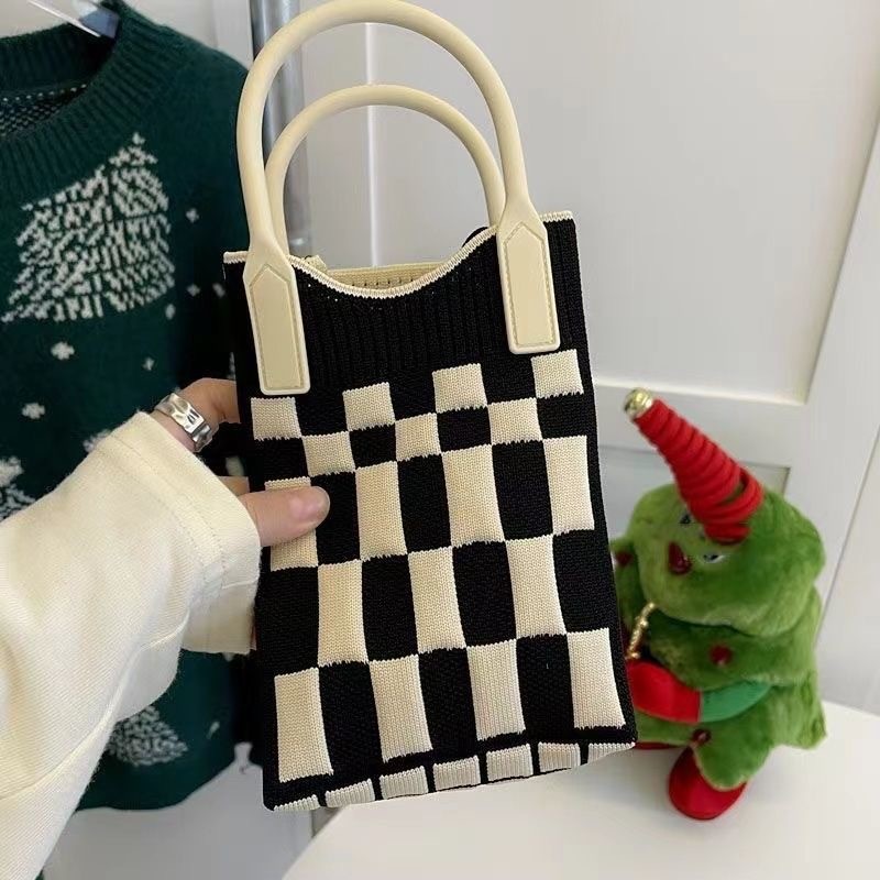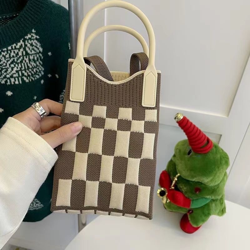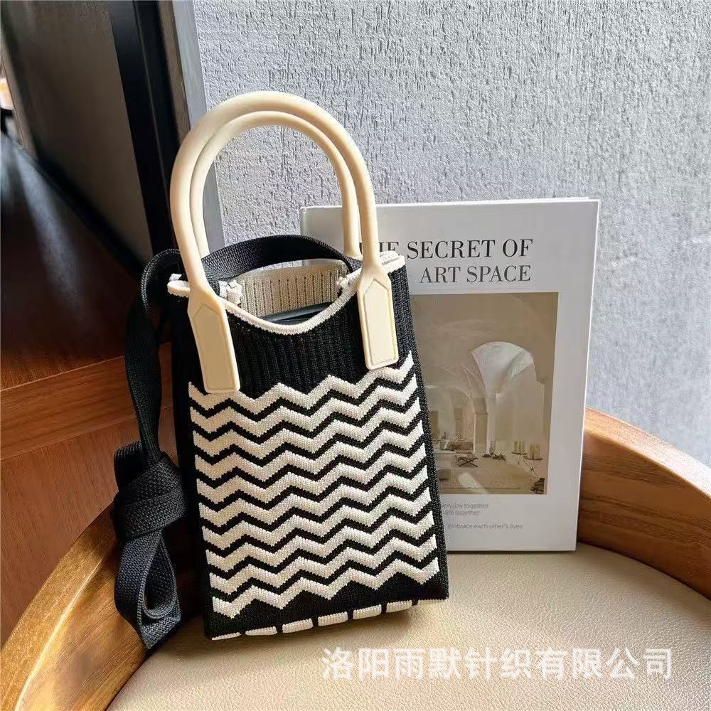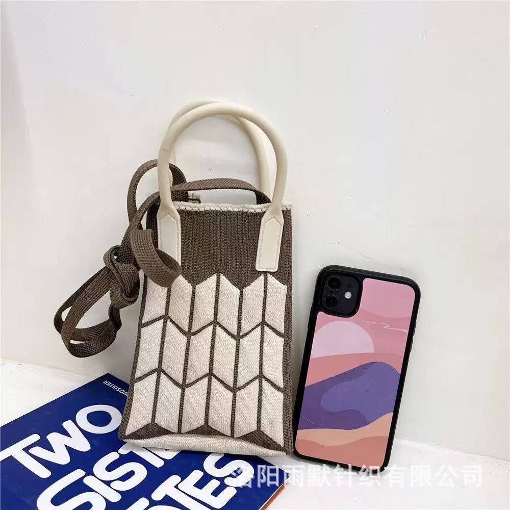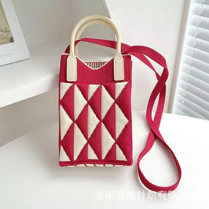 새로운 숙녀 귀여운 미니 가방 올 매치 패션 휴대 전화 가방 만화 니트 핸드백 어깨 가방 크로스 바디 가방