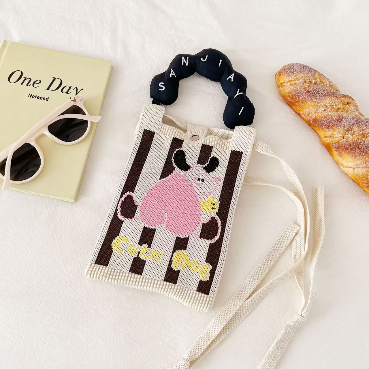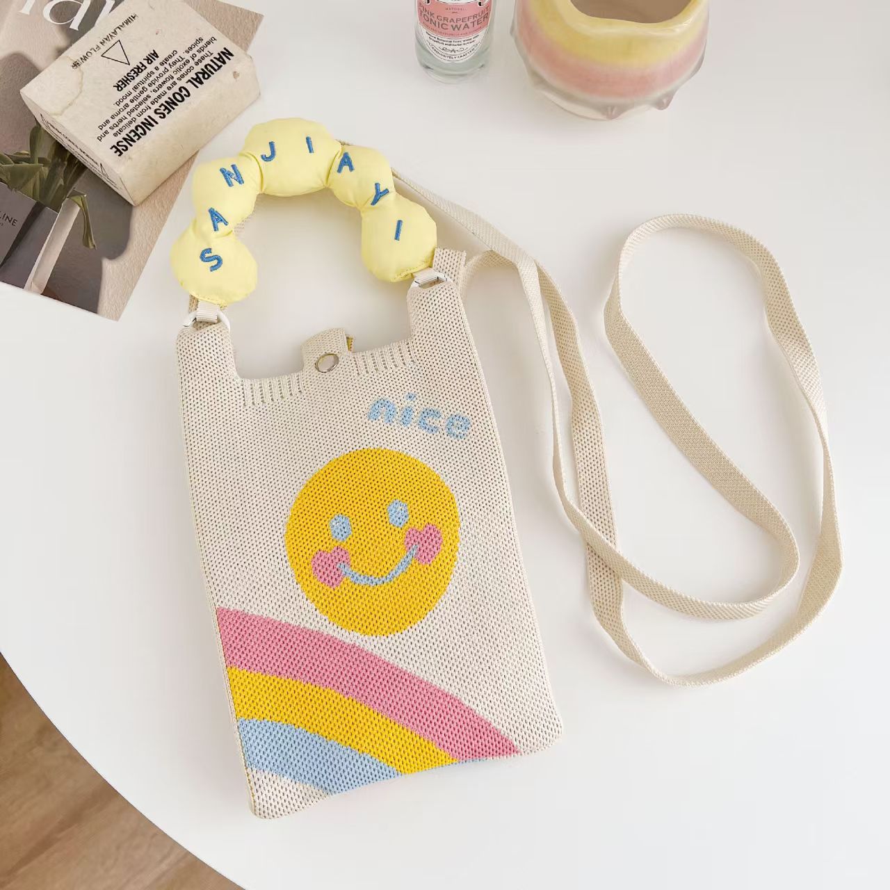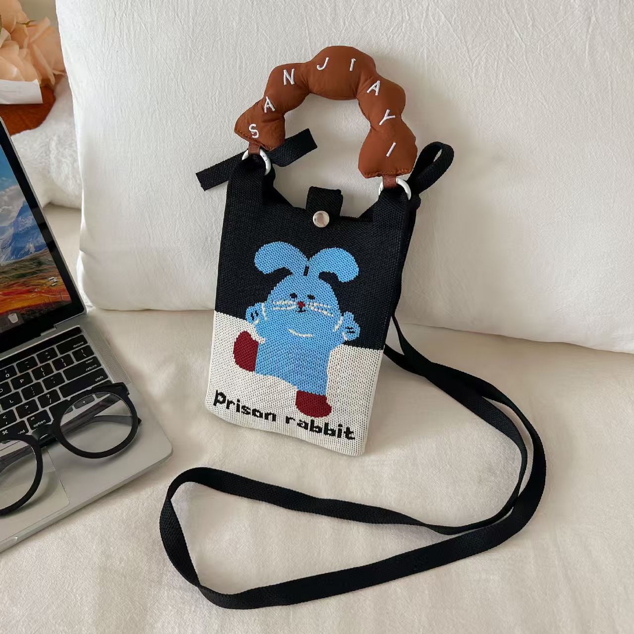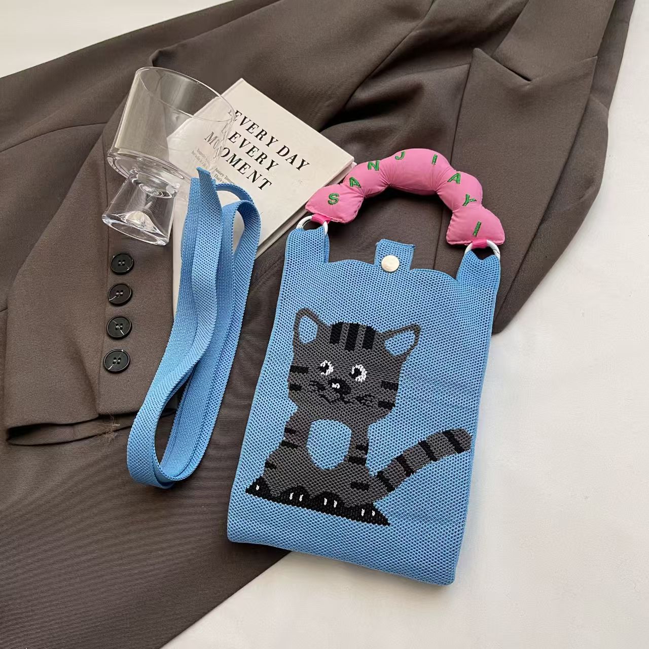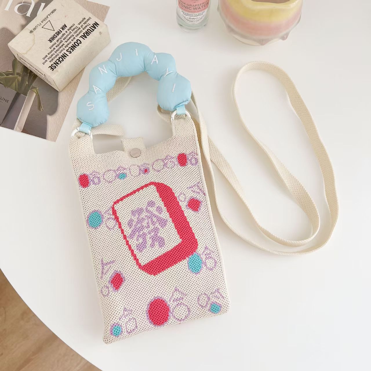 새로운 숙녀 귀여운 미니 가방 올 매치 패션 휴대 전화 가방 만화 니트 핸드백 어깨 가방 크로스 바디 가방