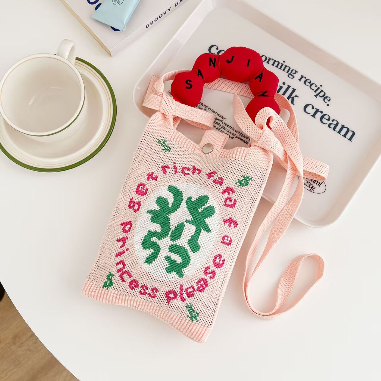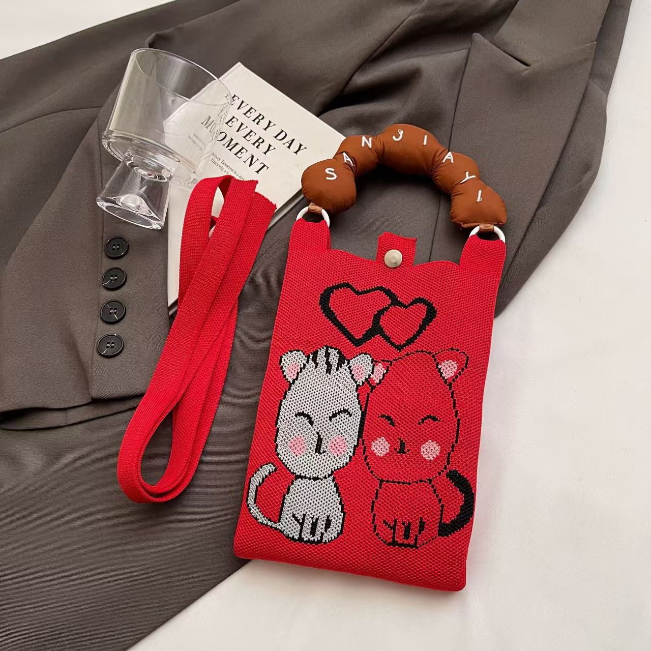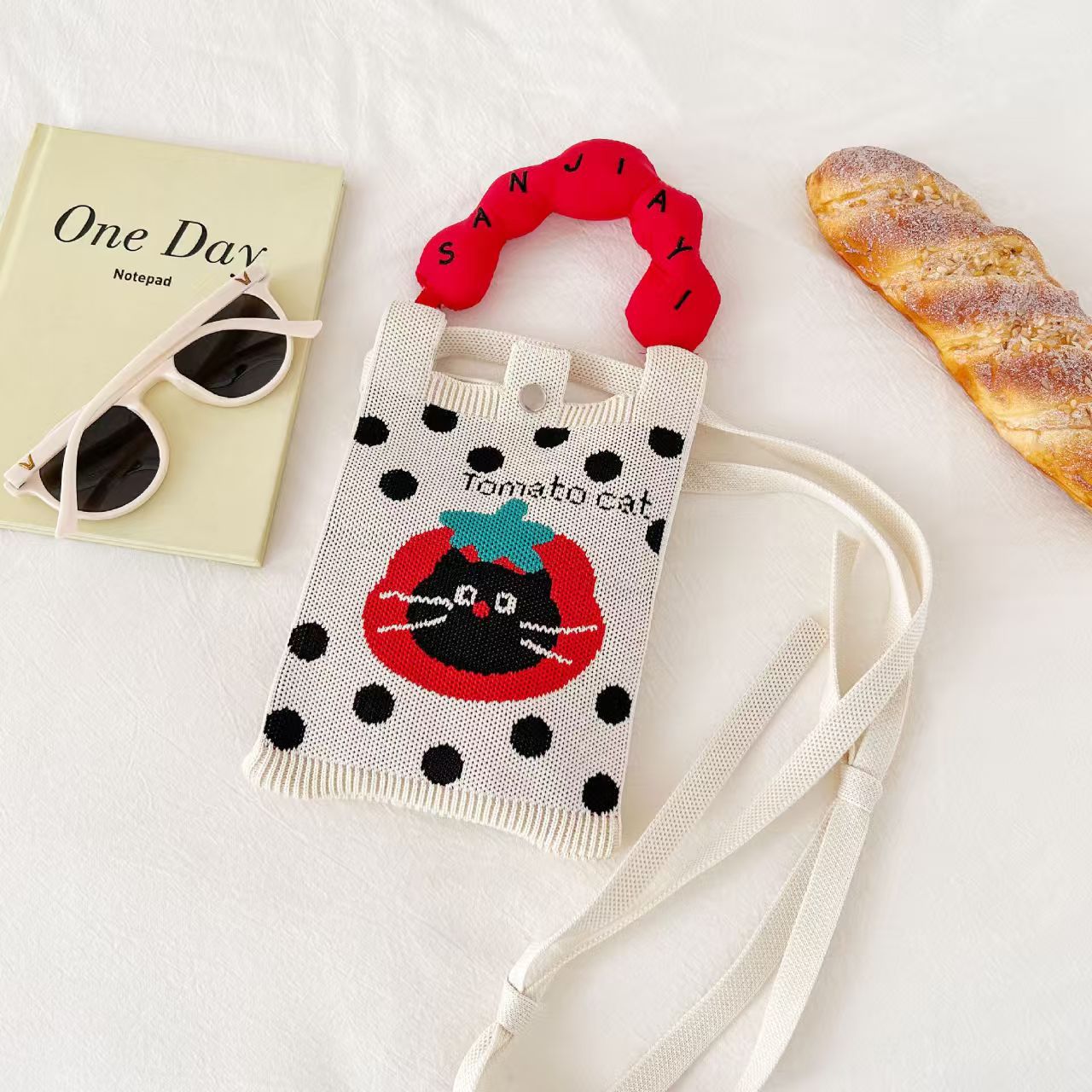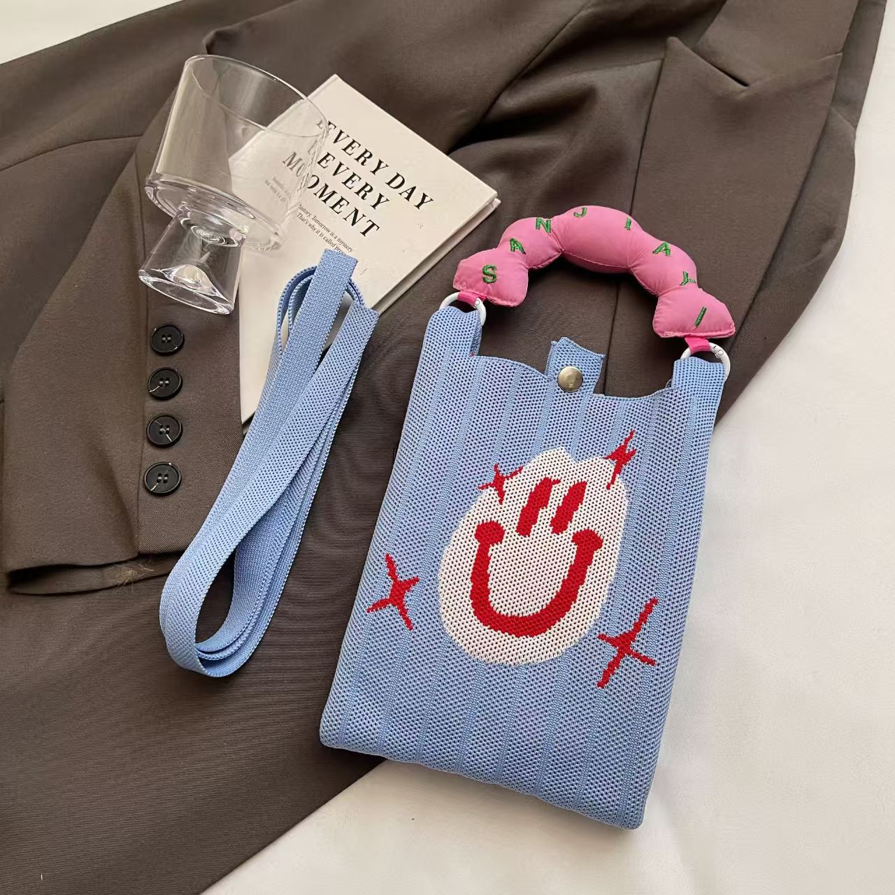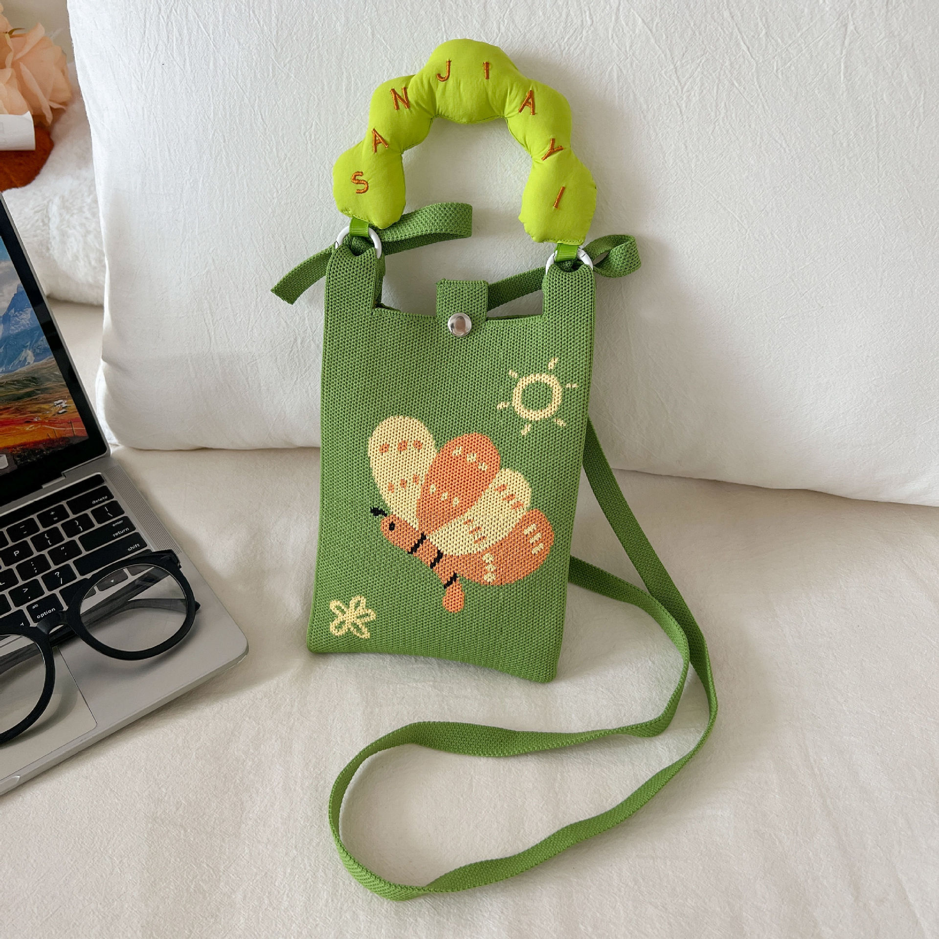 새로운 숙녀 귀여운 미니 가방 올 매치 패션 휴대 전화 가방 만화 니트 핸드백 어깨 가방 크로스 바디 가방
