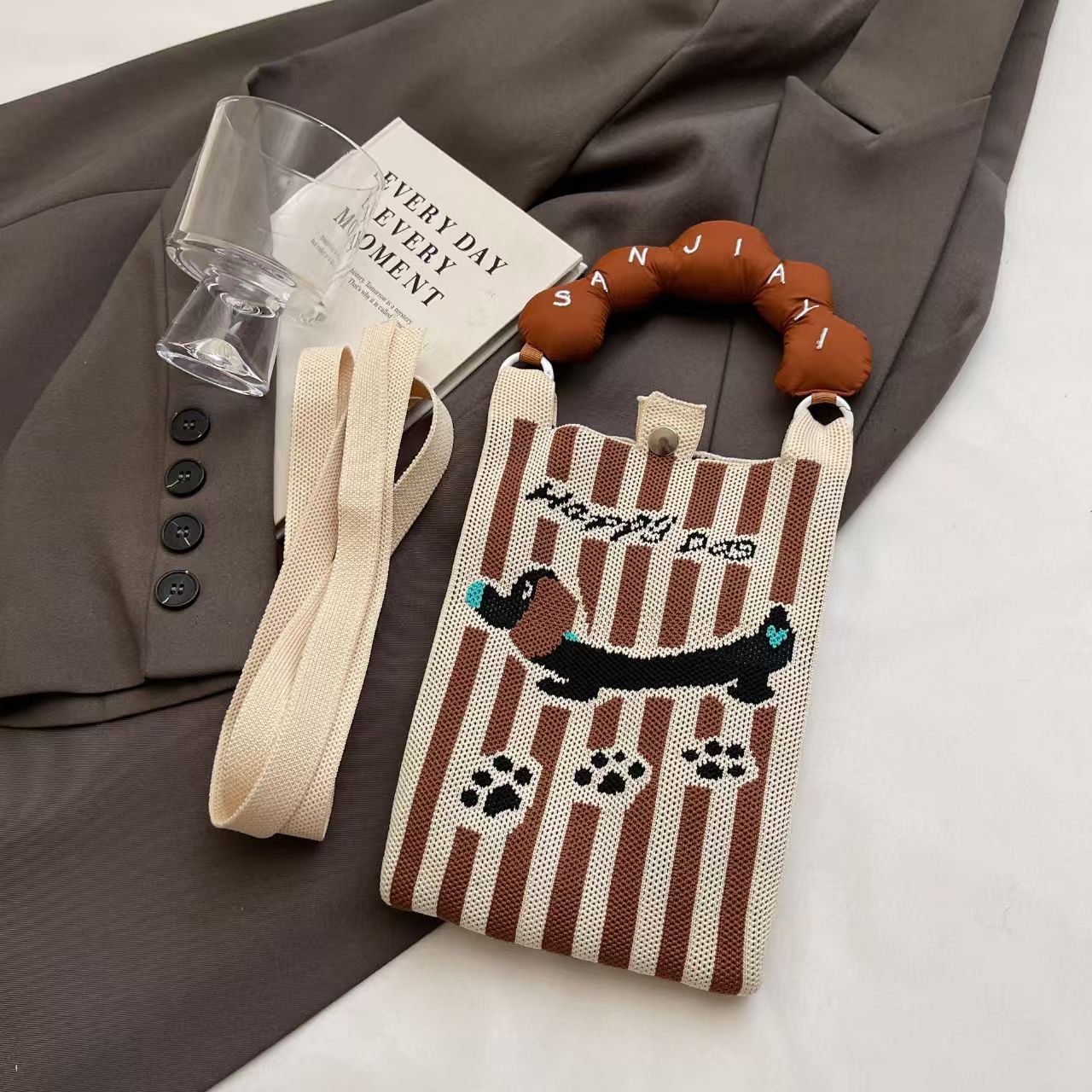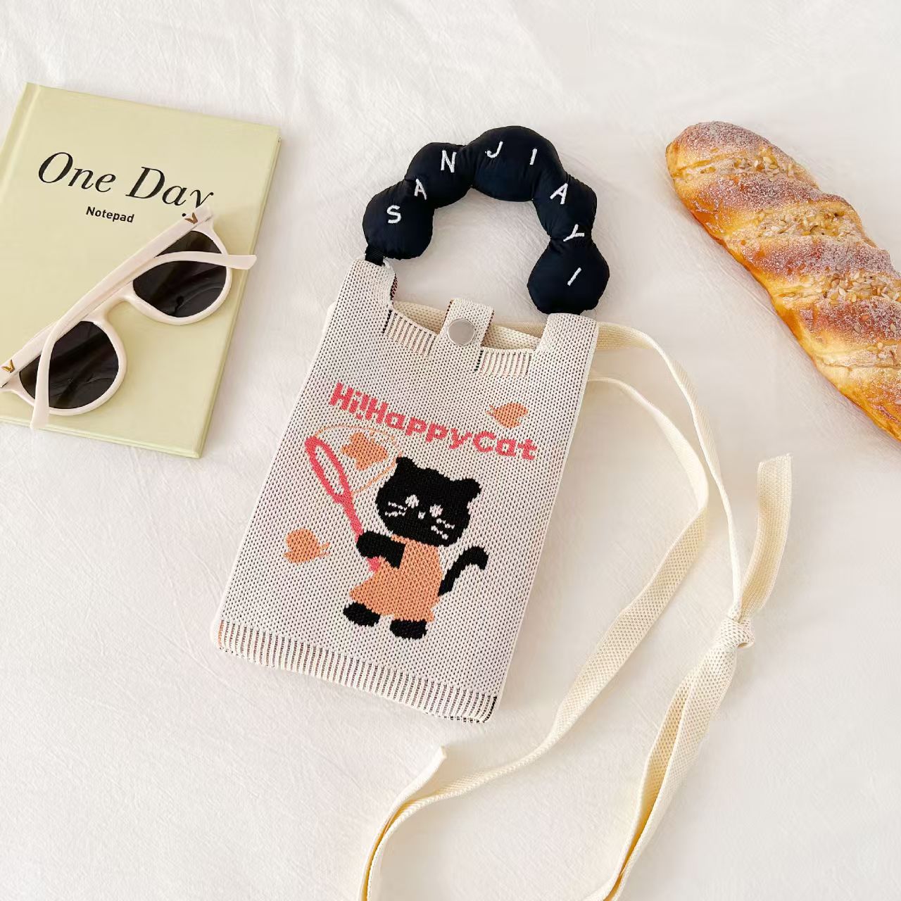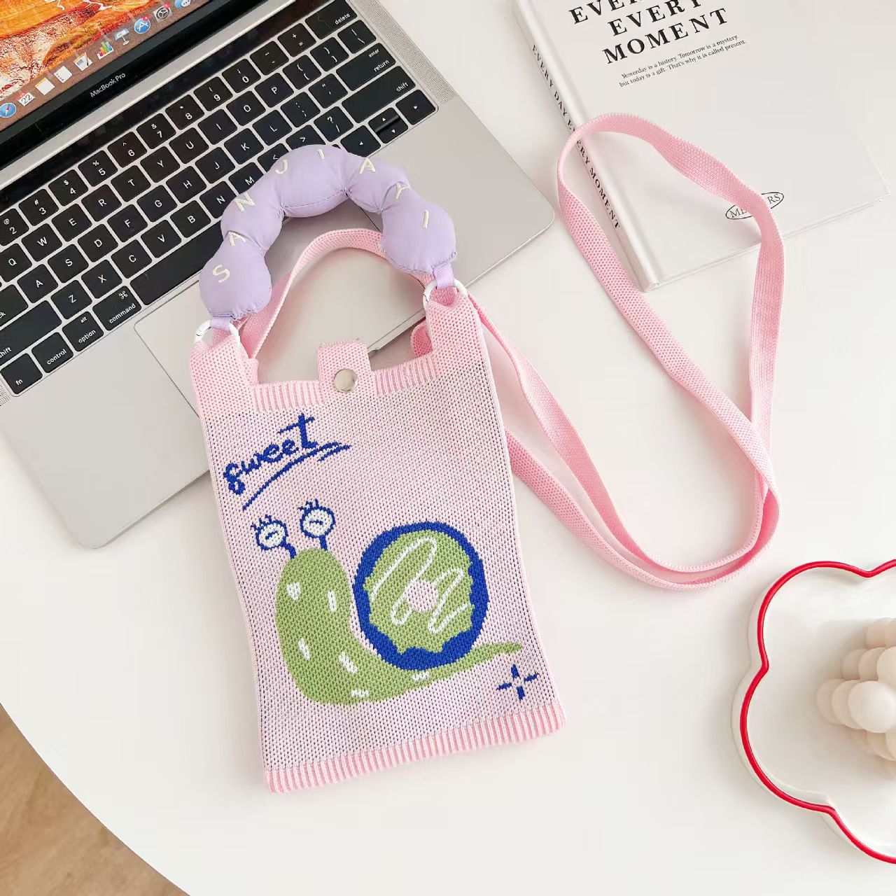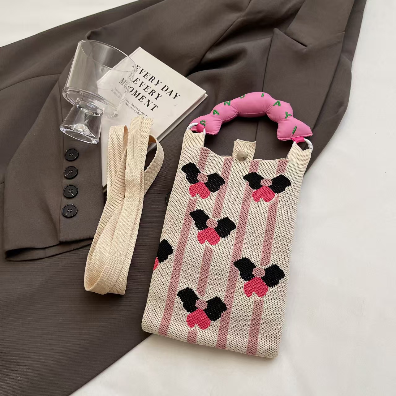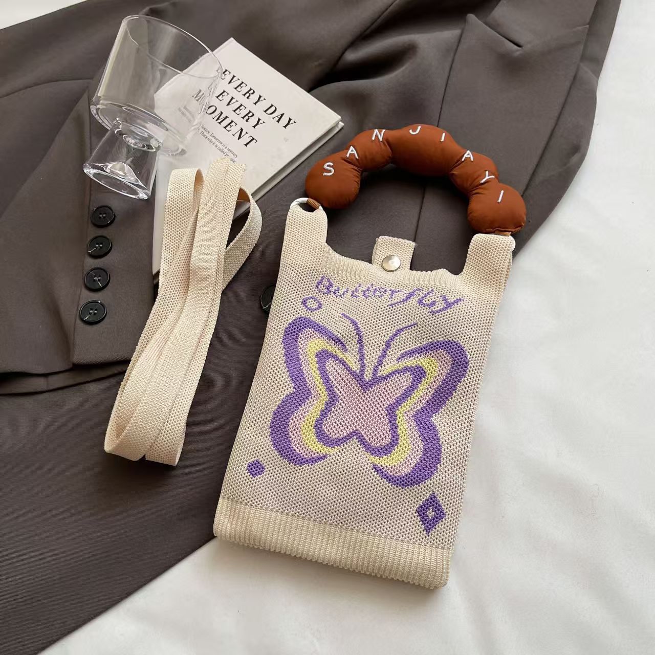 새로운 숙녀 귀여운 미니 가방 올 매치 패션 휴대 전화 가방 만화 니트 핸드백 어깨 가방 크로스 바디 가방