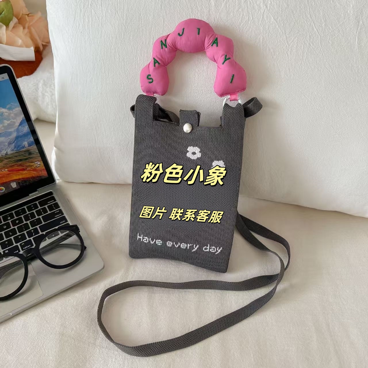 새로운 숙녀 귀여운 미니 가방 올 매치 패션 휴대 전화 가방 만화 니트 핸드백 어깨 가방 크로스 바디 가방스토어 가기