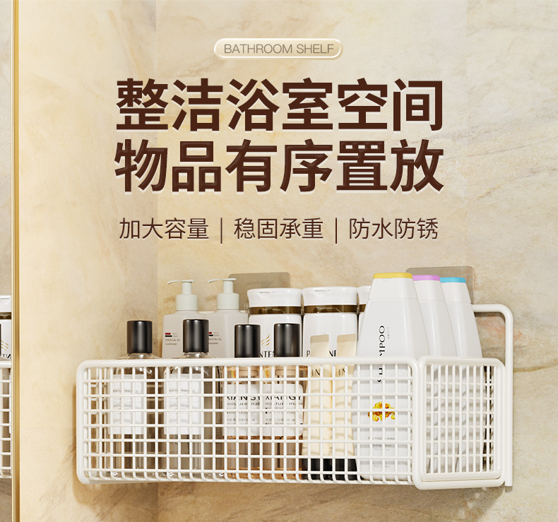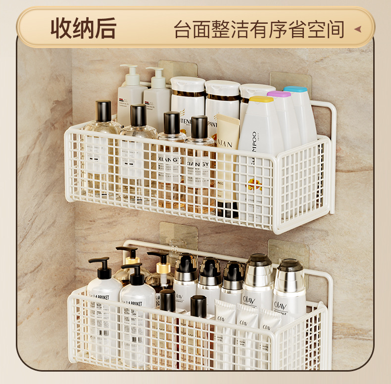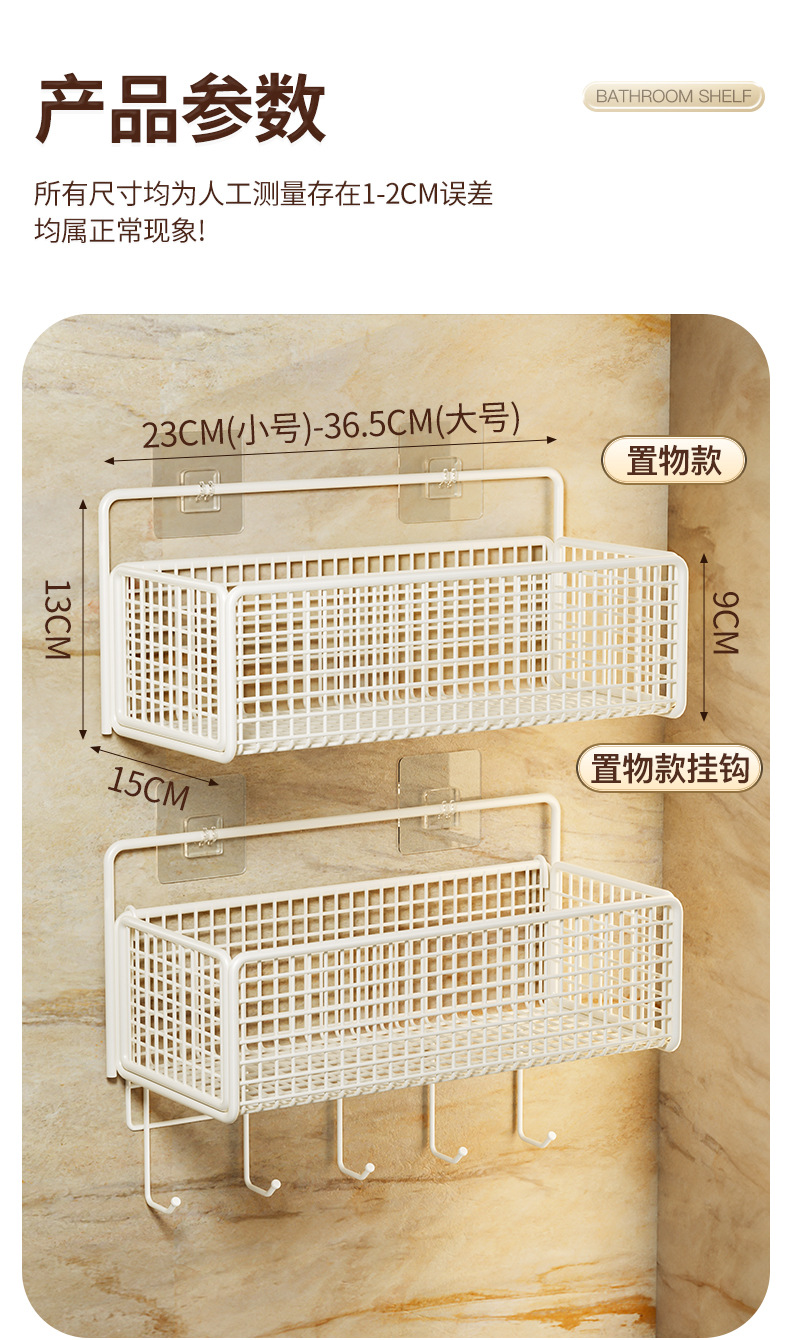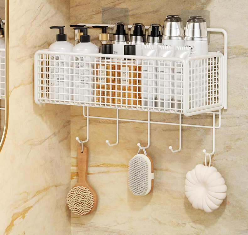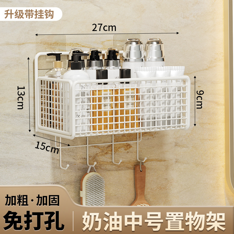 욕실 수납 선반, 욕실 화장실 벽걸이형 펀치 없는 벽걸이형 화장실 수납 바구니 걸이 바구니스토어 가기