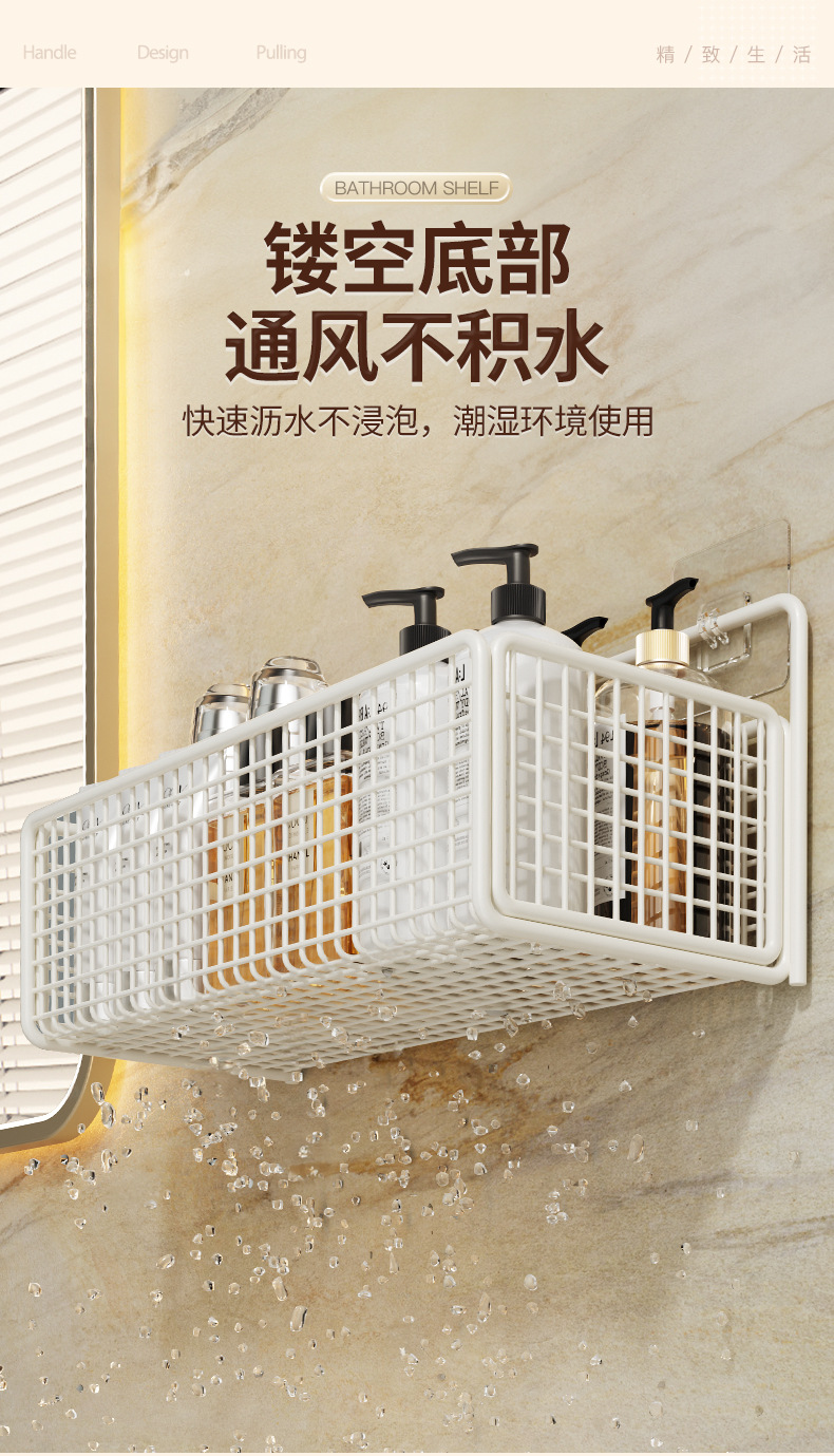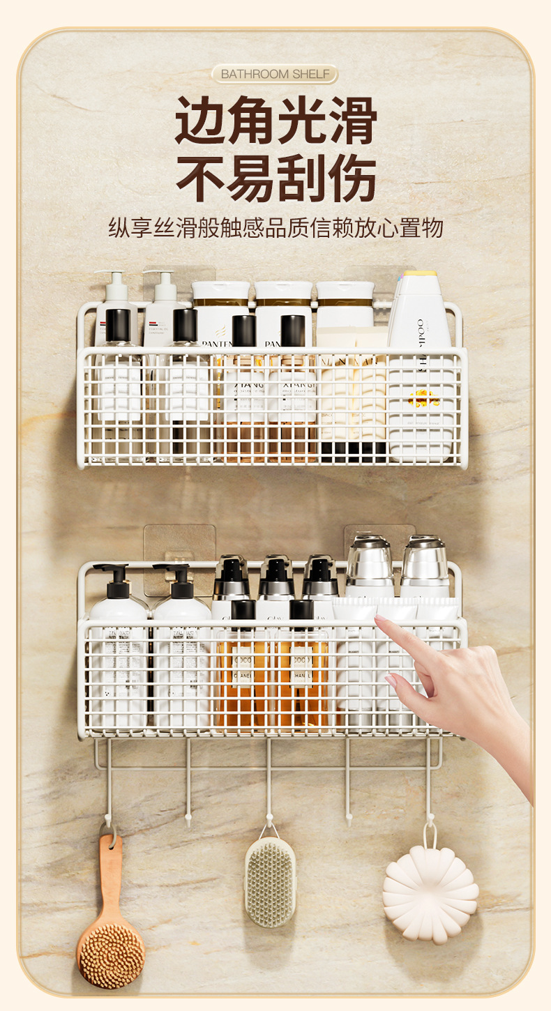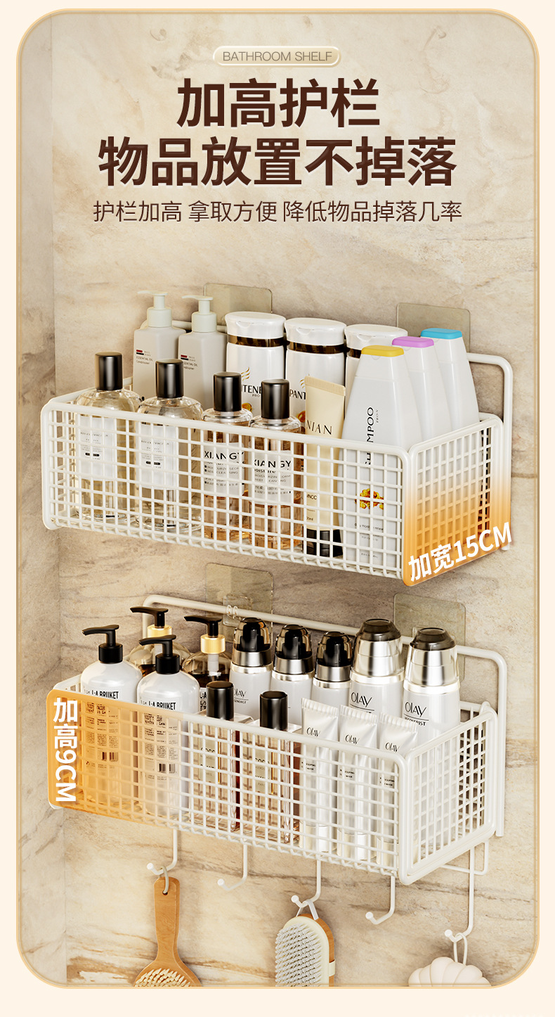 욕실 수납 선반, 욕실 화장실 벽걸이형 펀치 없는 벽걸이형 화장실 수납 바구니 걸이 바구니스토어 가기