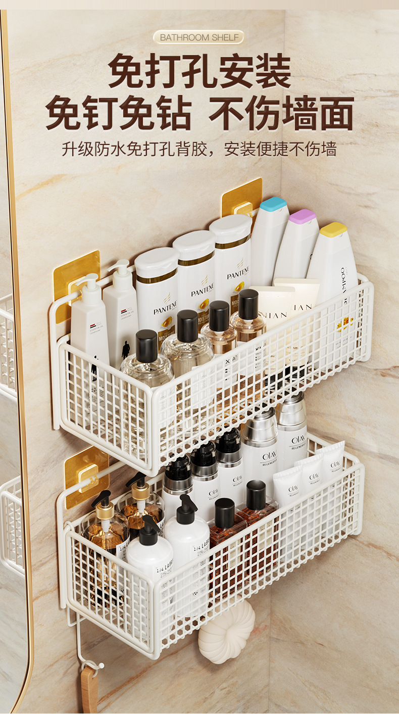 욕실 수납 선반, 욕실 화장실 벽걸이형 펀치 없는 벽걸이형 화장실 수납 바구니 걸이 바구니