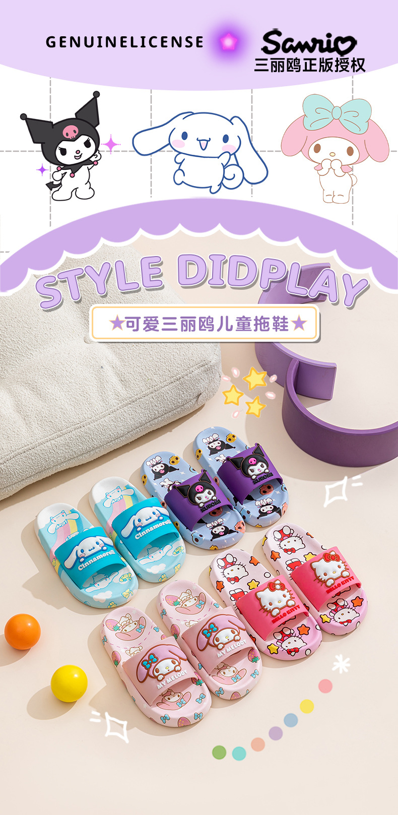 산리오 슬리퍼 어린이 국경 비 슬립 귀여운 한 단어 슬리퍼 만화 실내 가정 유치원 슬리퍼 소녀 용 슬리퍼