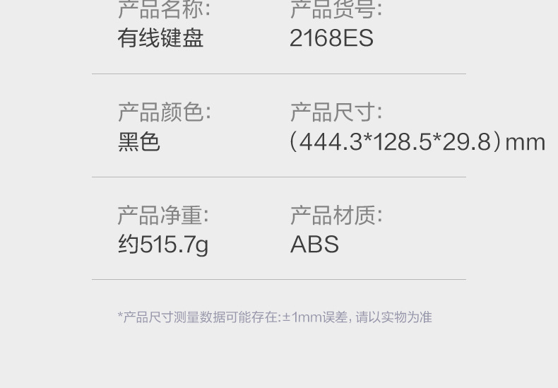 델리 키보드 유선 사무실 음소거 2168 데스크탑 컴퓨터 노트북 외부 전자 스포츠 게임 타이핑 유니버설