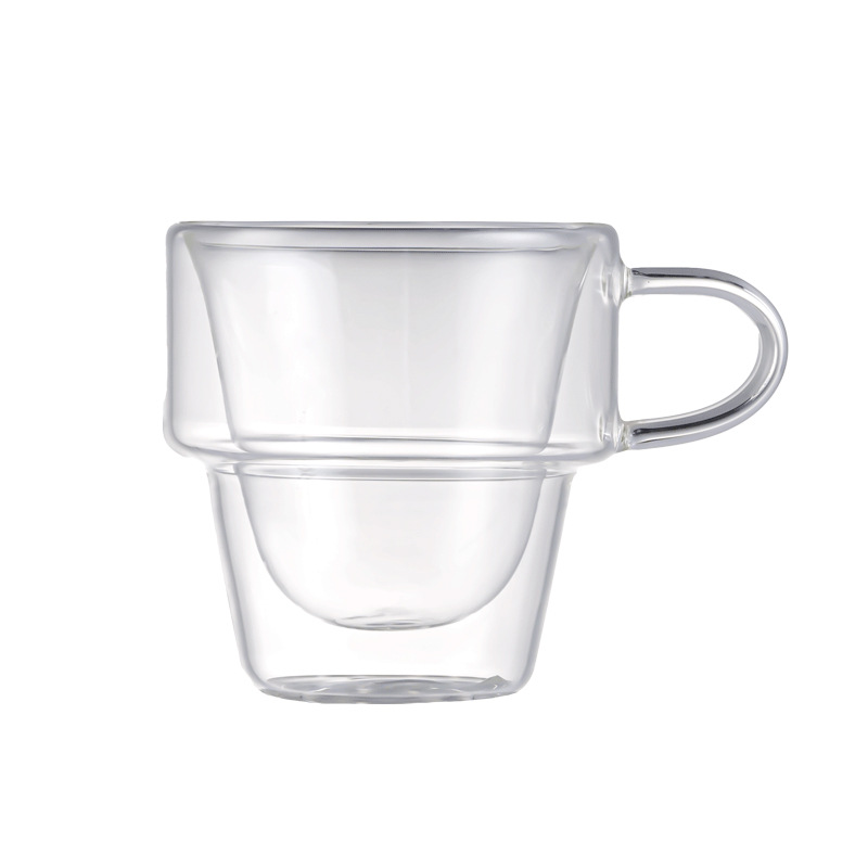 높은 붕규산 유리 창조적 인 원피스 더블 레이어 벨트 유리 컵 커피 우유 투명 더블 레이어 아침 식사 컵