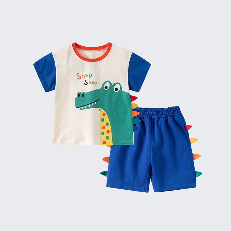국경 간 재고 소년 세트 티셔츠 여름 새로운 유럽과 미국 어린이 캐주얼 반팔 투피스 세트