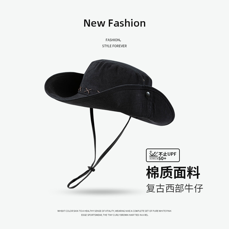 미국 레트로 서부 카우보이 모자 어린이 남성 캠핑 어부 모자 선 스크린 모자 햇살 모자 야외 등산 모자