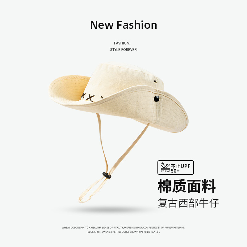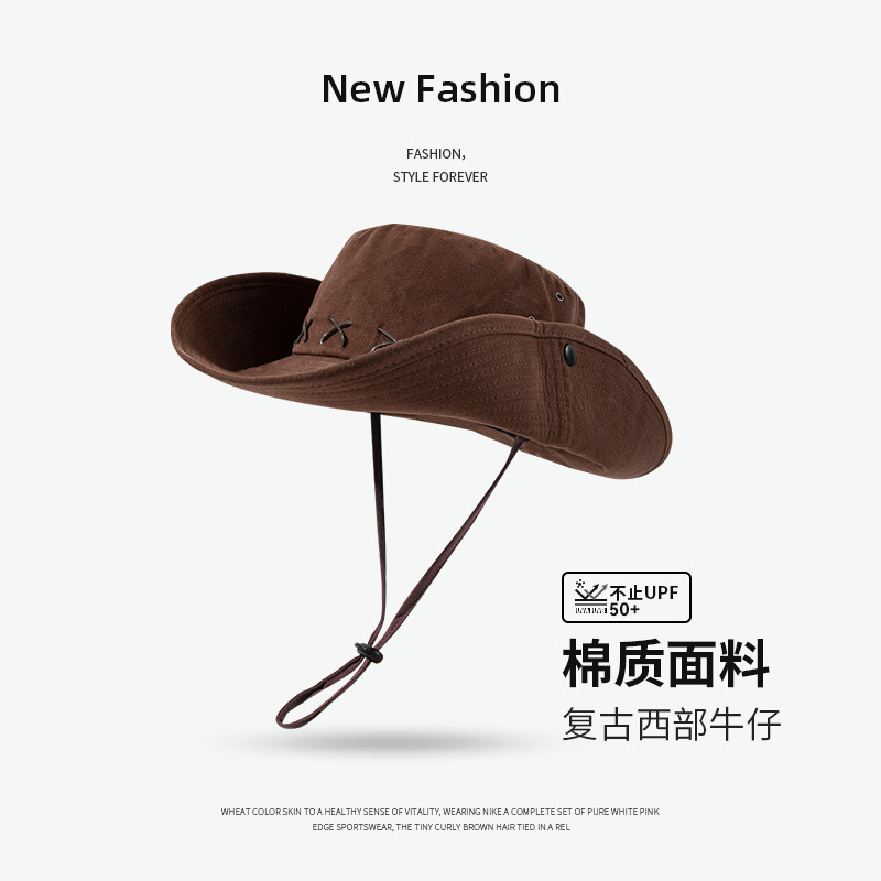 미국 레트로 서부 카우보이 모자 어린이 남성 캠핑 어부 모자 선 스크린 모자 햇살 모자 야외 등산 모자스토어 가기