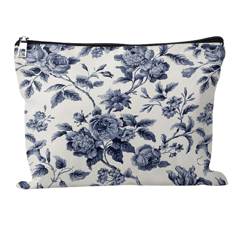 아마존 국경 화장품 가방 맞춤형 세탁 가방 파란색과 흰색 도자기 장미 양면 인쇄 여행 제조업체 도매스토어 가기