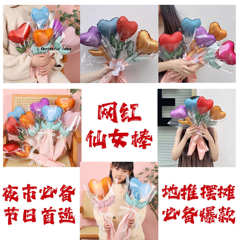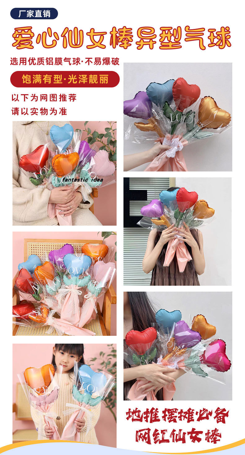 발렌타인 데이 요정 스틱 고백 어머니의 날 손으로 스틱 사랑 꽃 알루미늄 필름 풍선 학교 6 월 1 일 축제 사랑스토어 가기
