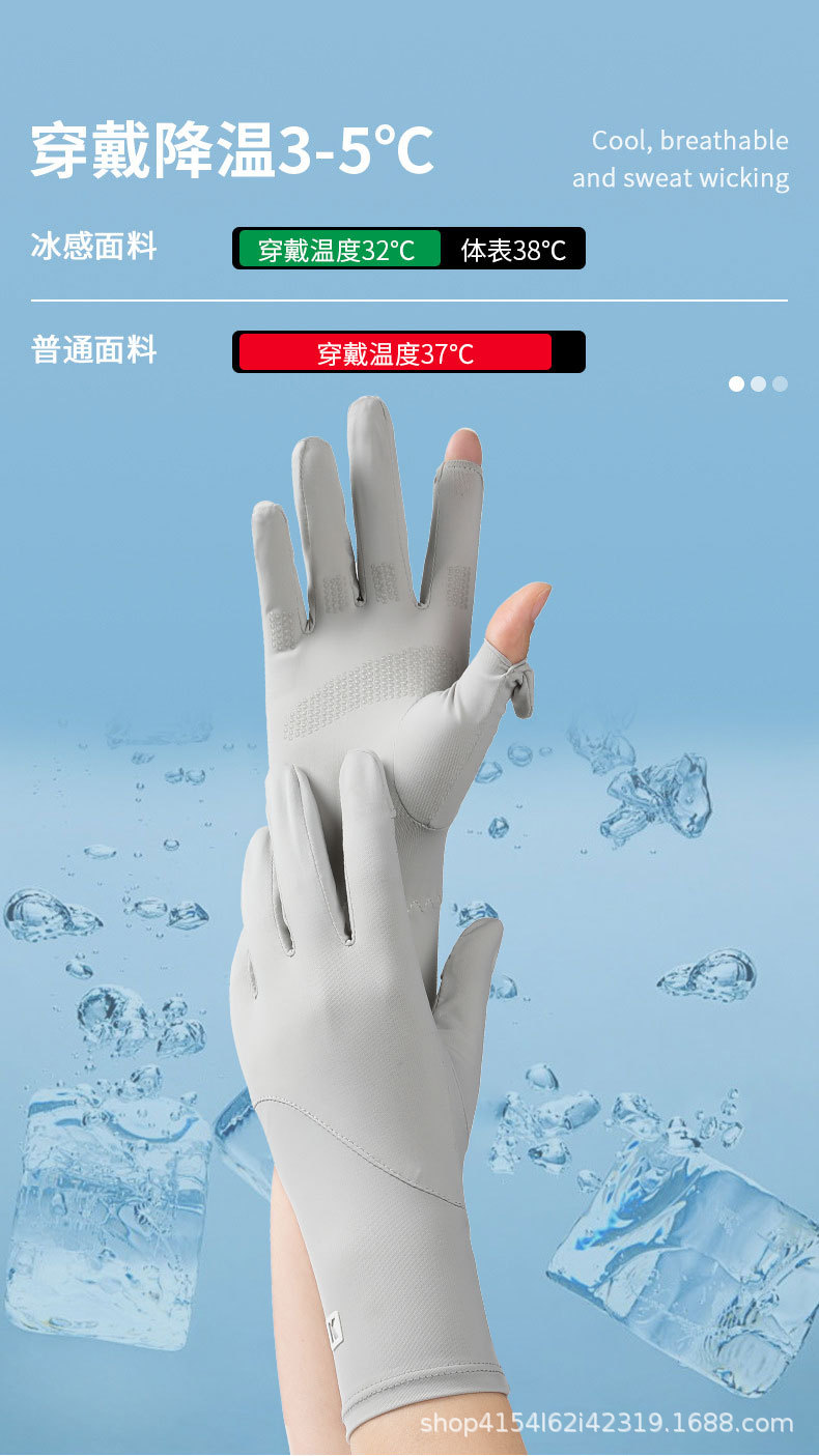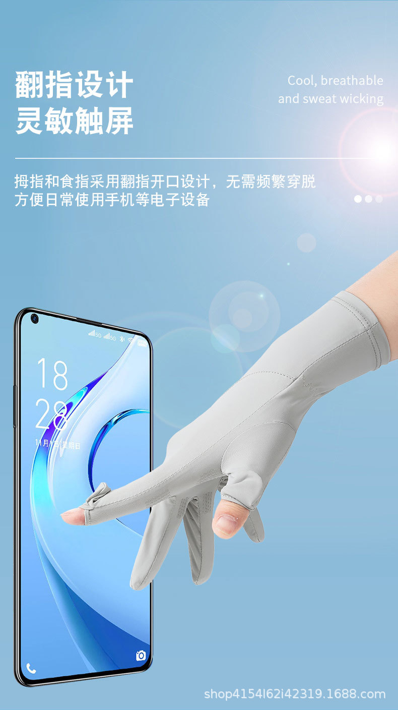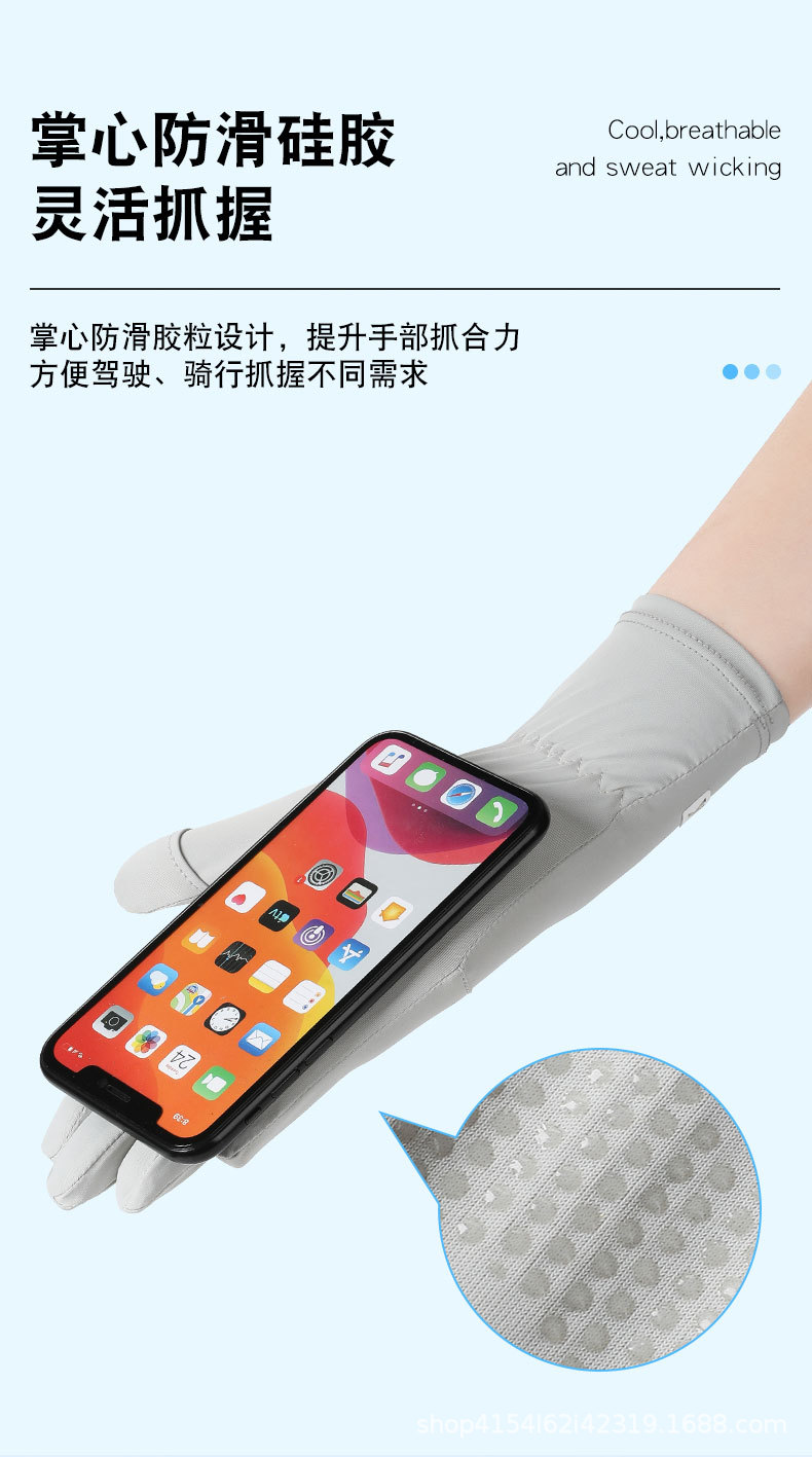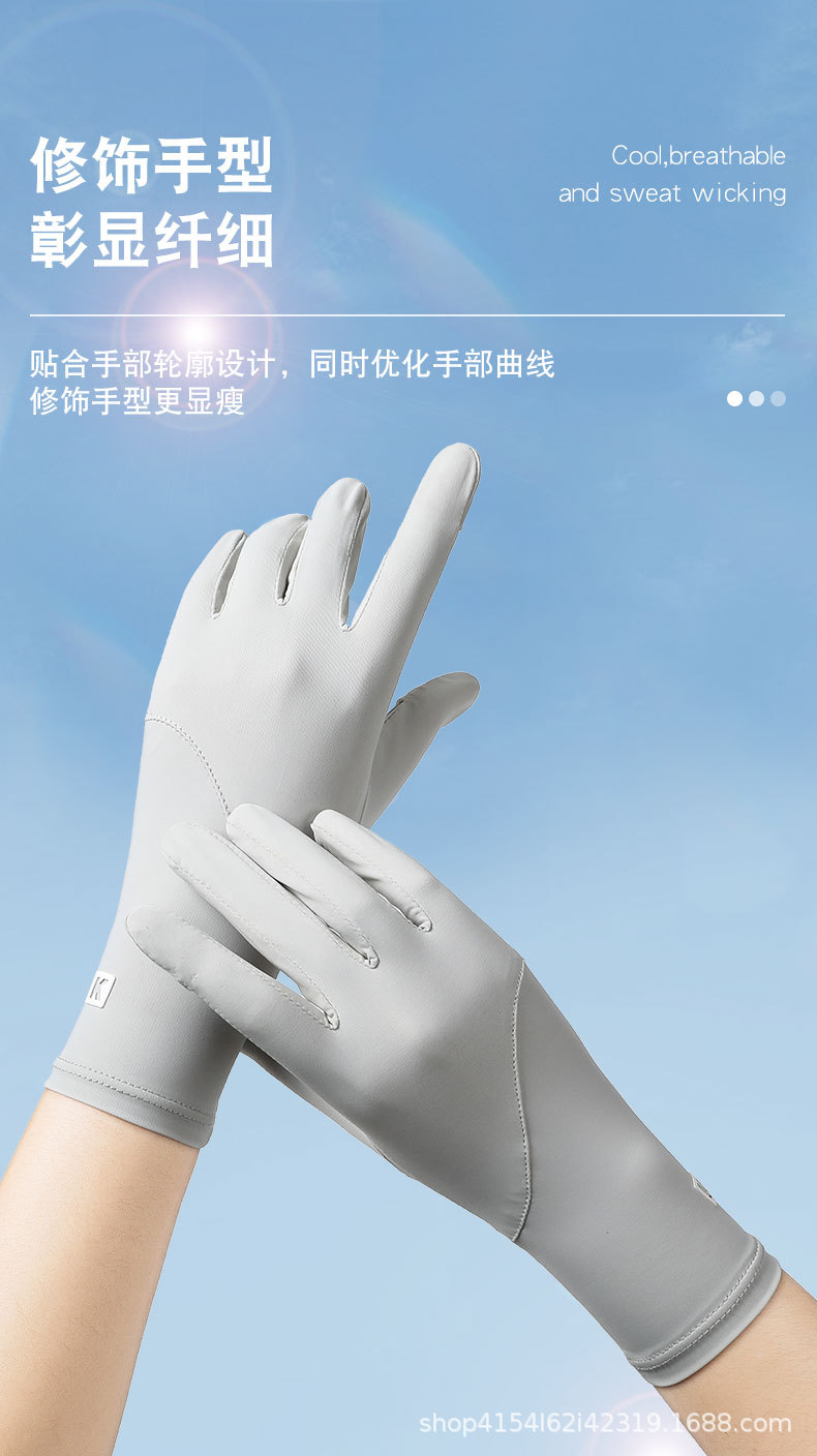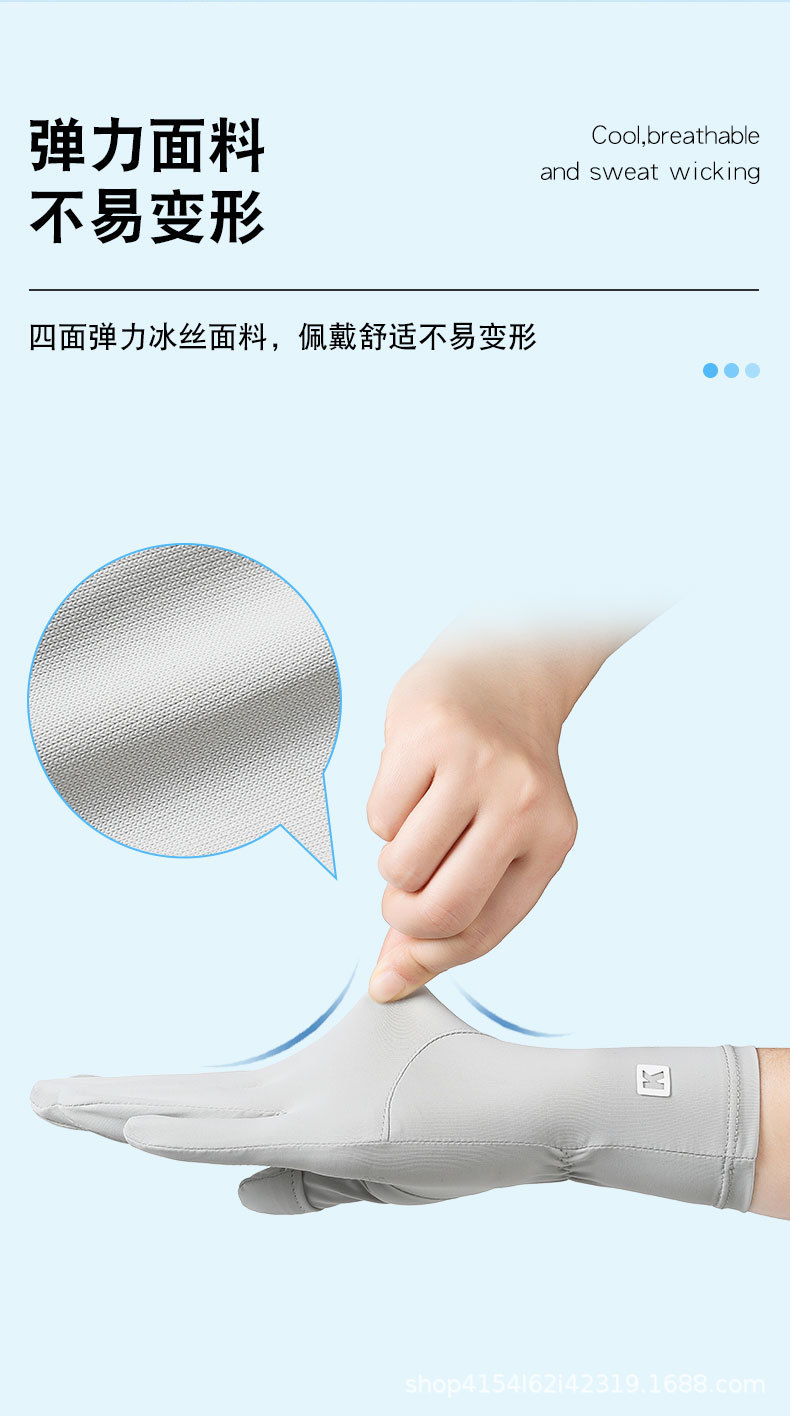 여름 자외선 차단 장갑, 얼음 실크 자외선 차단 운전 및 사이클링 장갑, 속건성, 가볍고 통기성이 뛰어난 확장 K 라벨 장갑