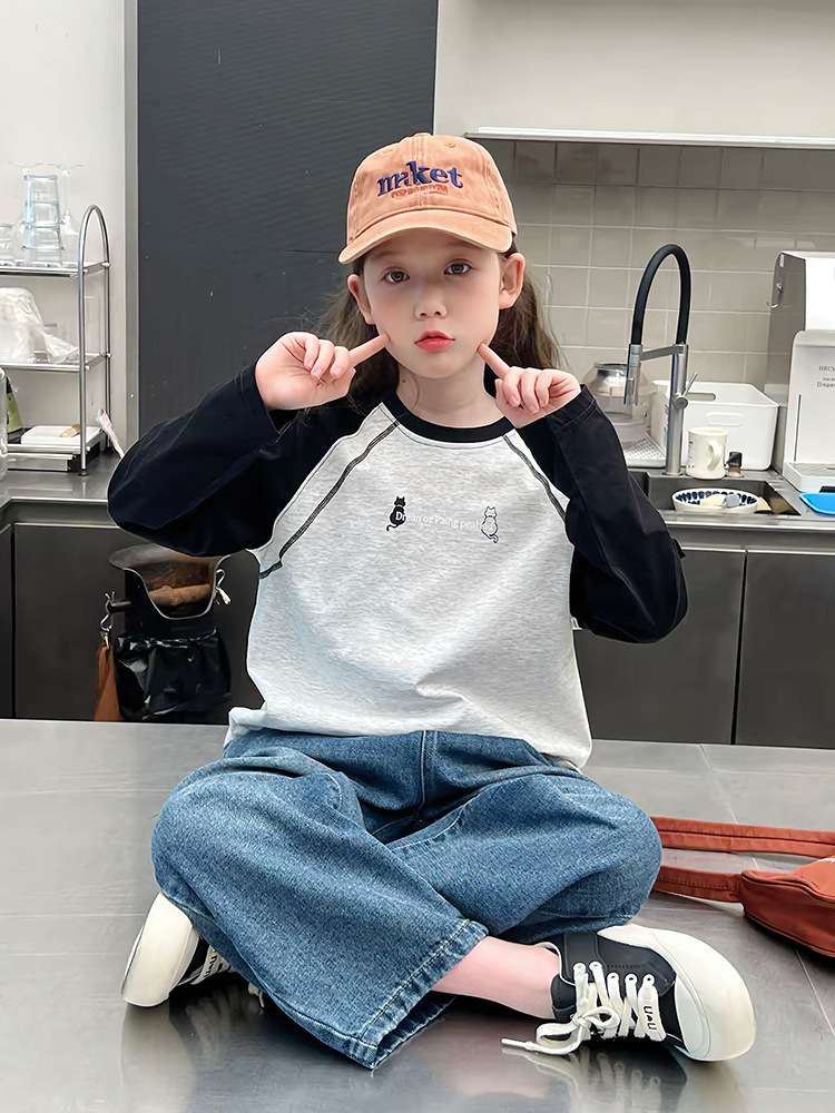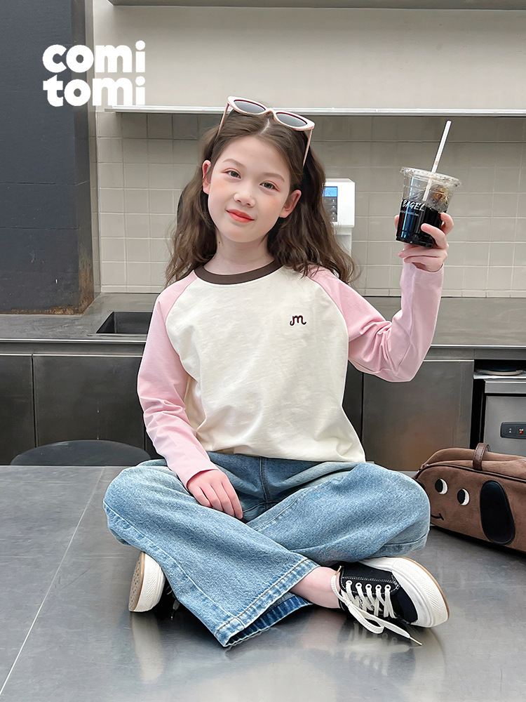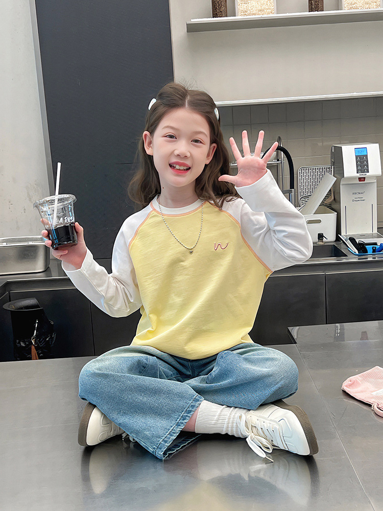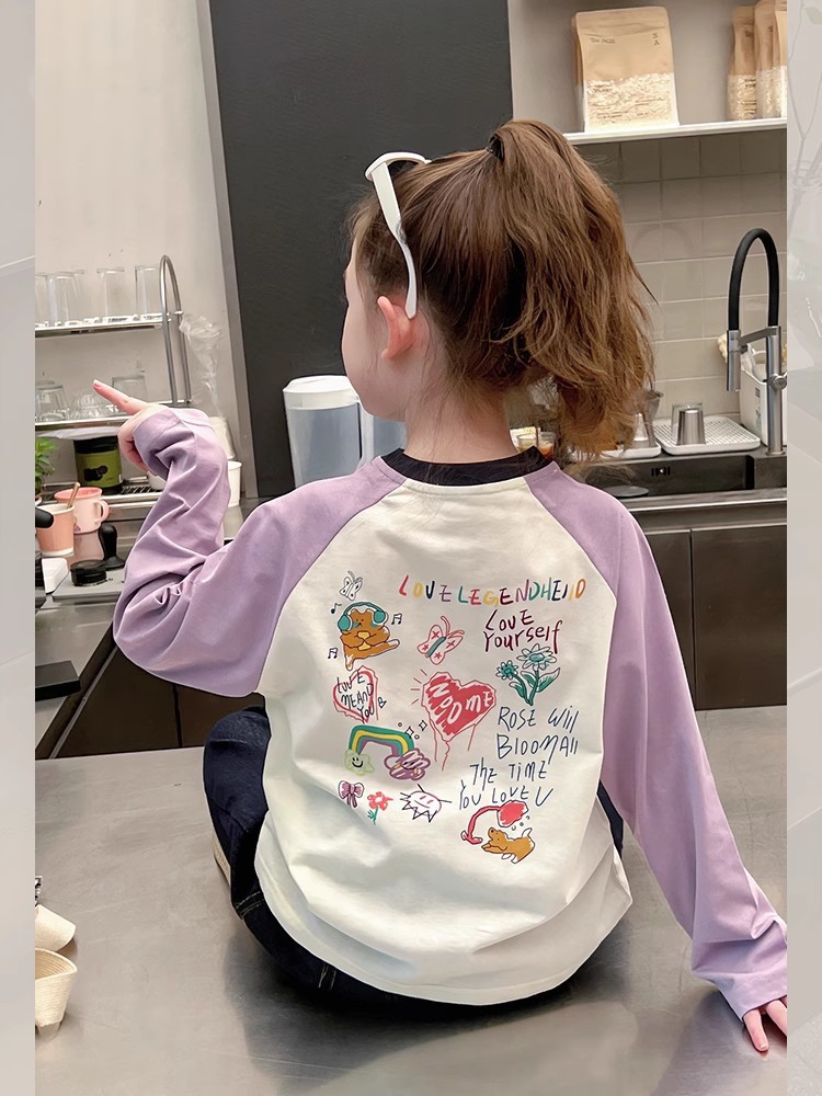 순면 긴팔 티셔츠 여아 래글런 슬리브 상의 아동용 스타일리쉬 베이스 레이어 중대형 아동복 2026 봄 가을 신상품스토어 가기