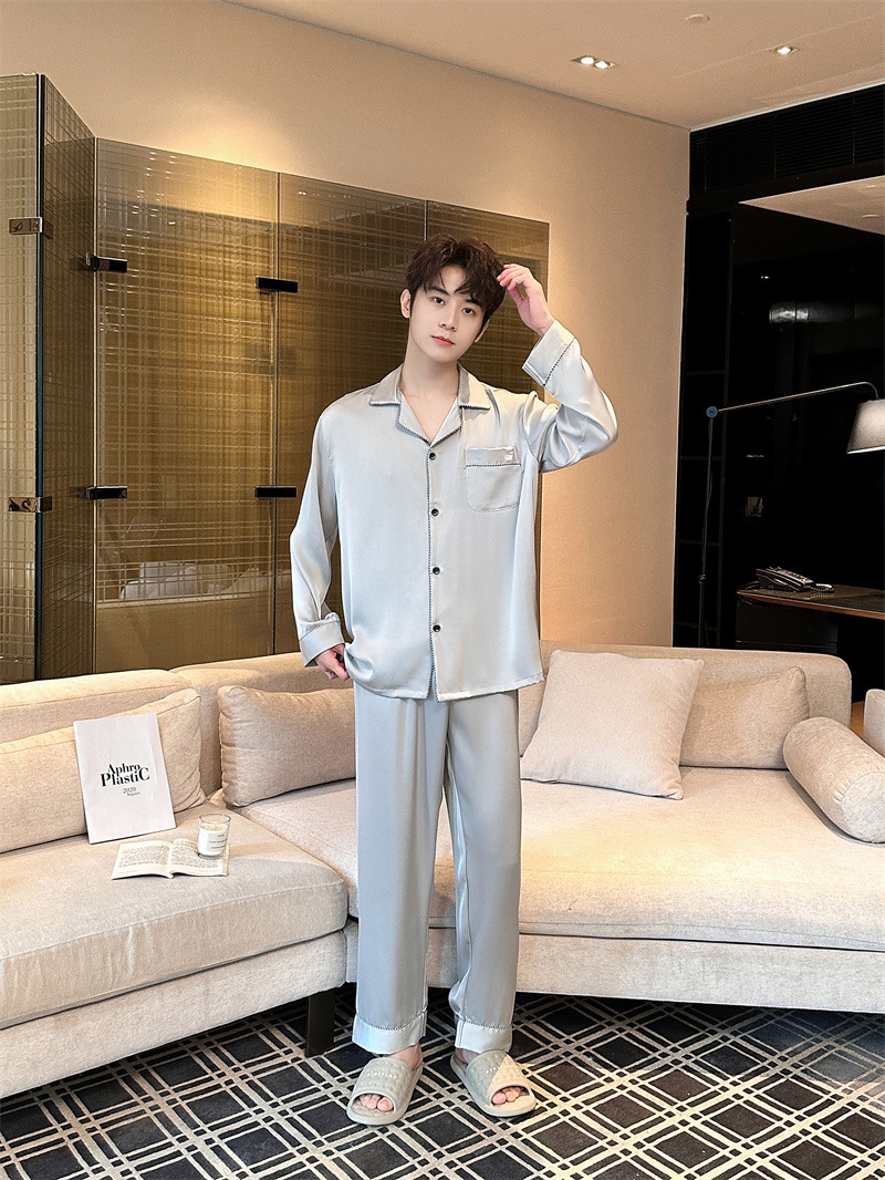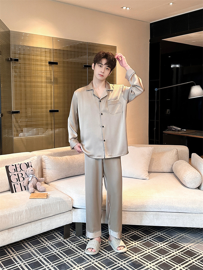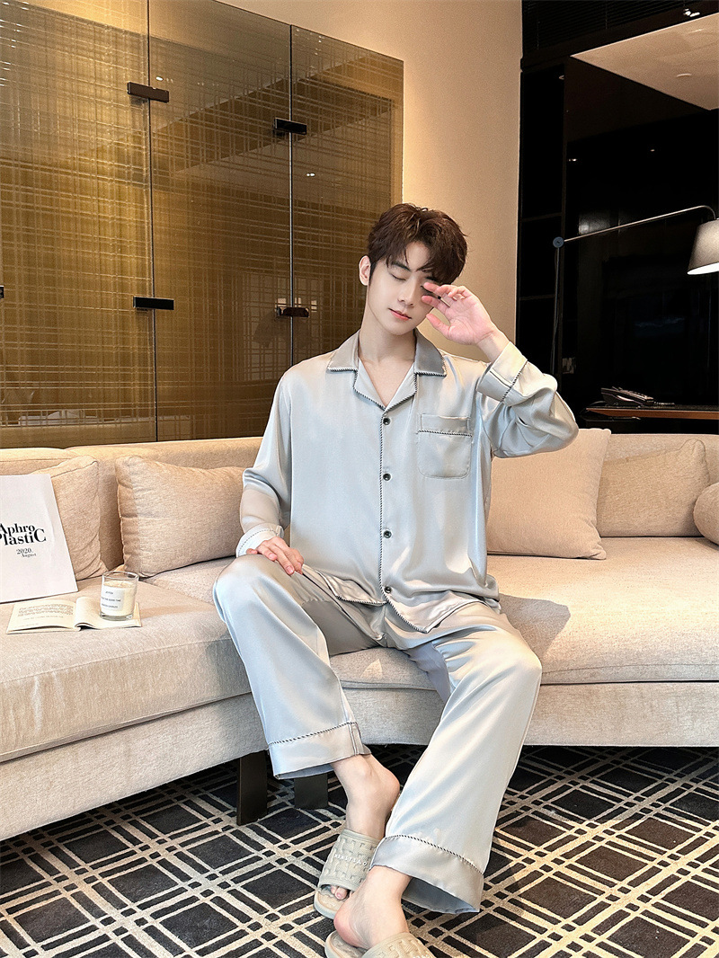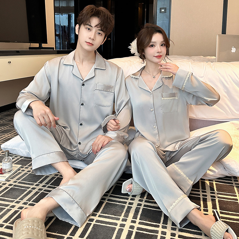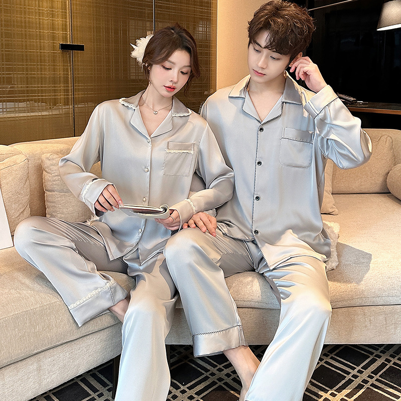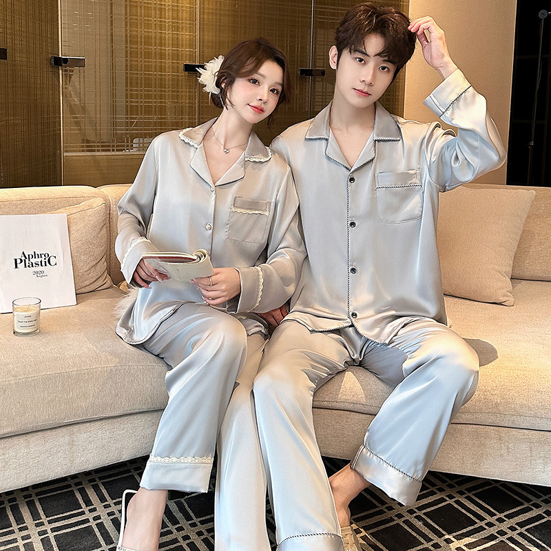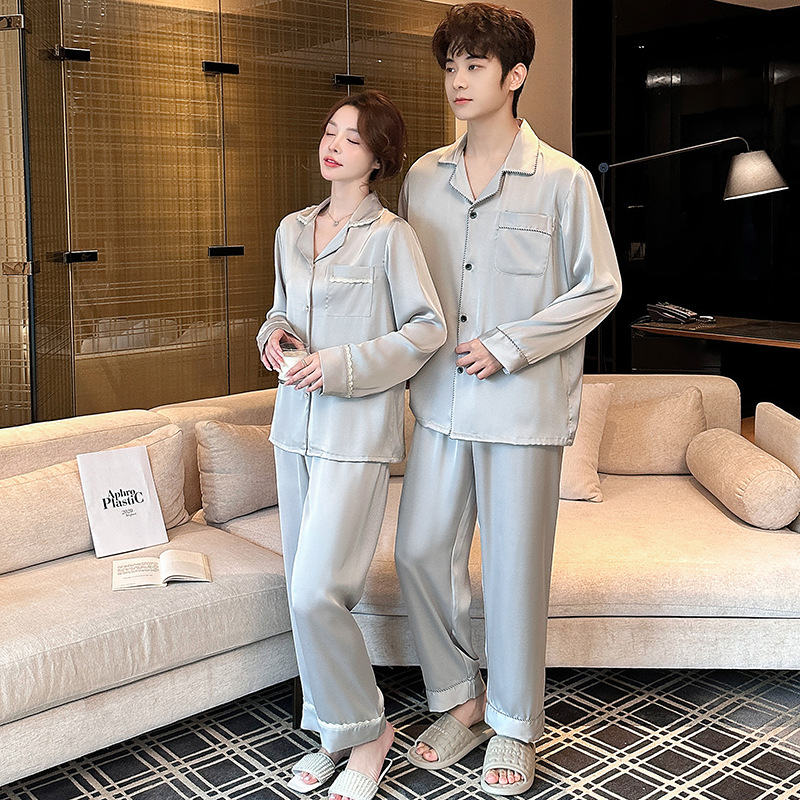 커플 아이스 실크 파자마 여성 봄과 가을 긴팔 바지 세트 한국식 인터넷 인기 남성 하이 엔드 라이트 럭셔리 홈 의류스토어 가기