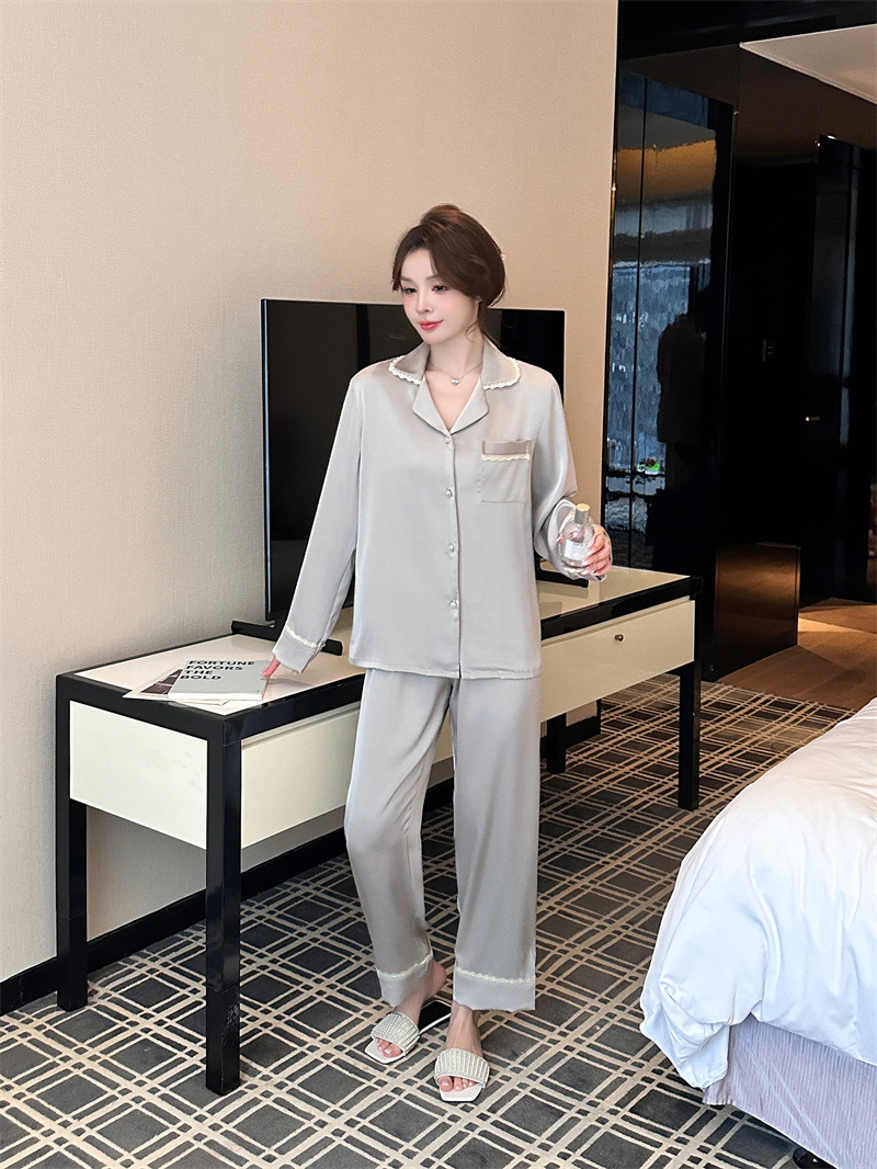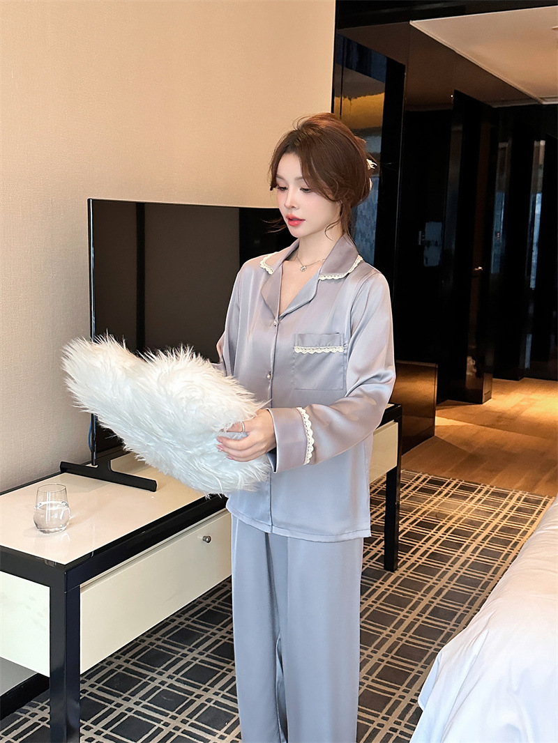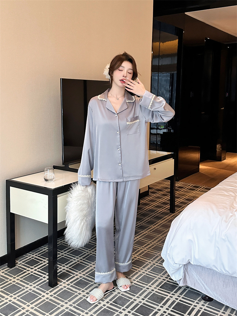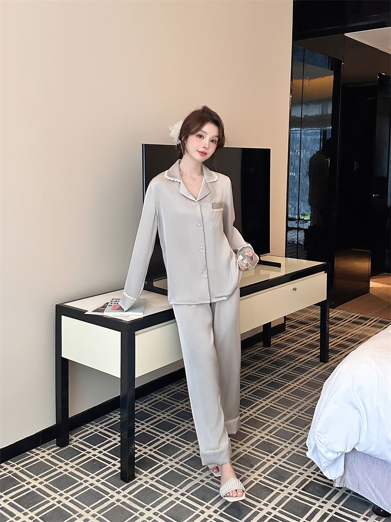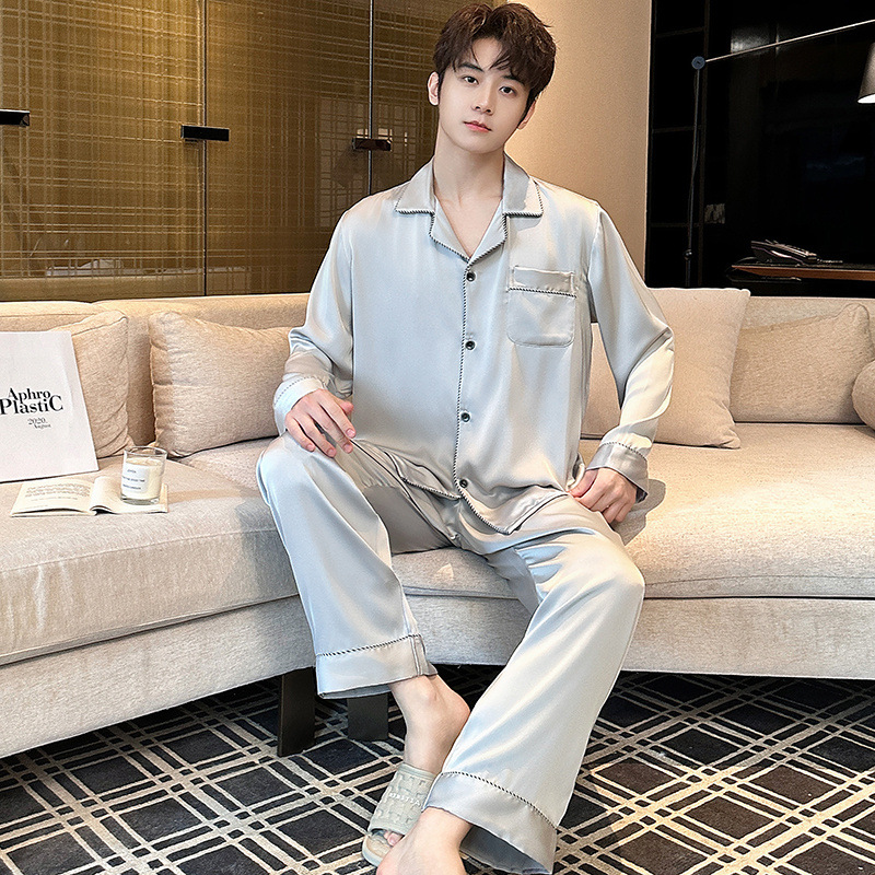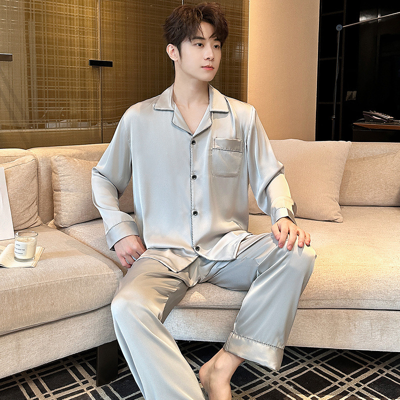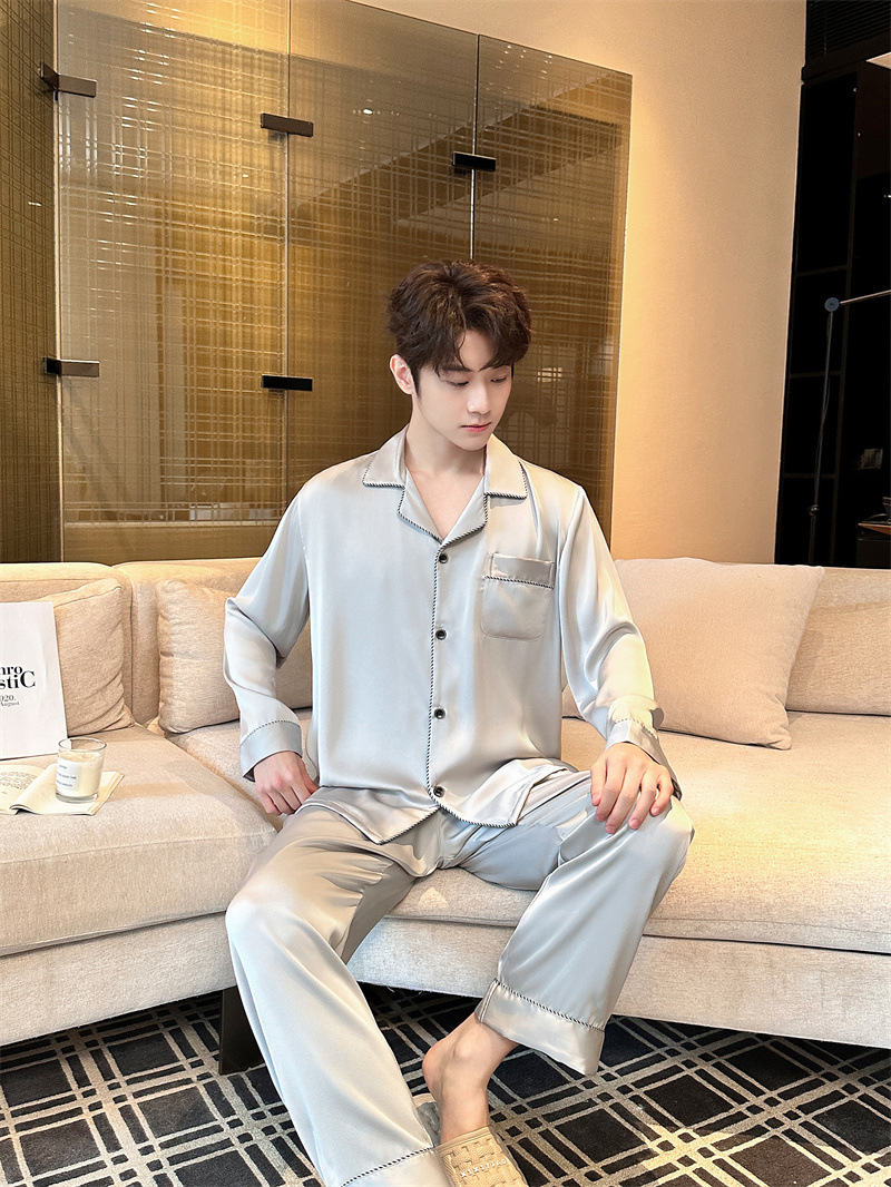커플 아이스 실크 파자마 여성 봄과 가을 긴팔 바지 세트 한국식 인터넷 인기 남성 하이 엔드 라이트 럭셔리 홈 의류스토어 가기