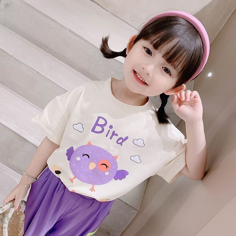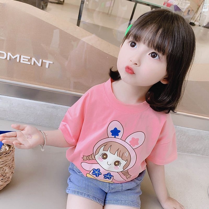 아기 면 반팔 어린이 티셔츠 소녀 여름 새로운 세련된 패션 올 매치 인쇄베이스 탑