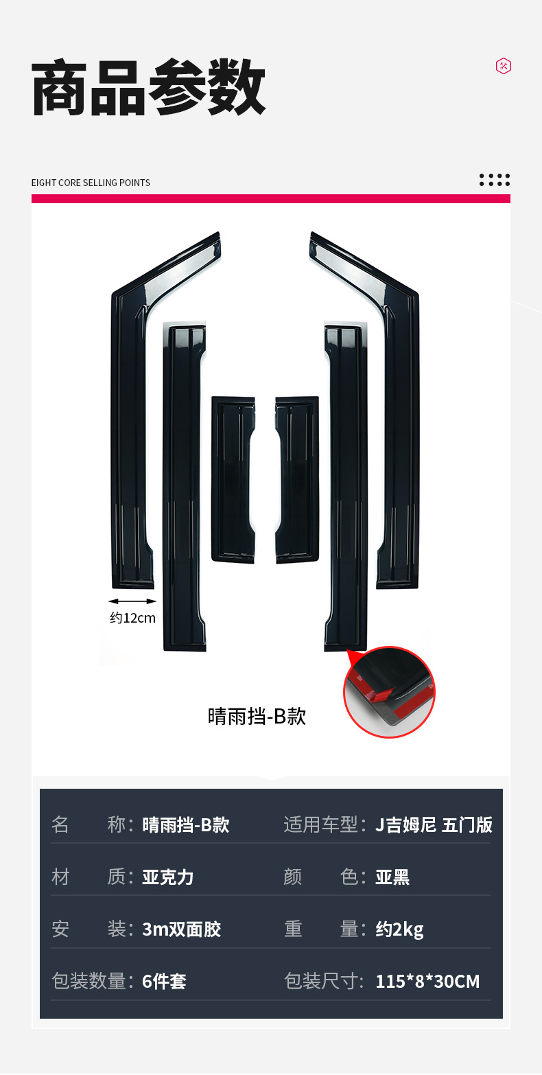 23-25 신형 5도어 버전 짐니 개조 부품, 도어 확장 및 두꺼워짐, 차량용 비가림막, 창문 레인브로우스토어 가기