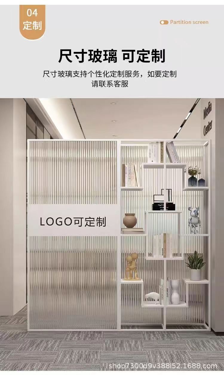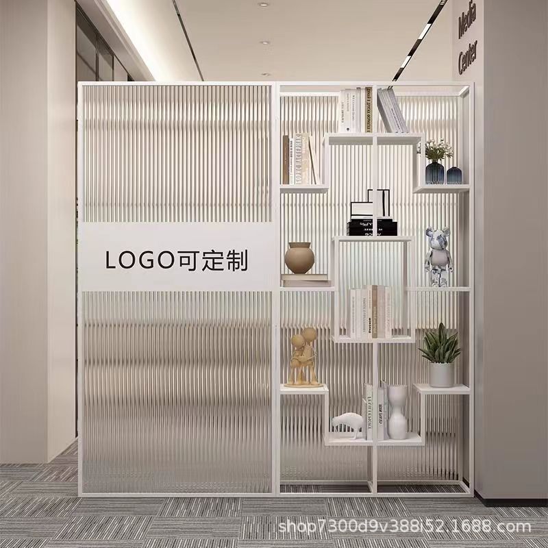 회사 리셉션 창홍 유리 디스플레이 랙 사무실 파티션 벽 스크린 전시 홀 로고 이미지 벽 선반스토어 가기