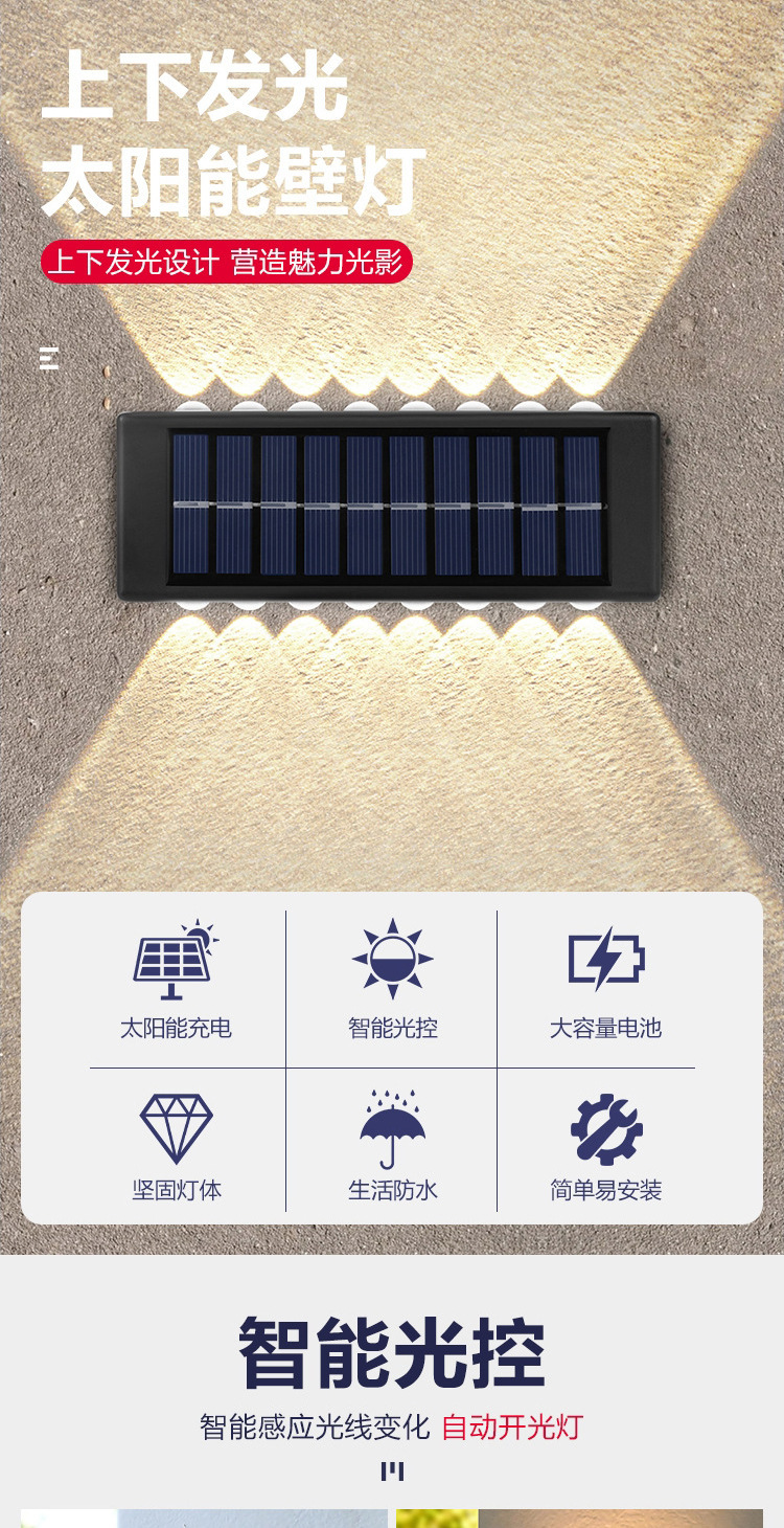 야외 태양 벽 램프 풍경 안뜰 야외 방수 분위기 벽 장식 테라스 위아래로 빛나는 벽 세탁기