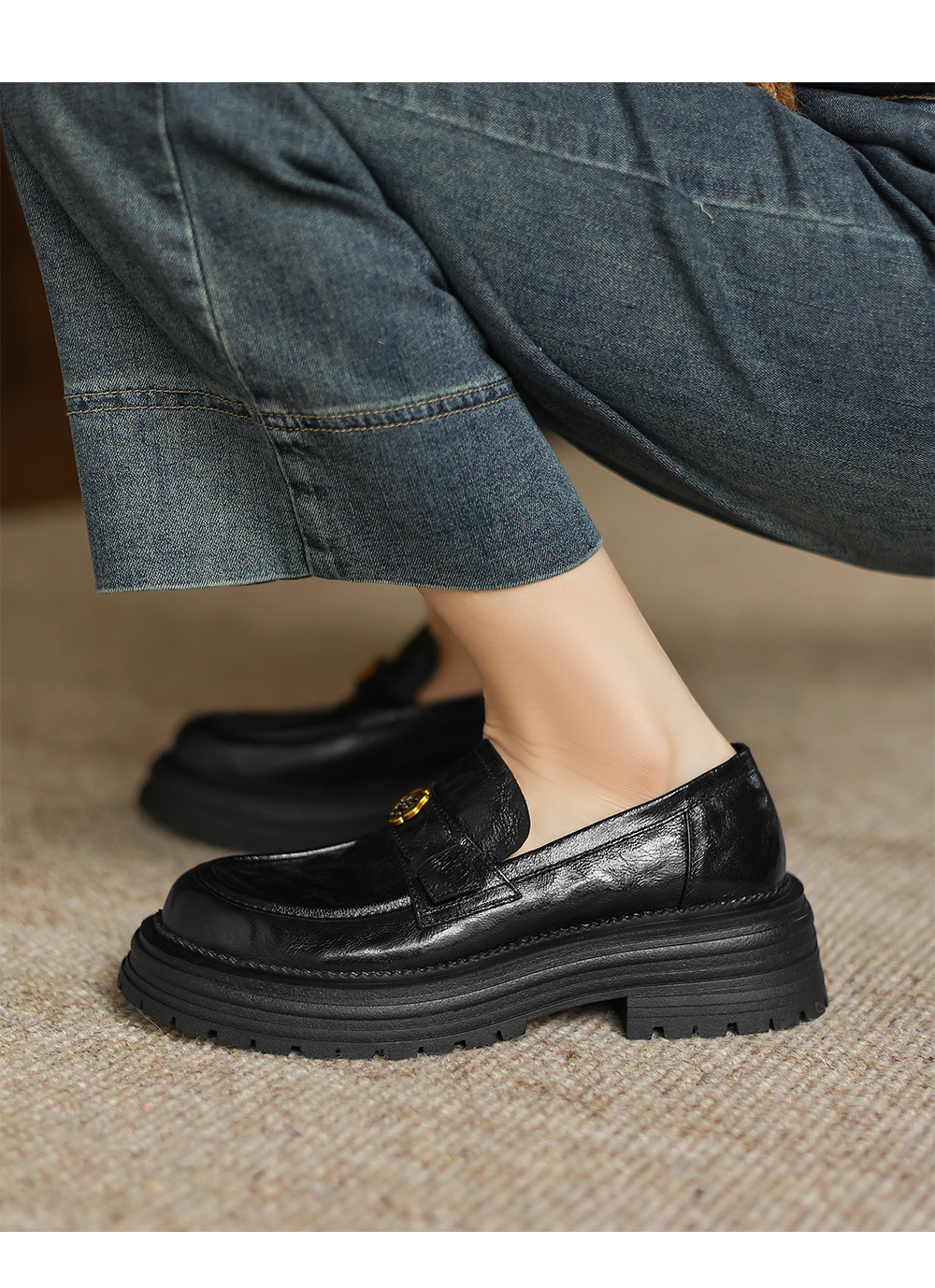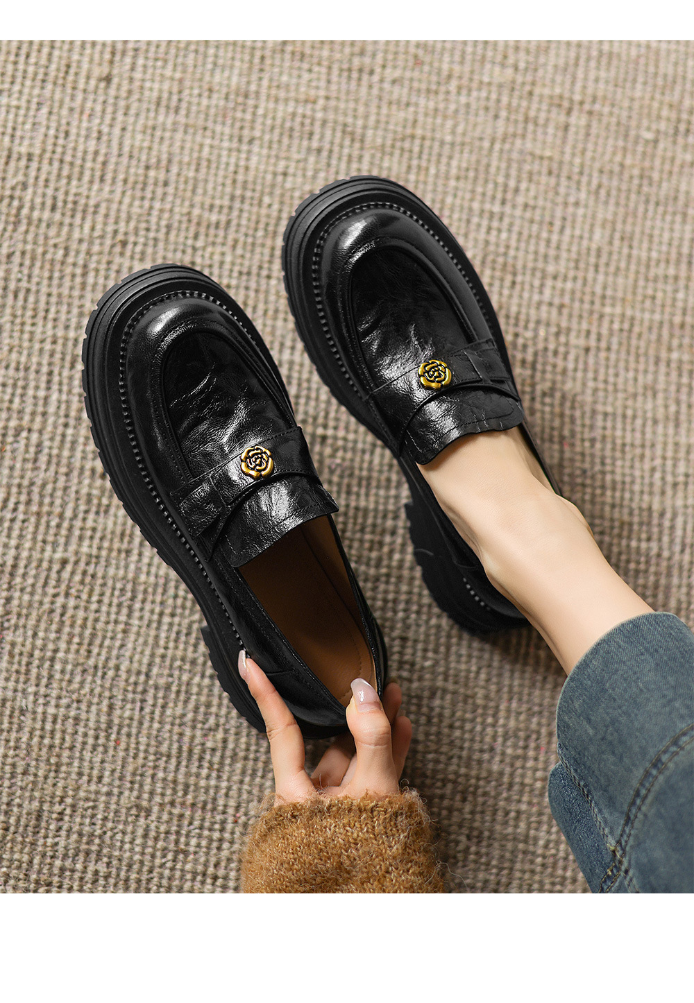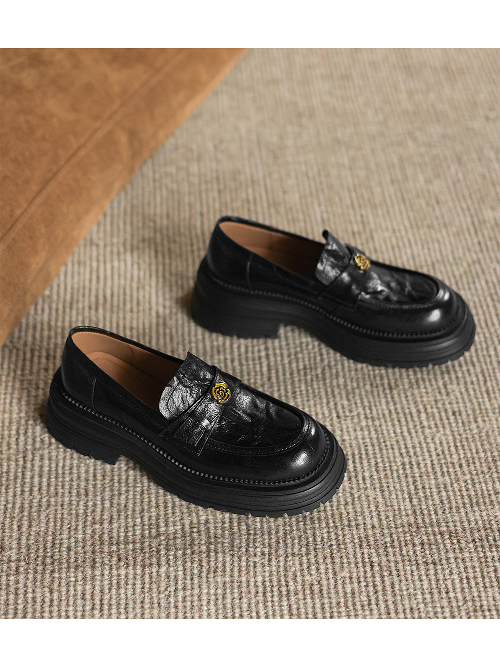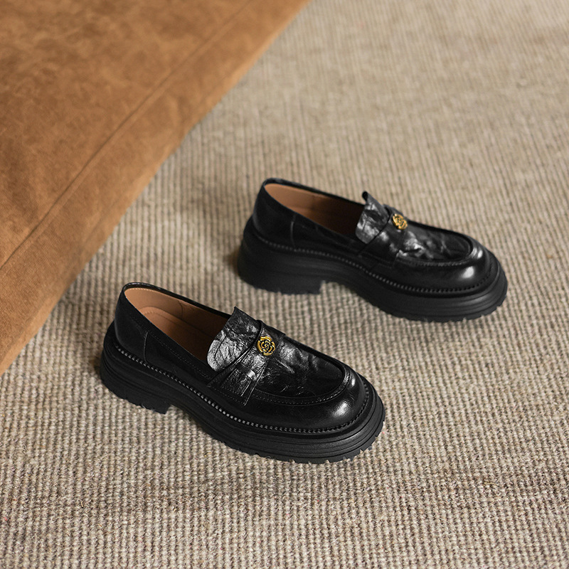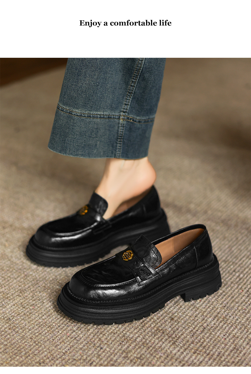 두꺼운 밑창 로퍼 여성 정품 가죽 2025 새로운 빈티지 동백 신발 검은 통근 신발 영국 가죽 신발스토어 가기