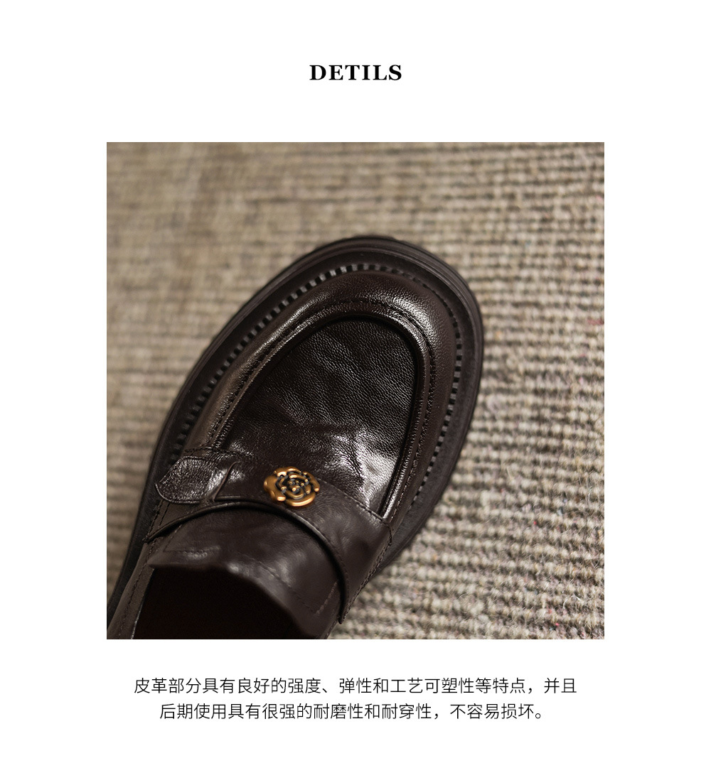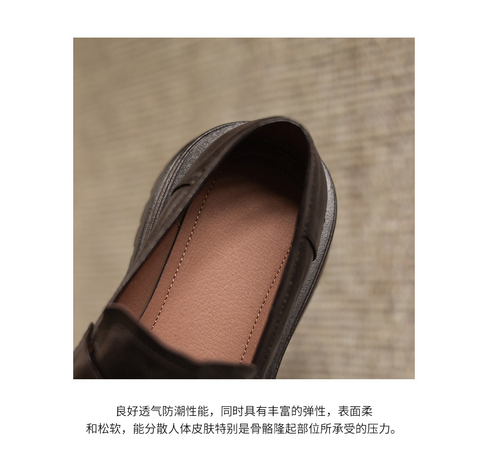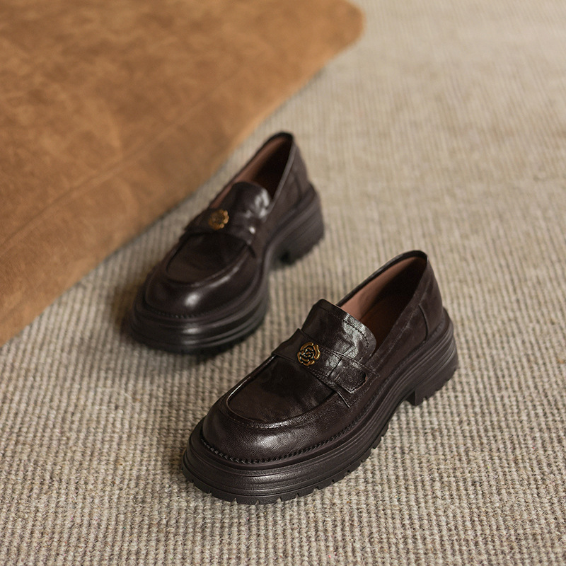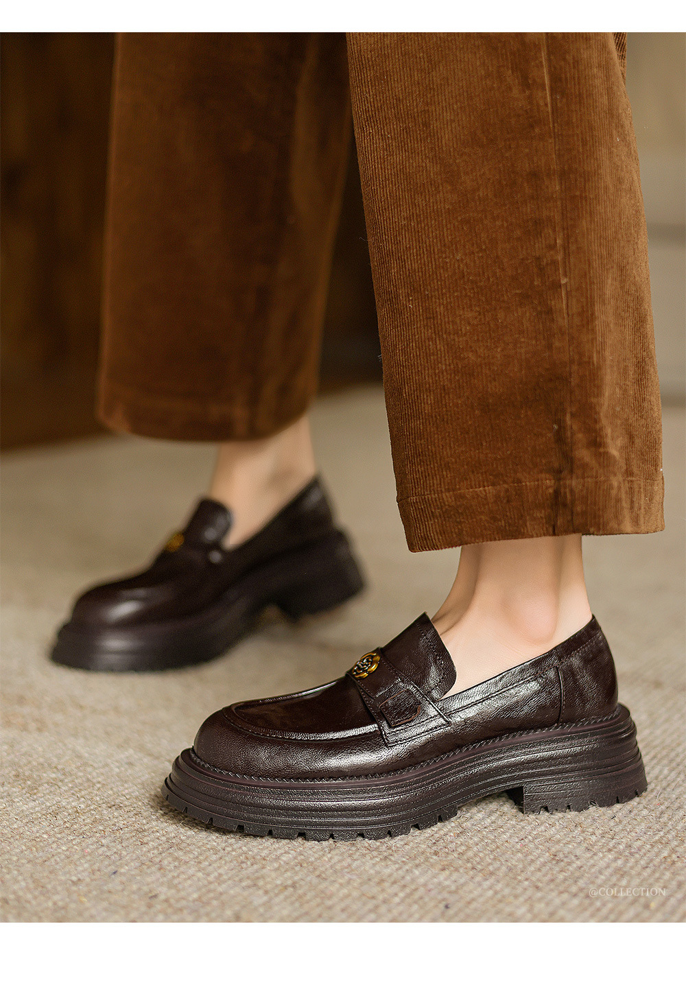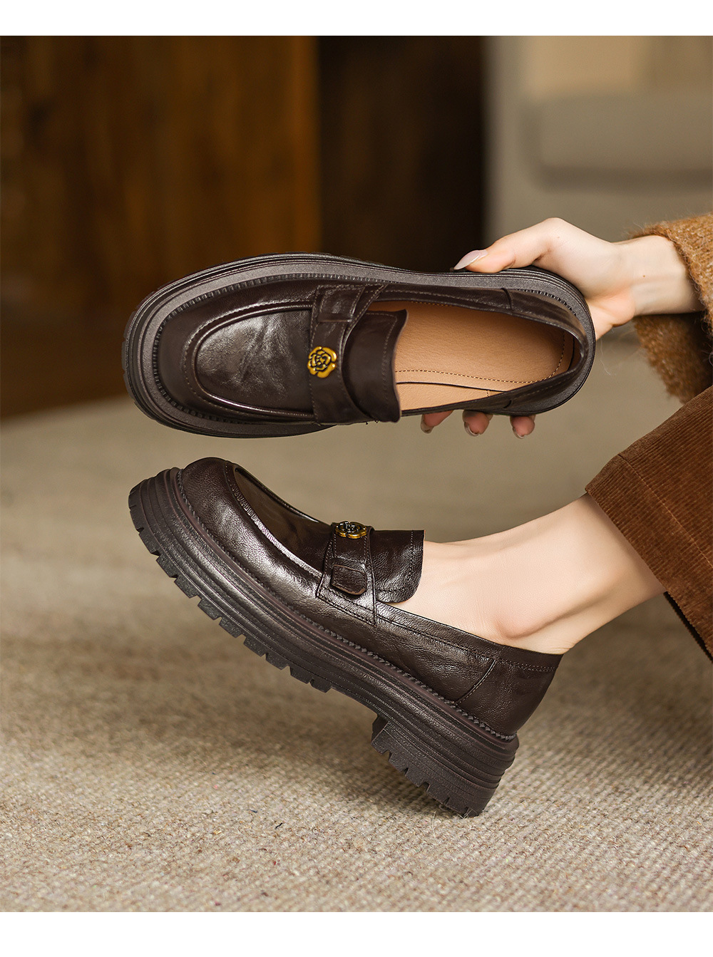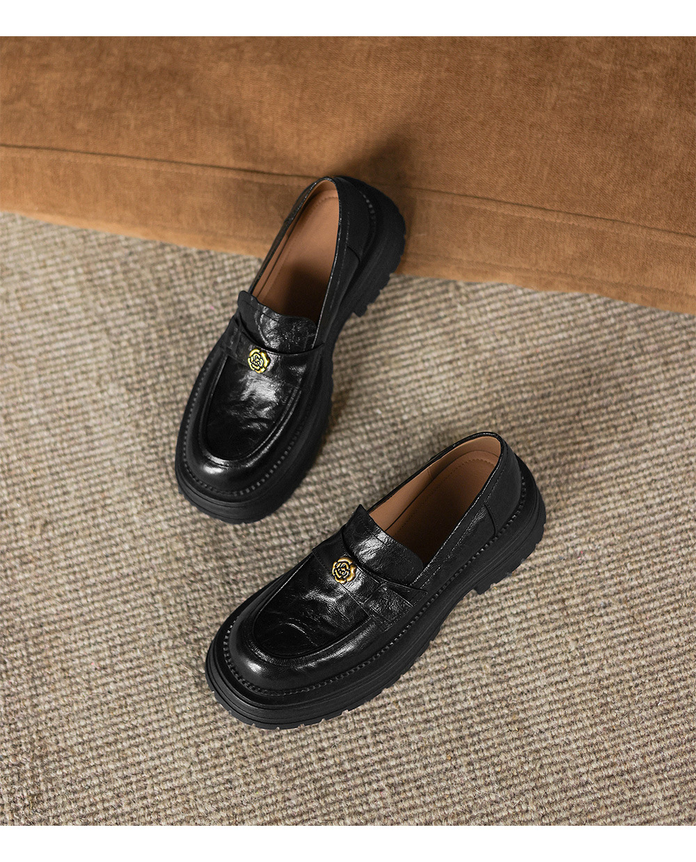 두꺼운 밑창 로퍼 여성 정품 가죽 2025 새로운 빈티지 동백 신발 검은 통근 신발 영국 가죽 신발스토어 가기
