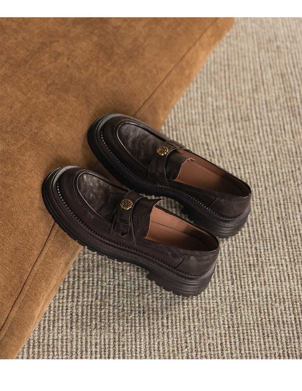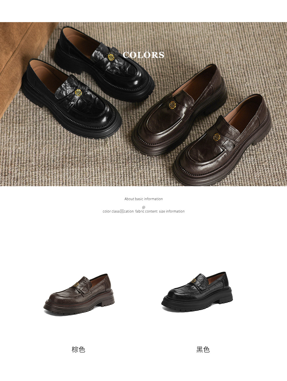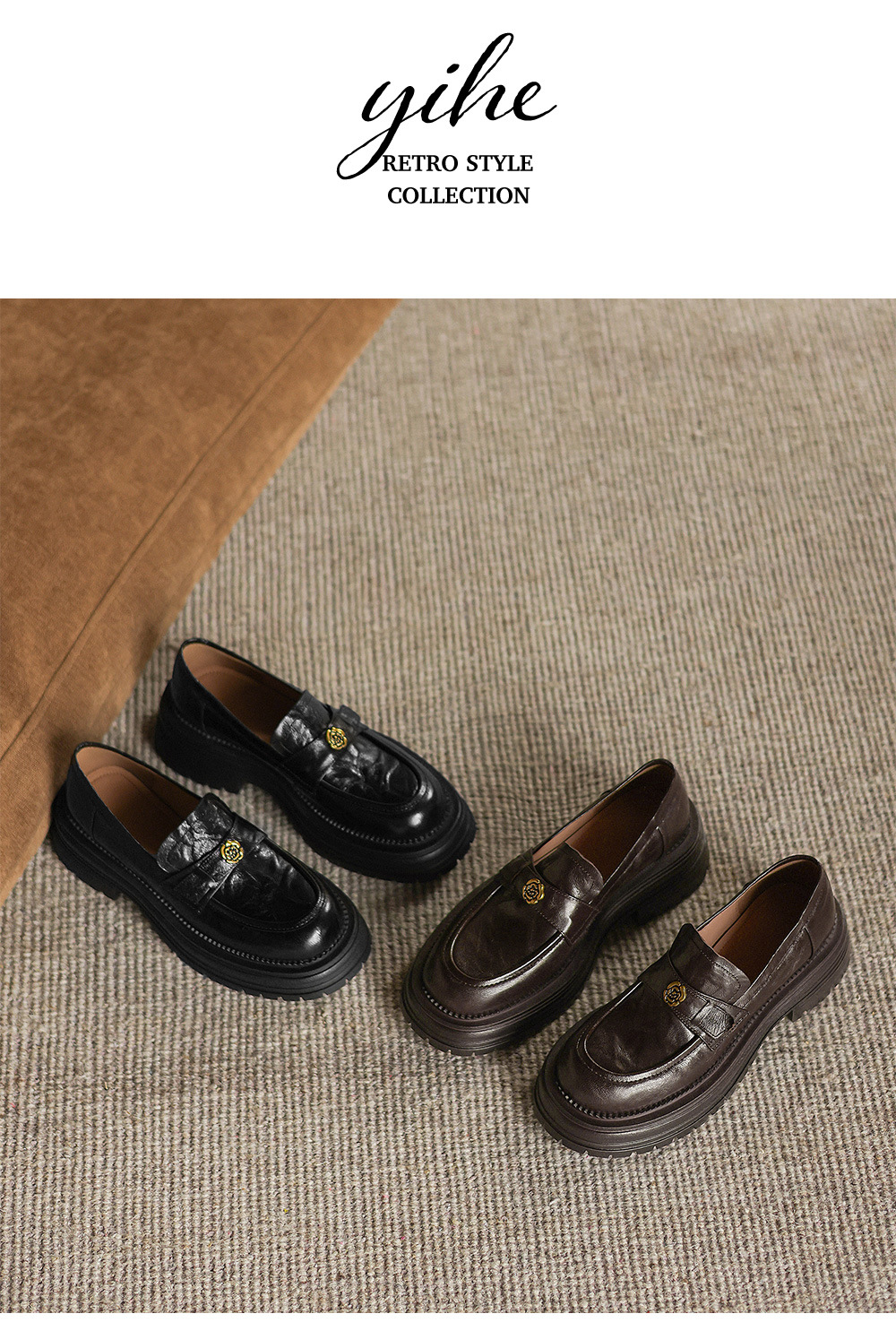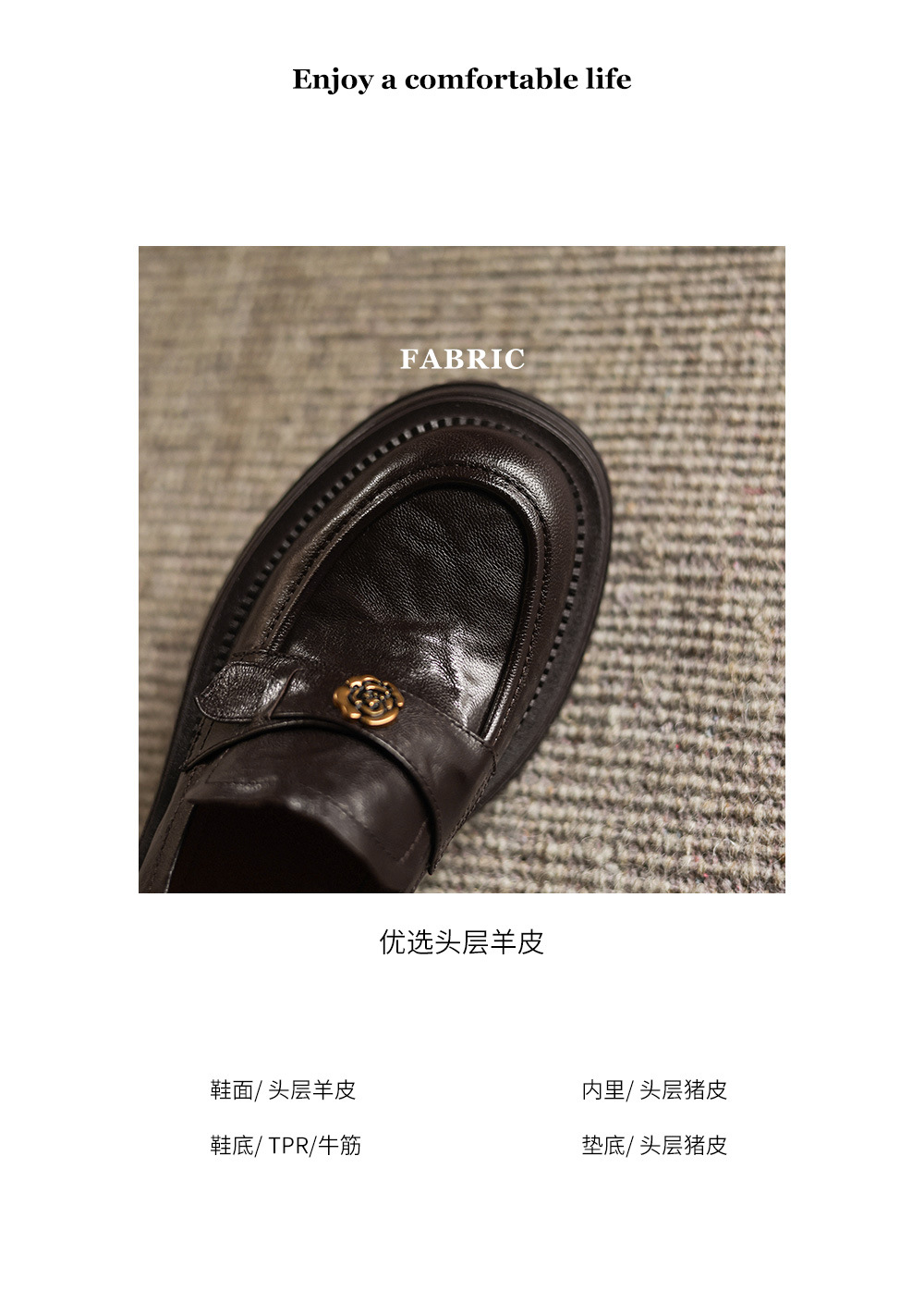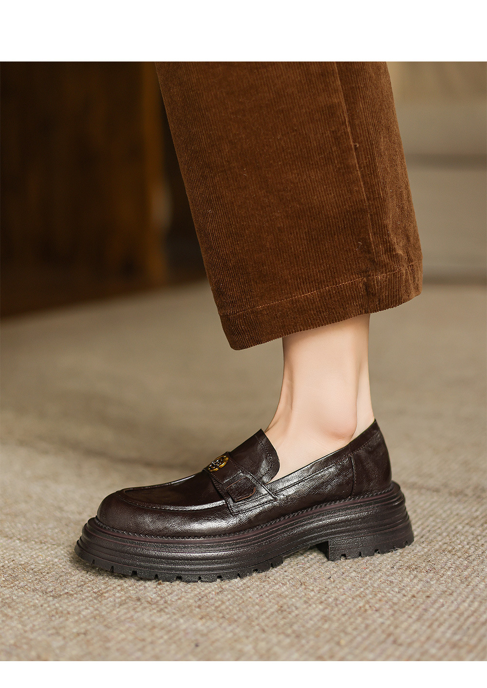 두꺼운 밑창 로퍼 여성 정품 가죽 2025 새로운 빈티지 동백 신발 검은 통근 신발 영국 가죽 신발스토어 가기