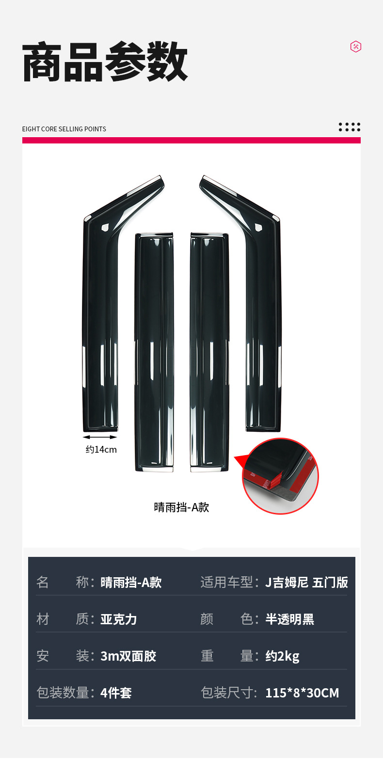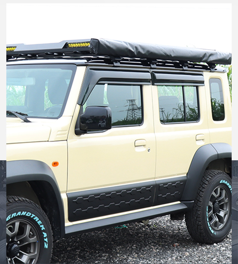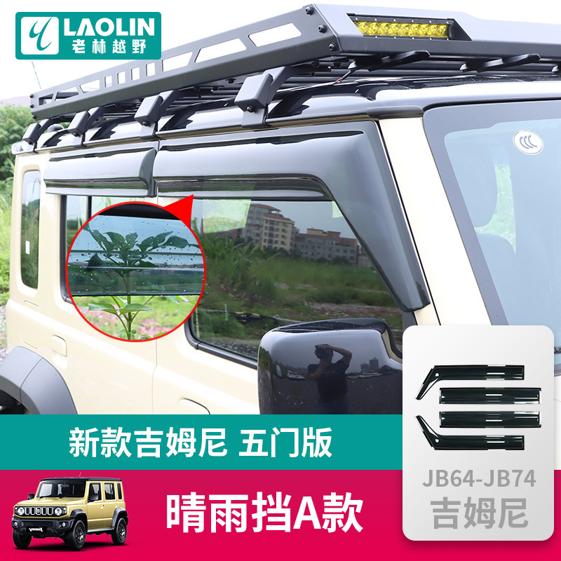 2023-2024 새로운 5 도어 에디션 Jimny 두꺼운 문 비와 비 송풍기 Jimny 창 비 눈썹 수정기스토어 가기