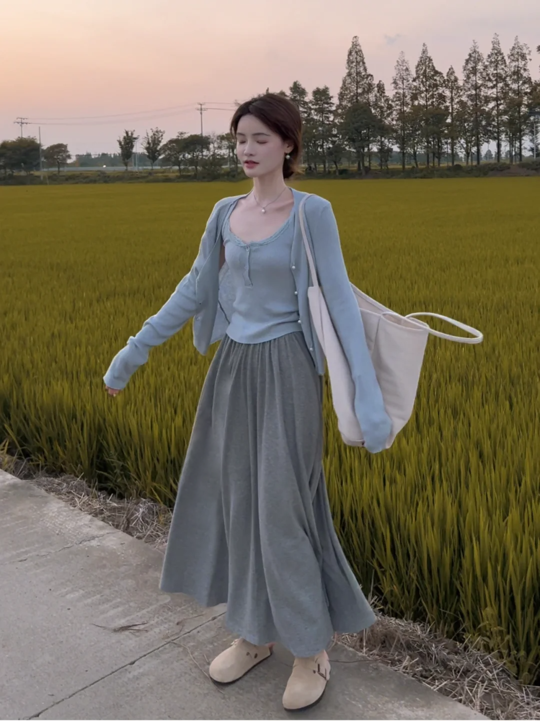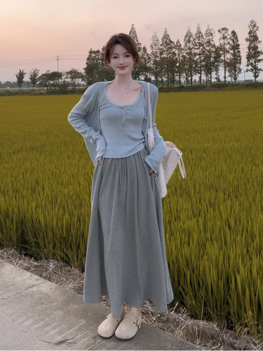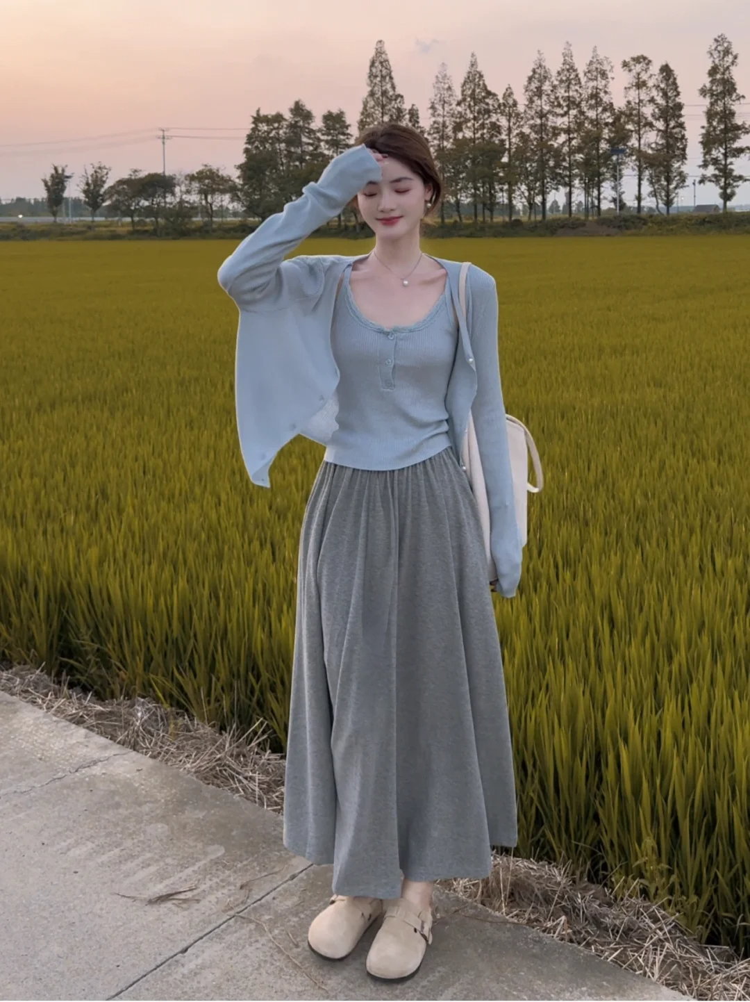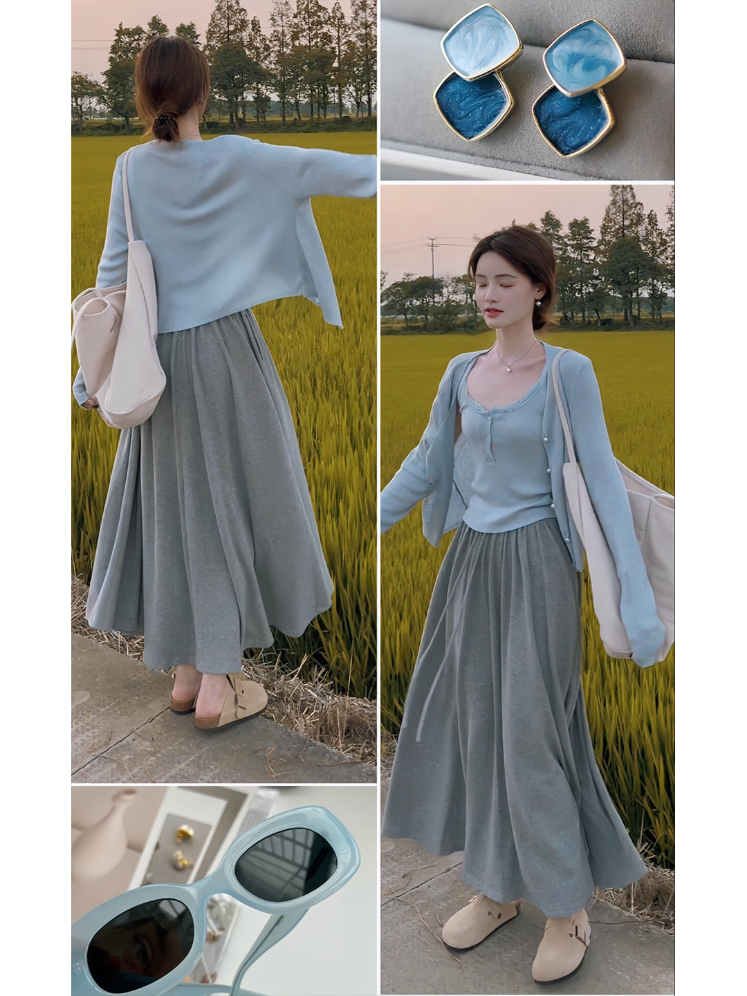 • 블루 가디건 + 멜빵 [투피스]