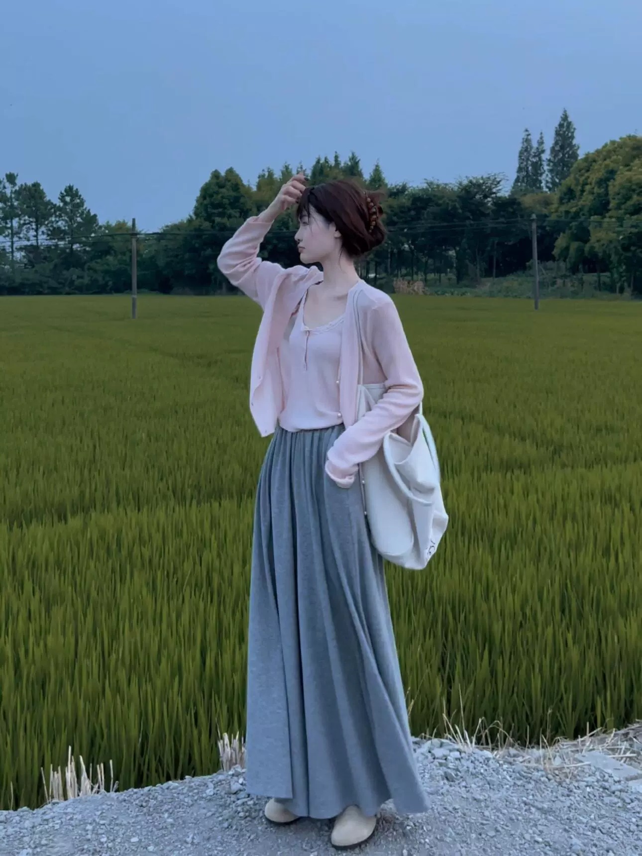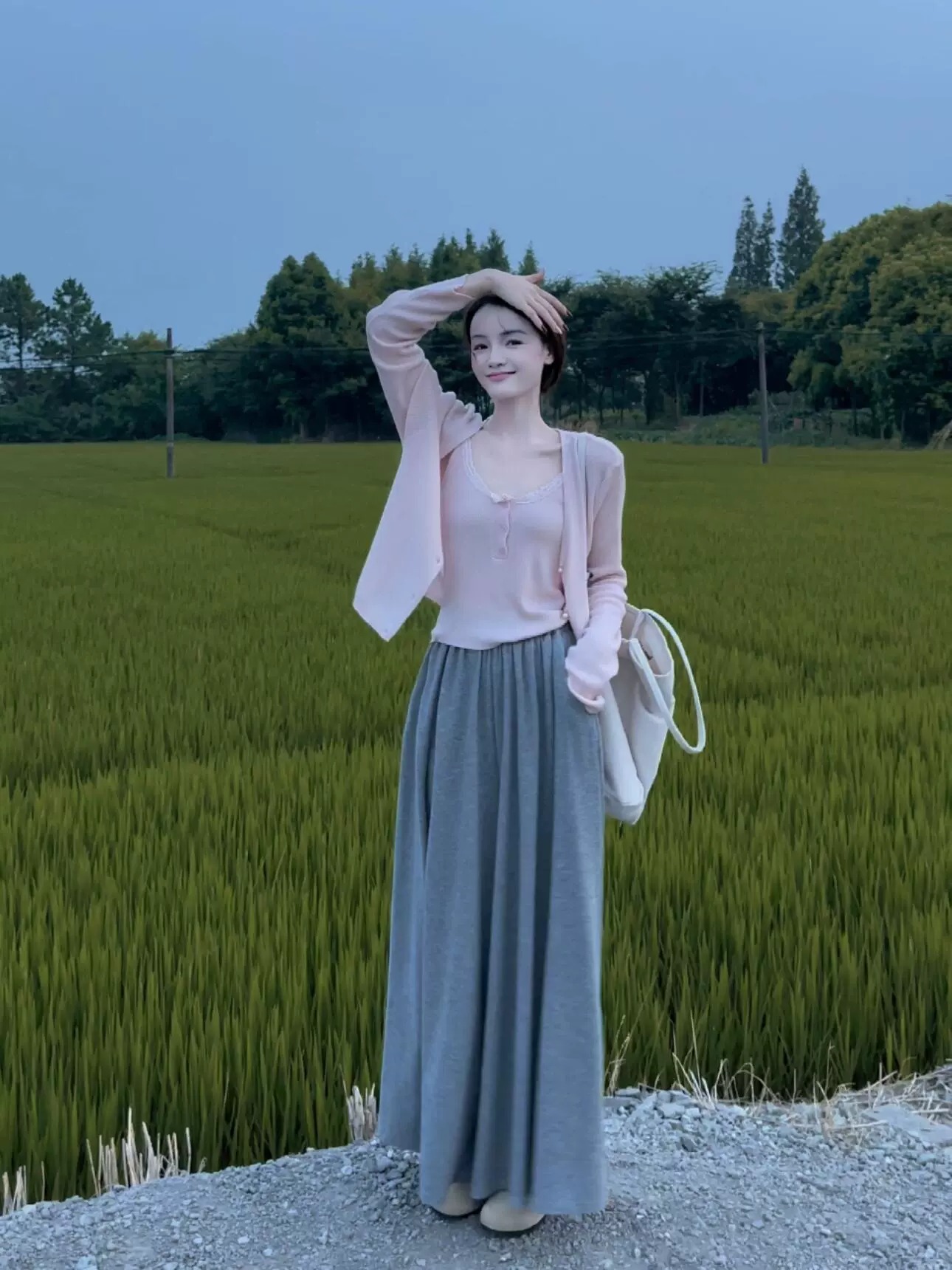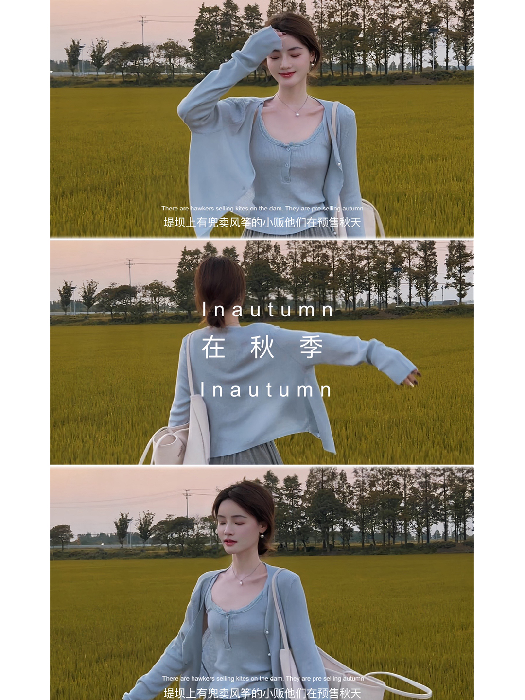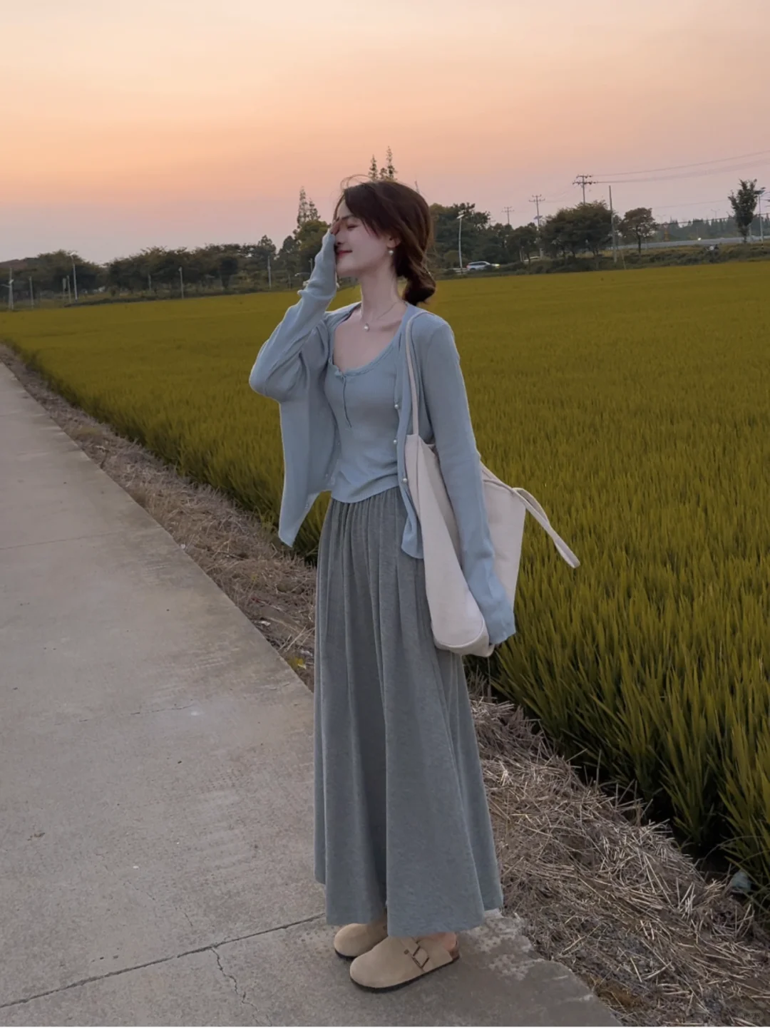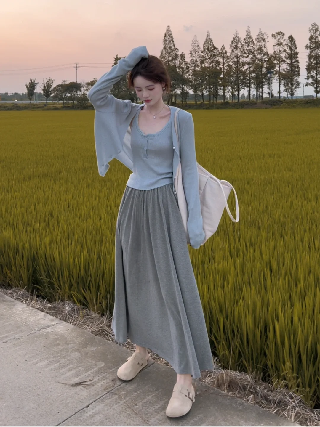 • 블루 가디건 + 멜빵 [투피스]