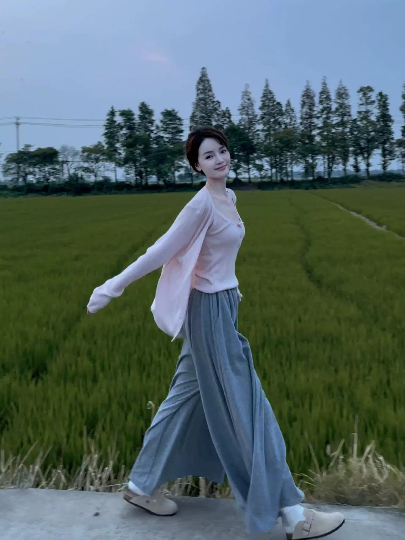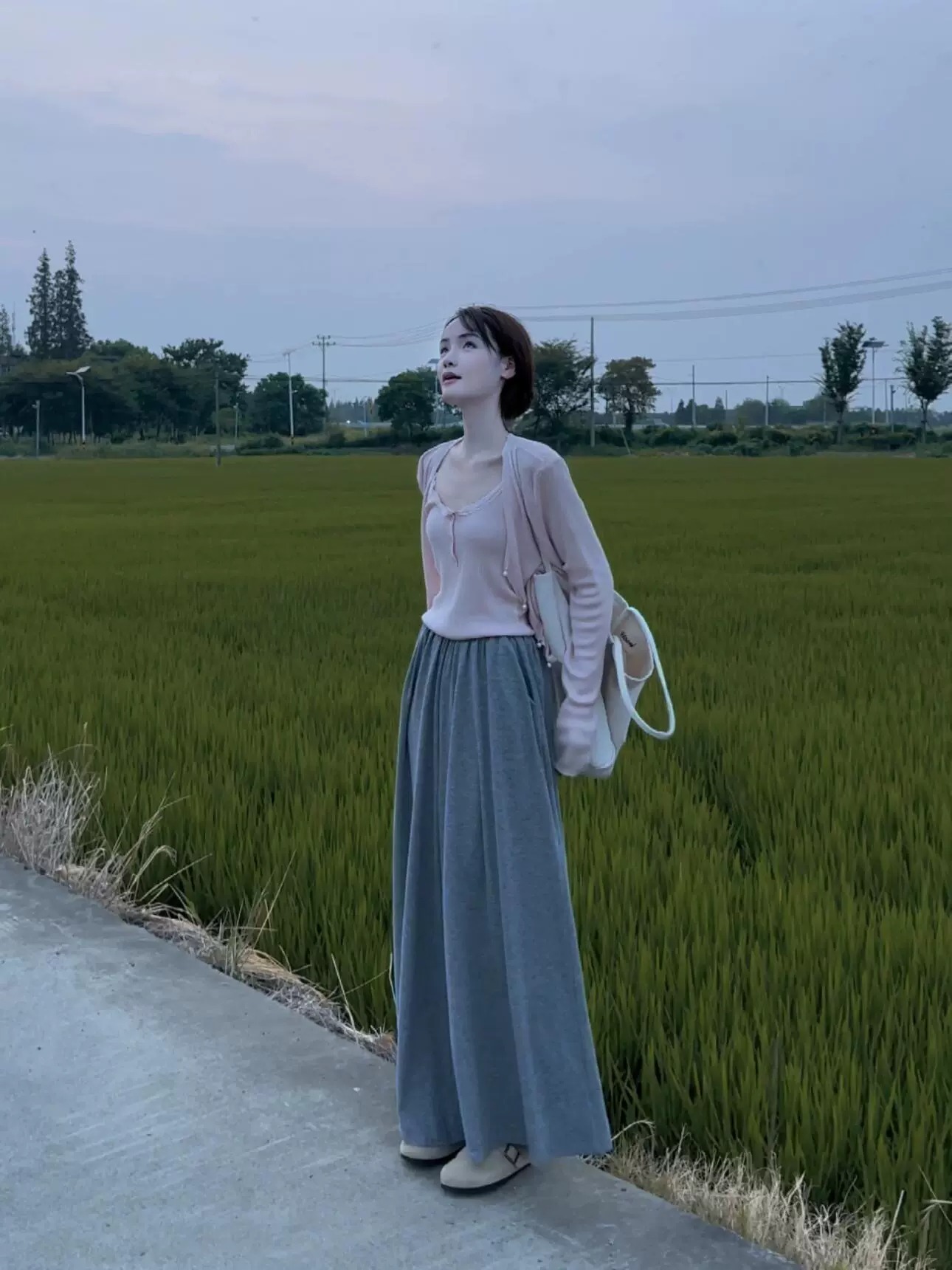 플러스 사이즈 약간 뚱뚱한 mm 슬림 소금 세트로 봄에 부드러운 패션 시대를 착용하십시오-3 피스 세트 여성을 줄입니다.