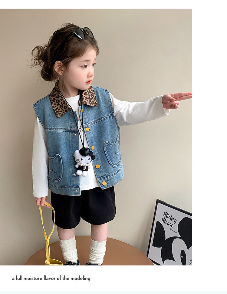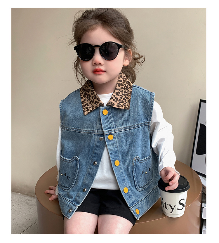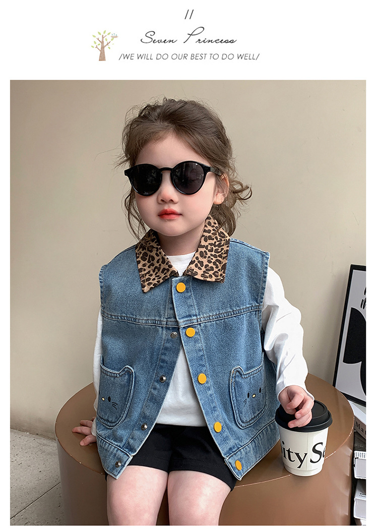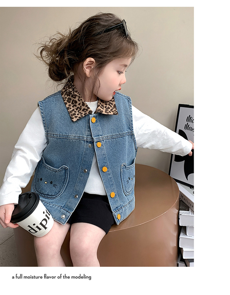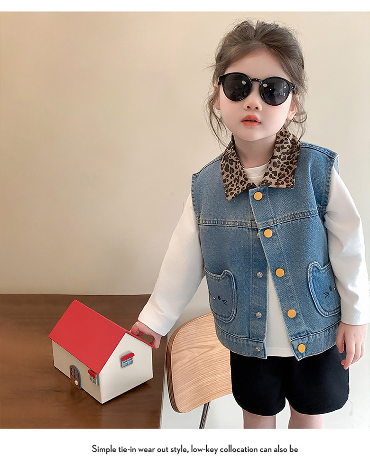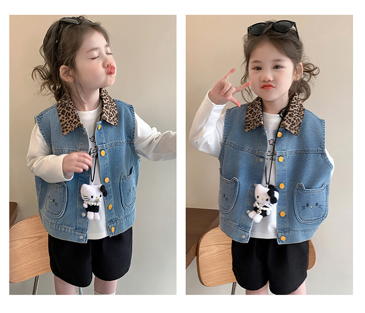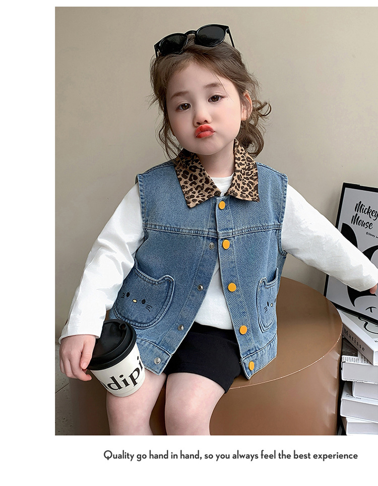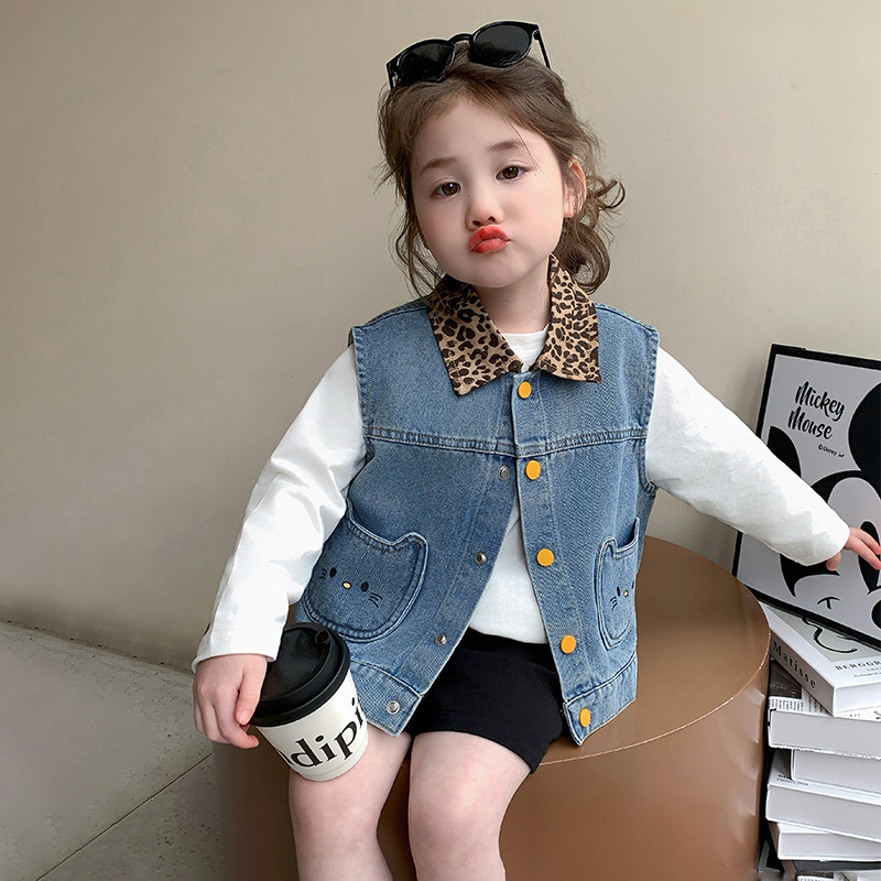 소녀 데님 조끼 봄과 가을 2025 새로운 세련된 봄 복장 어린이 조끼 아기 유행 봄 코트스토어 가기