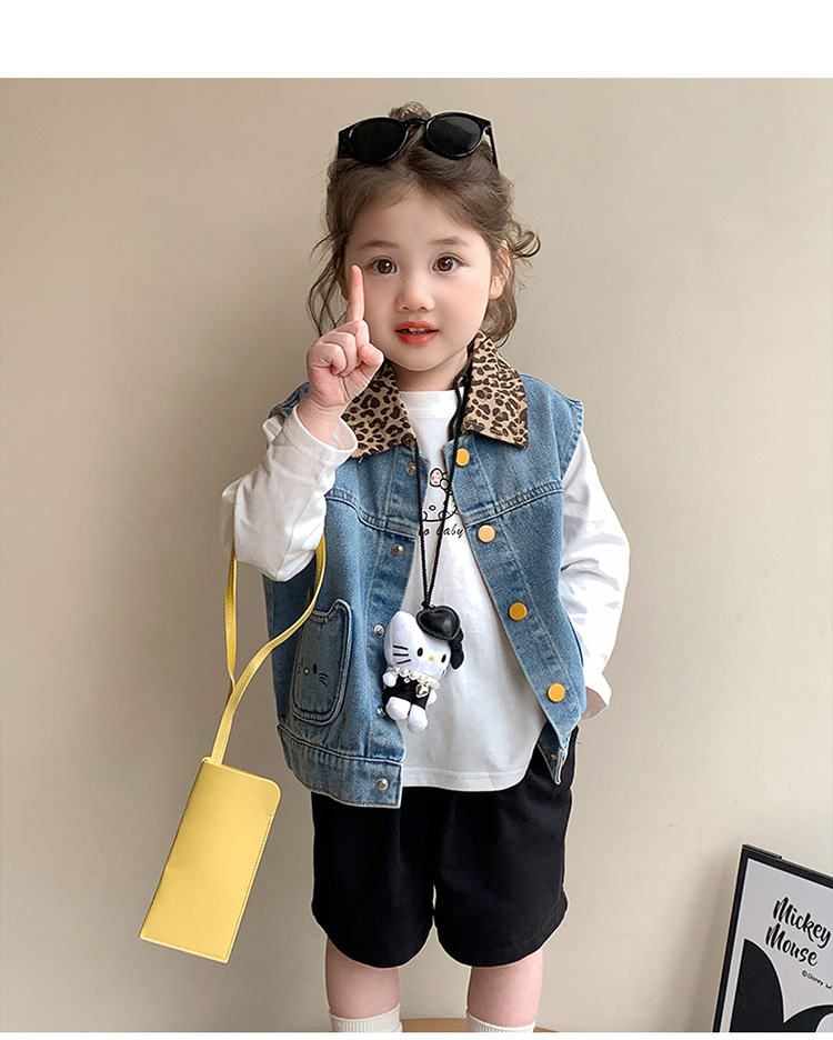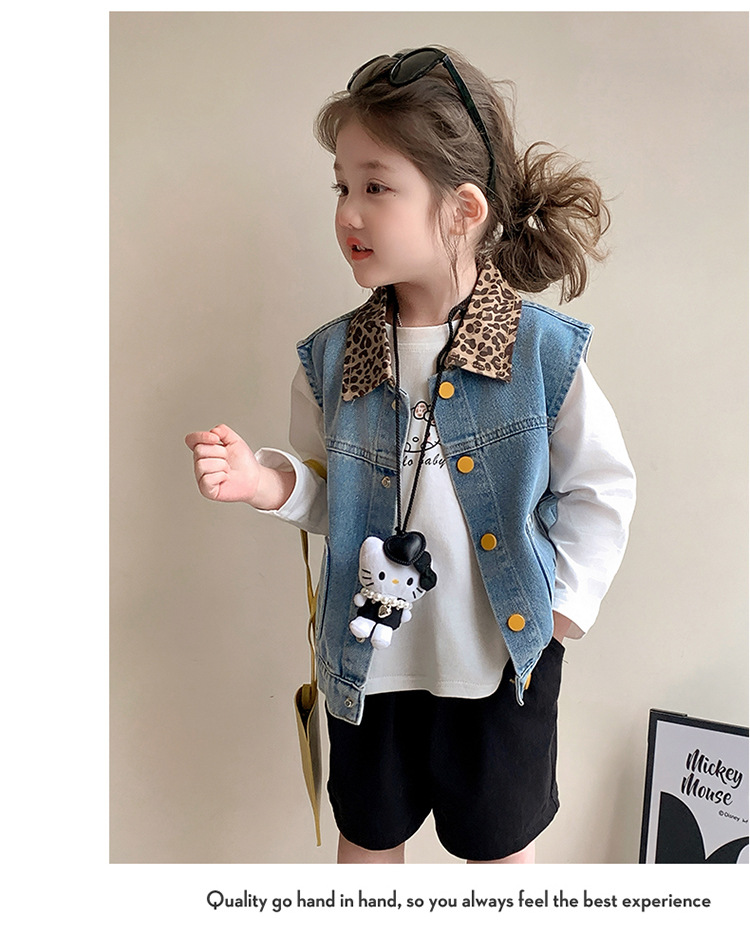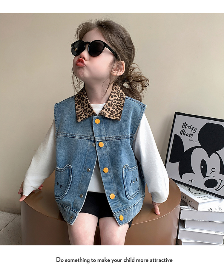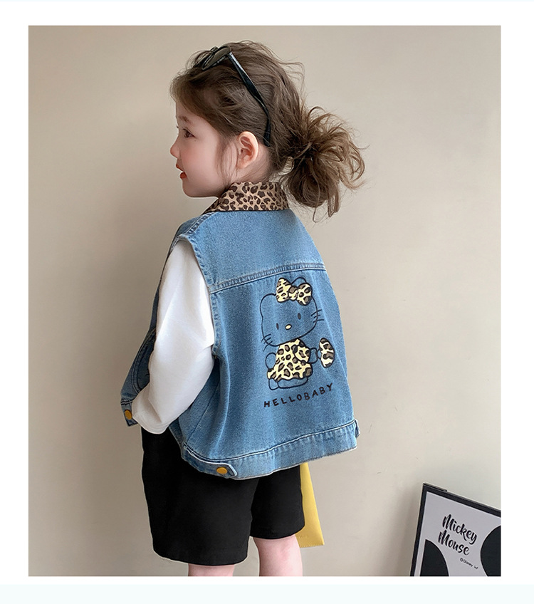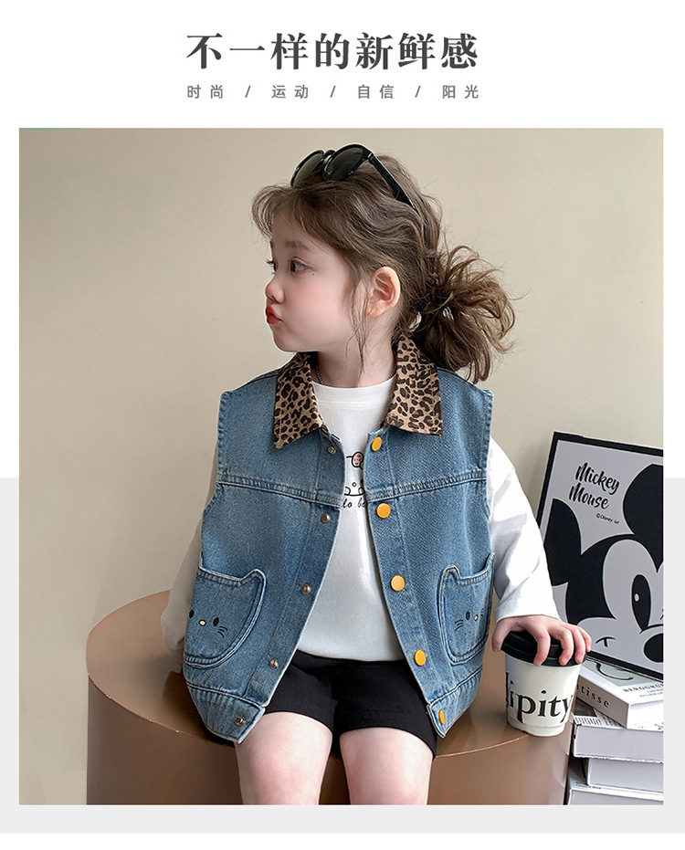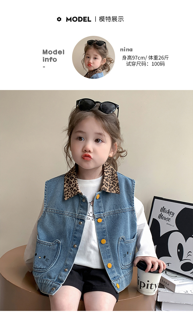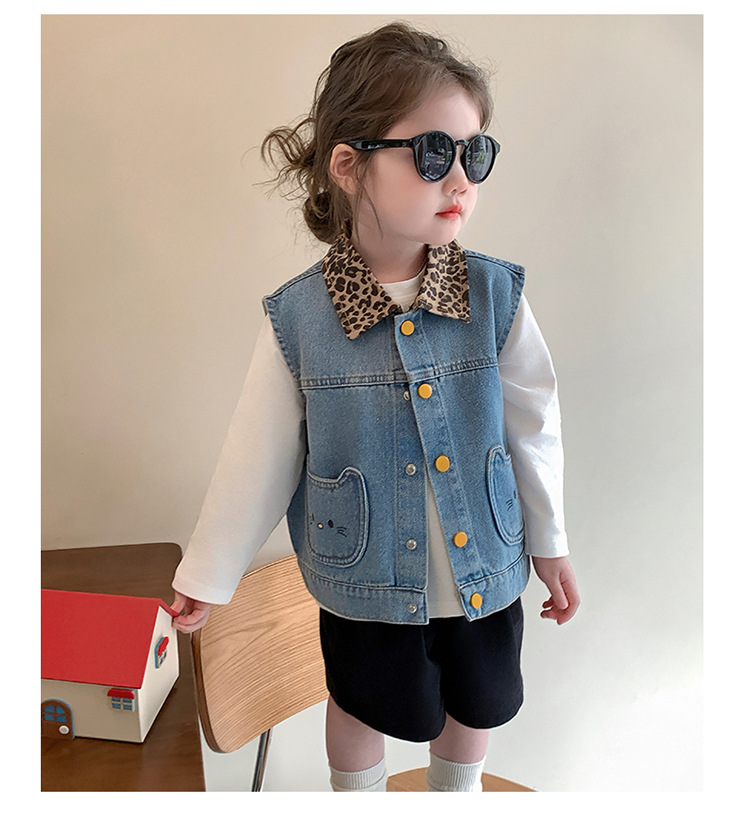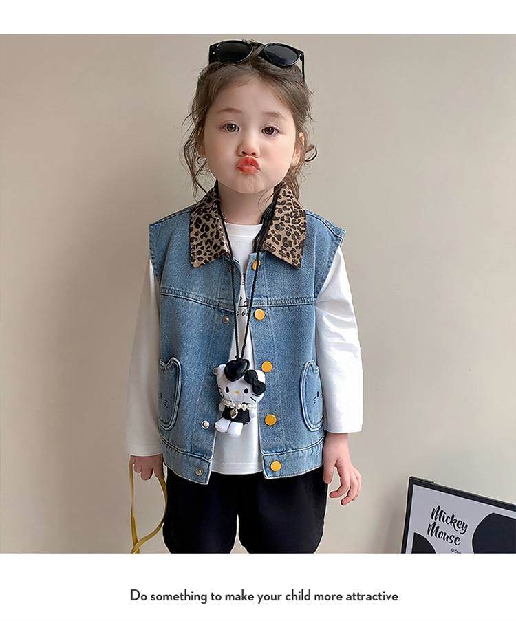 소녀 데님 조끼 봄과 가을 2025 새로운 세련된 봄 복장 어린이 조끼 아기 유행 봄 코트스토어 가기