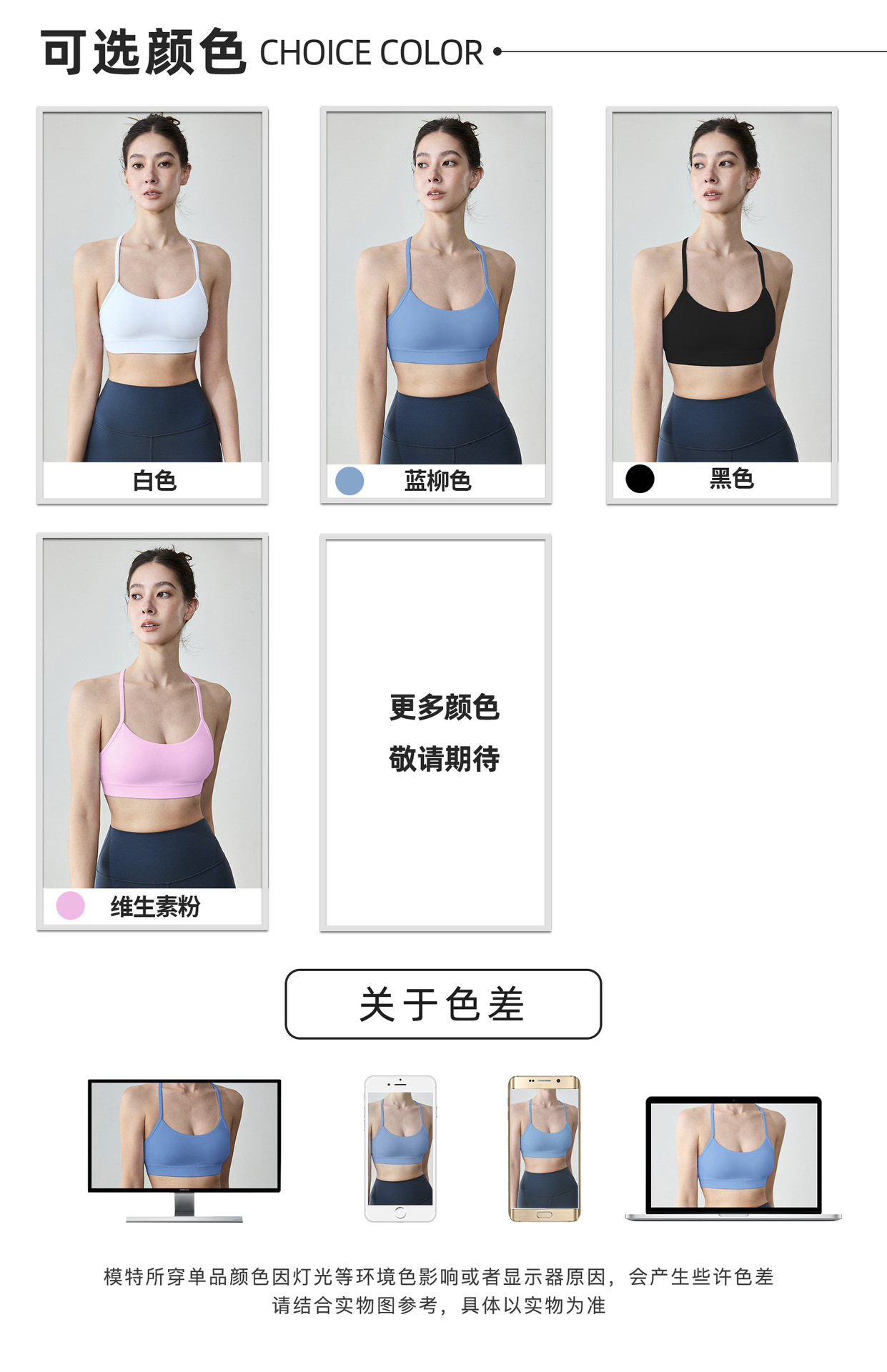 봄과 여름 새로운 스포츠 속옷 여성용 벌거 벗은 얇은 어깨 끈 요가 조끼 Y 모양의 아름다운 뒤로 이동식 가슴 패드 피트니스 브래지어스토어 가기