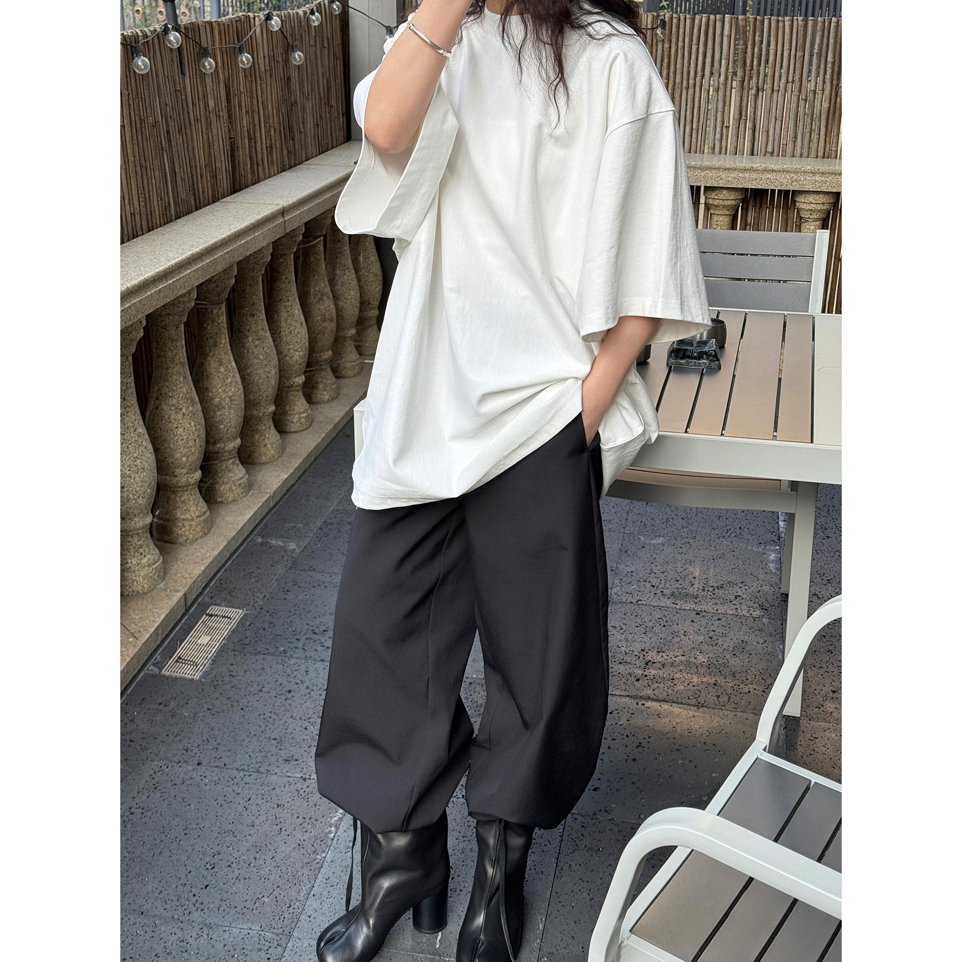 Lvu 봄 새로운 미국 스타일 간단한 기본 솔리드 컬러 오버 사이즈 숄더 티셔츠 캐주얼 올 매치 탑스토어 가기