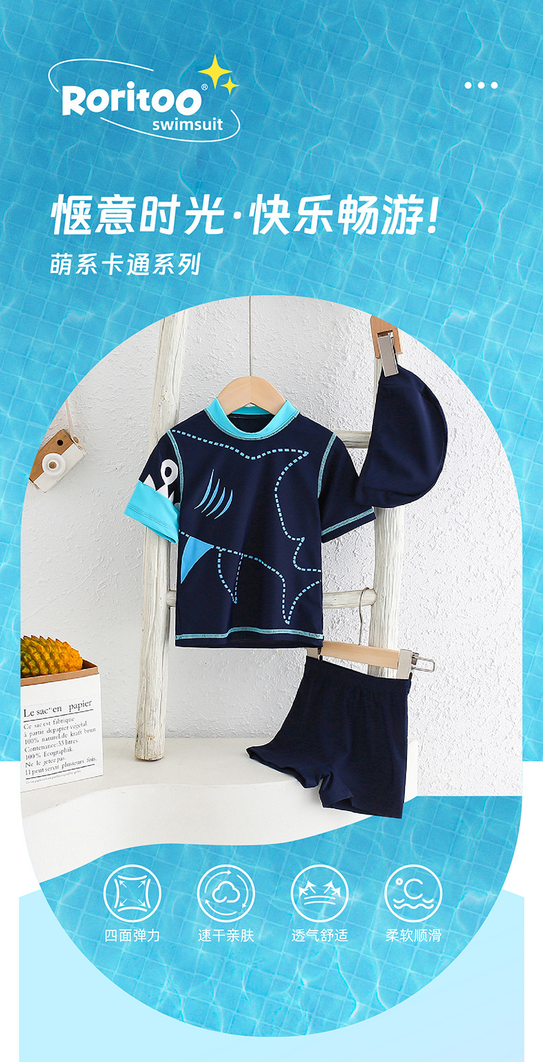 어린이 수영복 소년 분할 태양 방지 신속 건조 상어 수영복 아기의 중소 어린이 소년 비치 수영복
