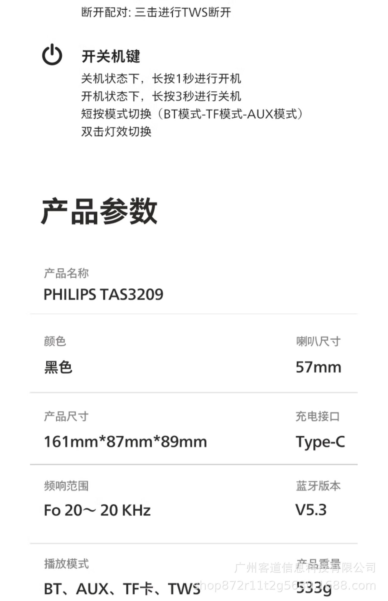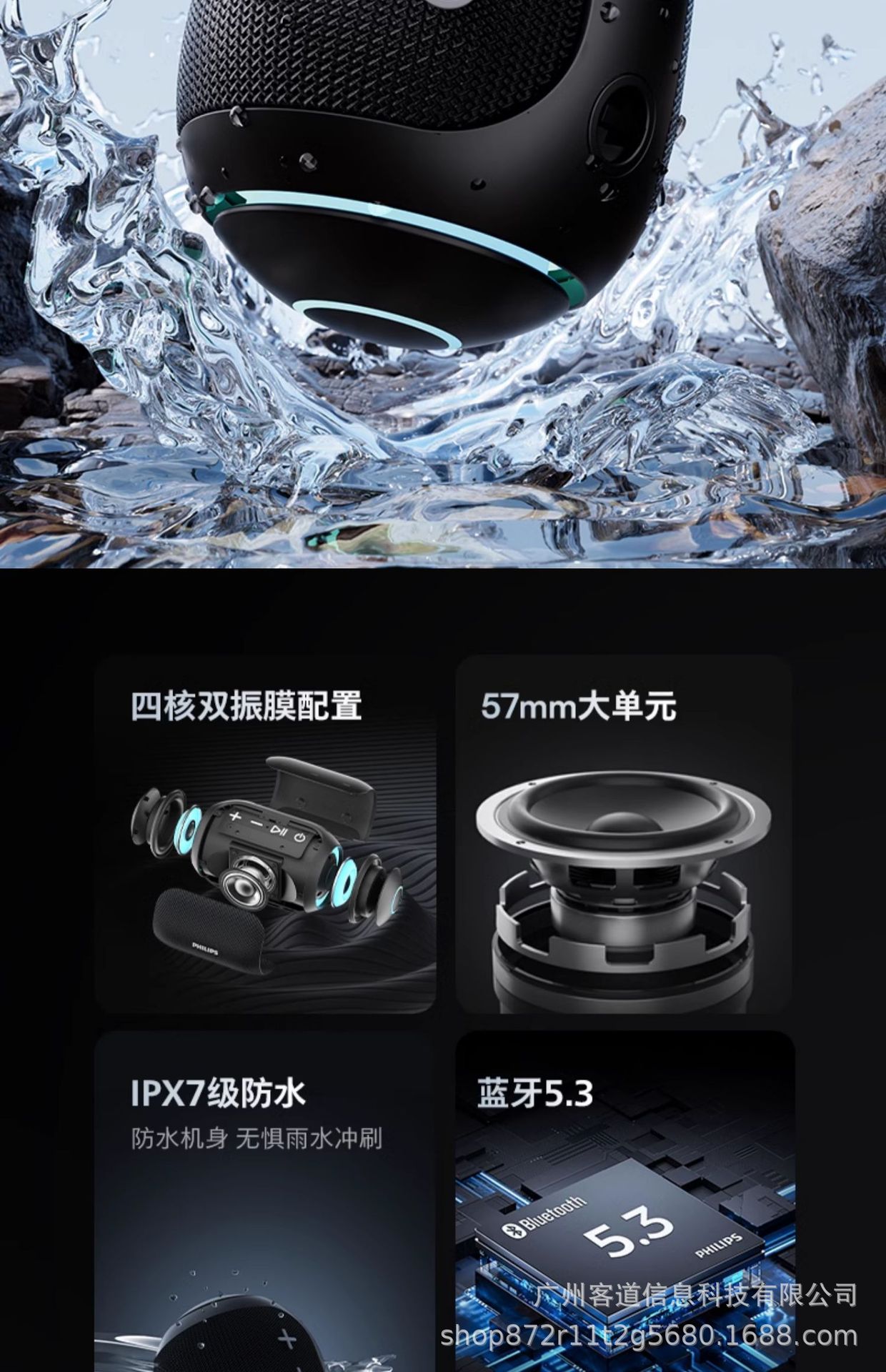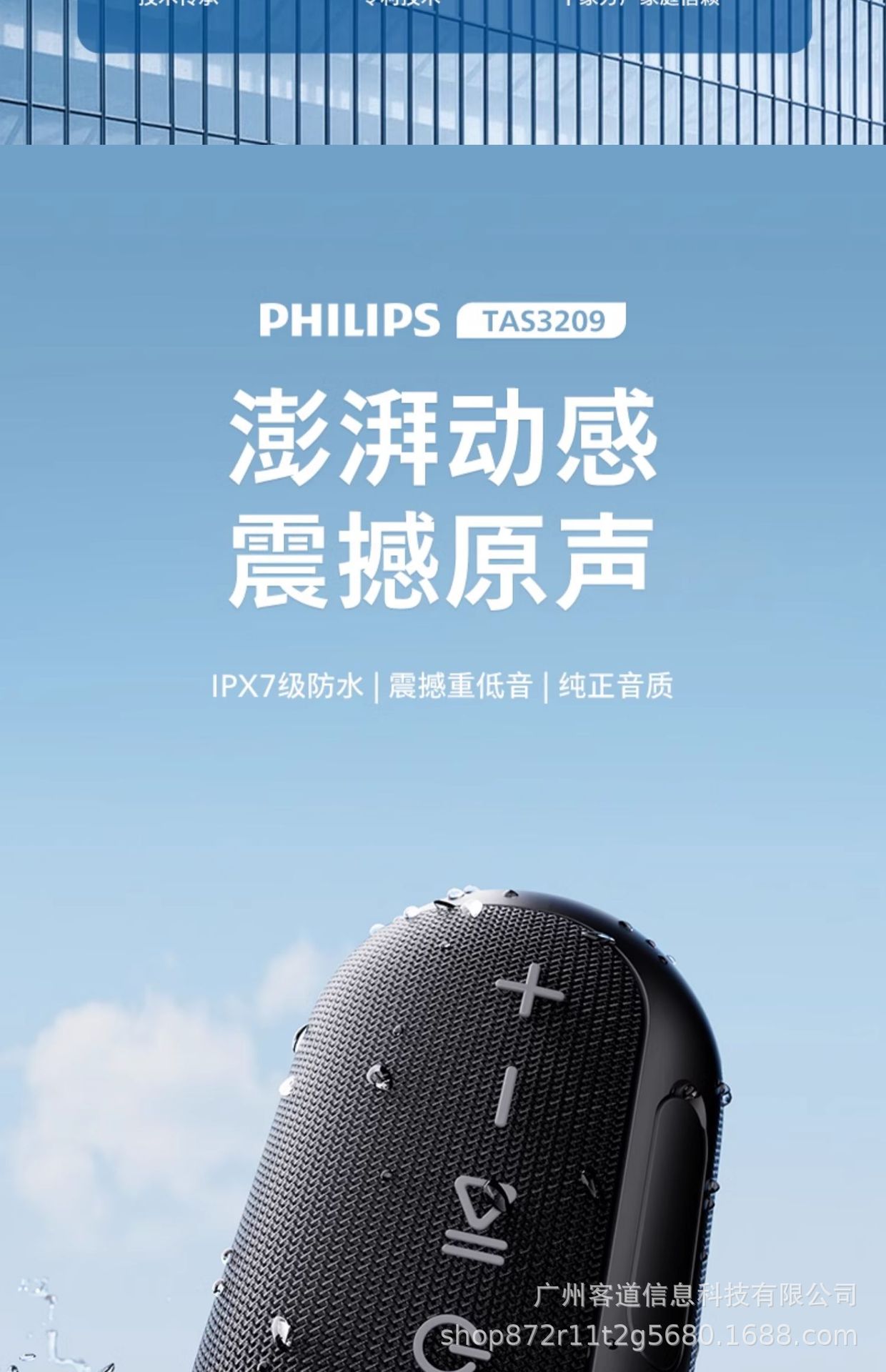 필립스 PHILIPS TAS3209 무선 블루투스 스피커 휴대용 저음 야외 스피커 방수 선물