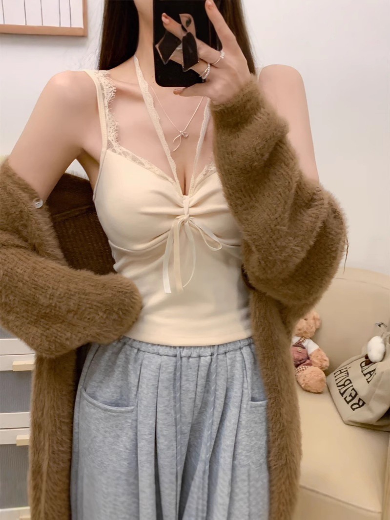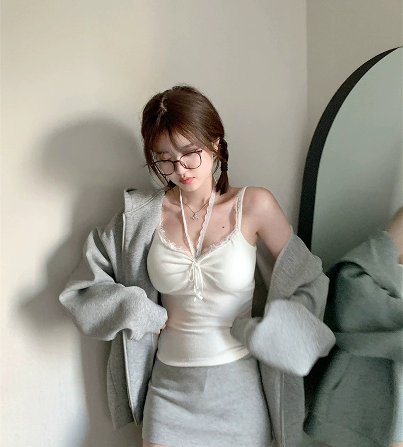 1822 #2025 새로운 스타일 레이스 카미솔 가슴 패드 여성용 봄과 여름 슬림 핏 핫 걸탑