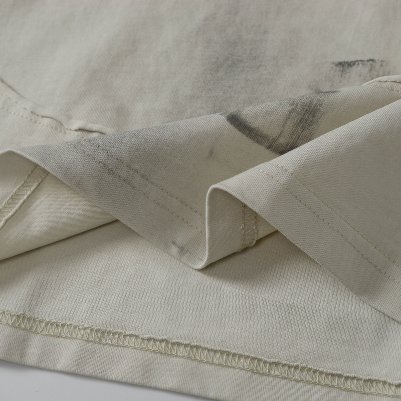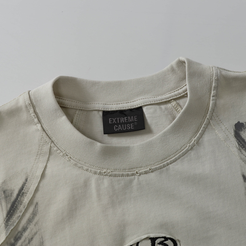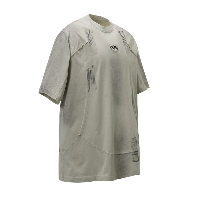 아메리칸 스타일 하이 스트리트 패션 브랜드 레트로 더러운 반팔 남성 스티칭 티셔츠 유행 독특한 느슨한 둥근 목 반소매 셔츠스토어 가기