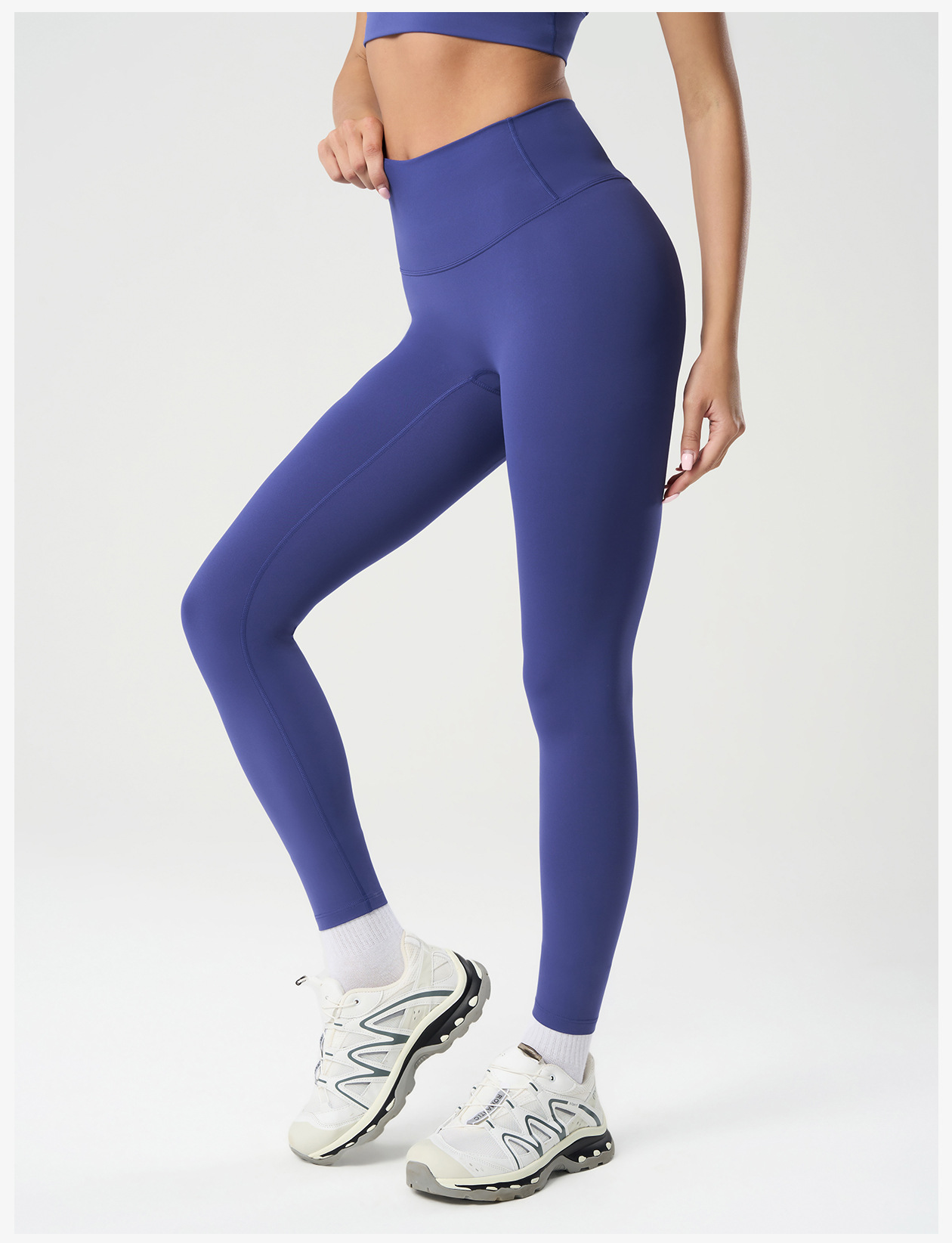 국경 간 알몸 감각 모양의 요가 바지 방황 라인 라이딩 피트니스 바지 외부 착용 스포츠 자른 바지 여성 D19108