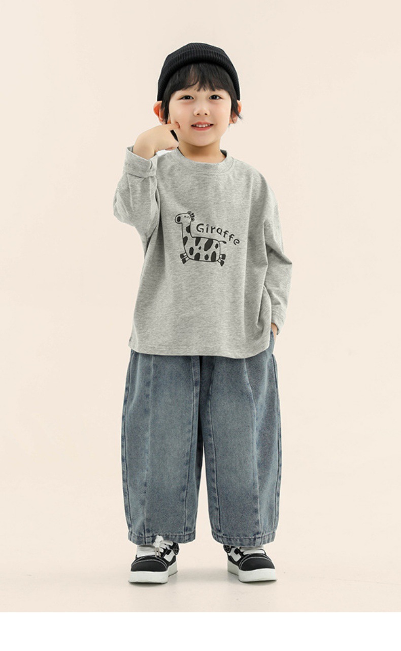 창궈 의류 남아용 긴팔 티셔츠 봄옷 아동용 신상 한국판 만화 캐릭터 중소형 아동용 봄가을 회색 상의