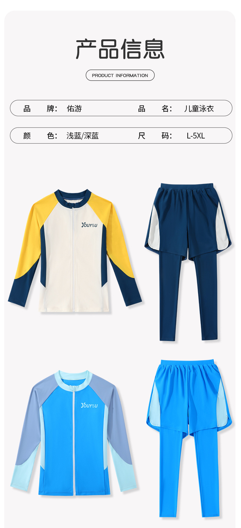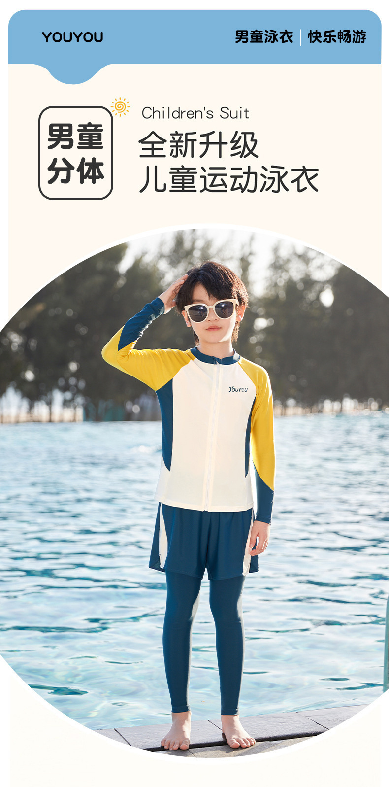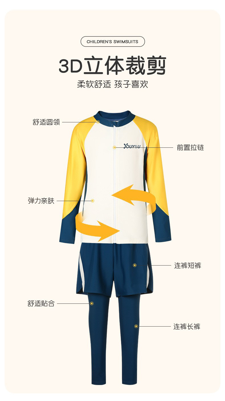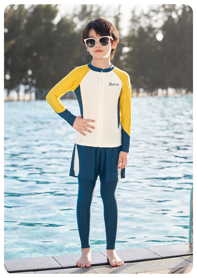 Youyou 어린이 수영복 소년 분할 긴 소매 바지 2025 새로운 스타일 중첩 세트 수영 트렁크 세트스토어 가기