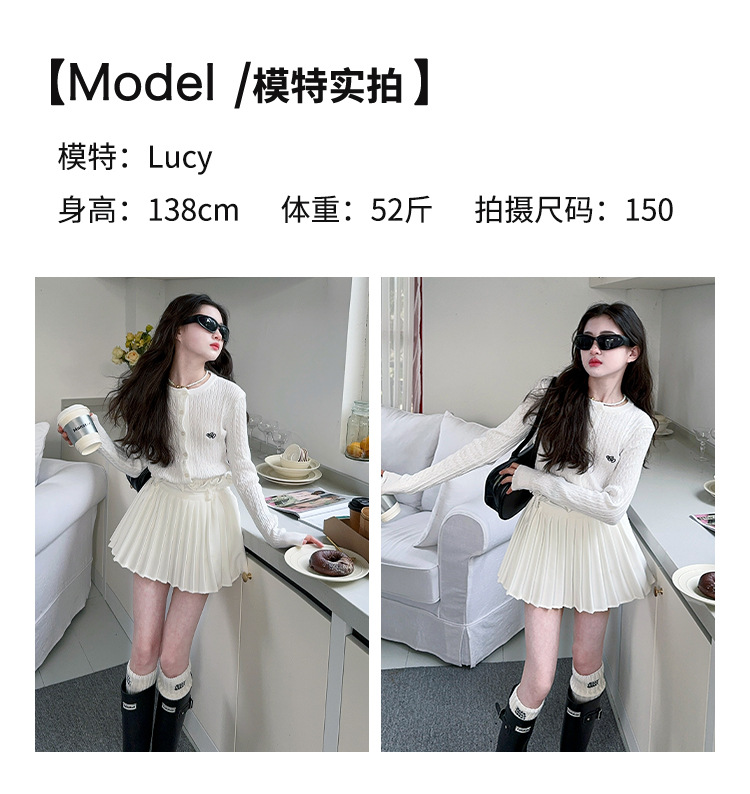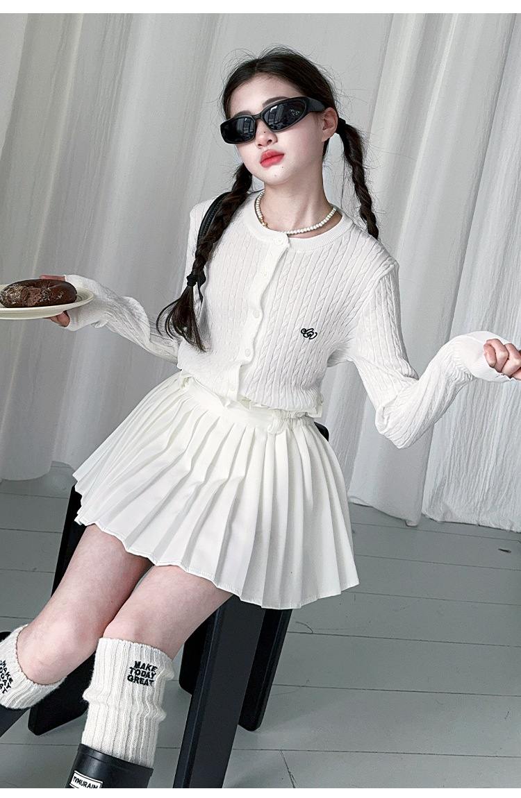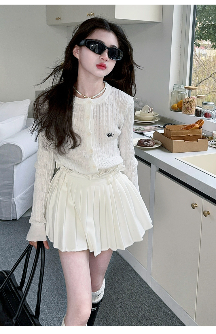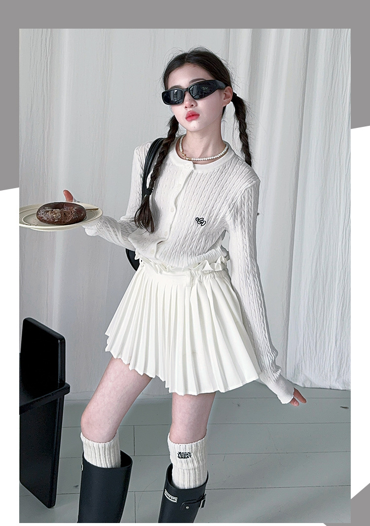 한국 스타일 대학 스타일 긴 소매 니트 카디건 탑 봄 소녀 새로운 높은 허리 주름 치마 투피스 세트스토어 가기