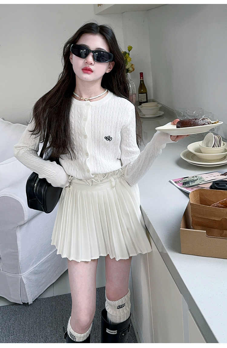 한국 스타일 대학 스타일 긴 소매 니트 카디건 탑 봄 소녀 새로운 높은 허리 주름 치마 투피스 세트