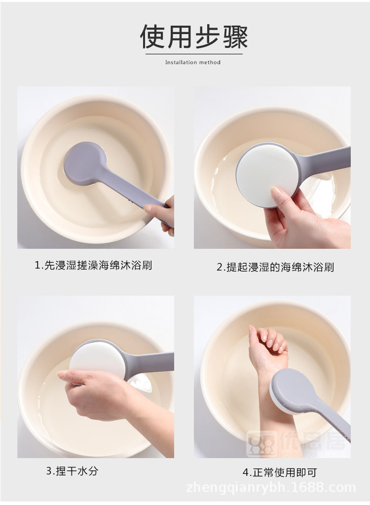긴 손잡이 목욕 장치 부드러운 머리 목욕 마사지 목욕 브러시 다시 문지르는 목욕 긴 손잡이 목욕 브러시 공장 직접 도매