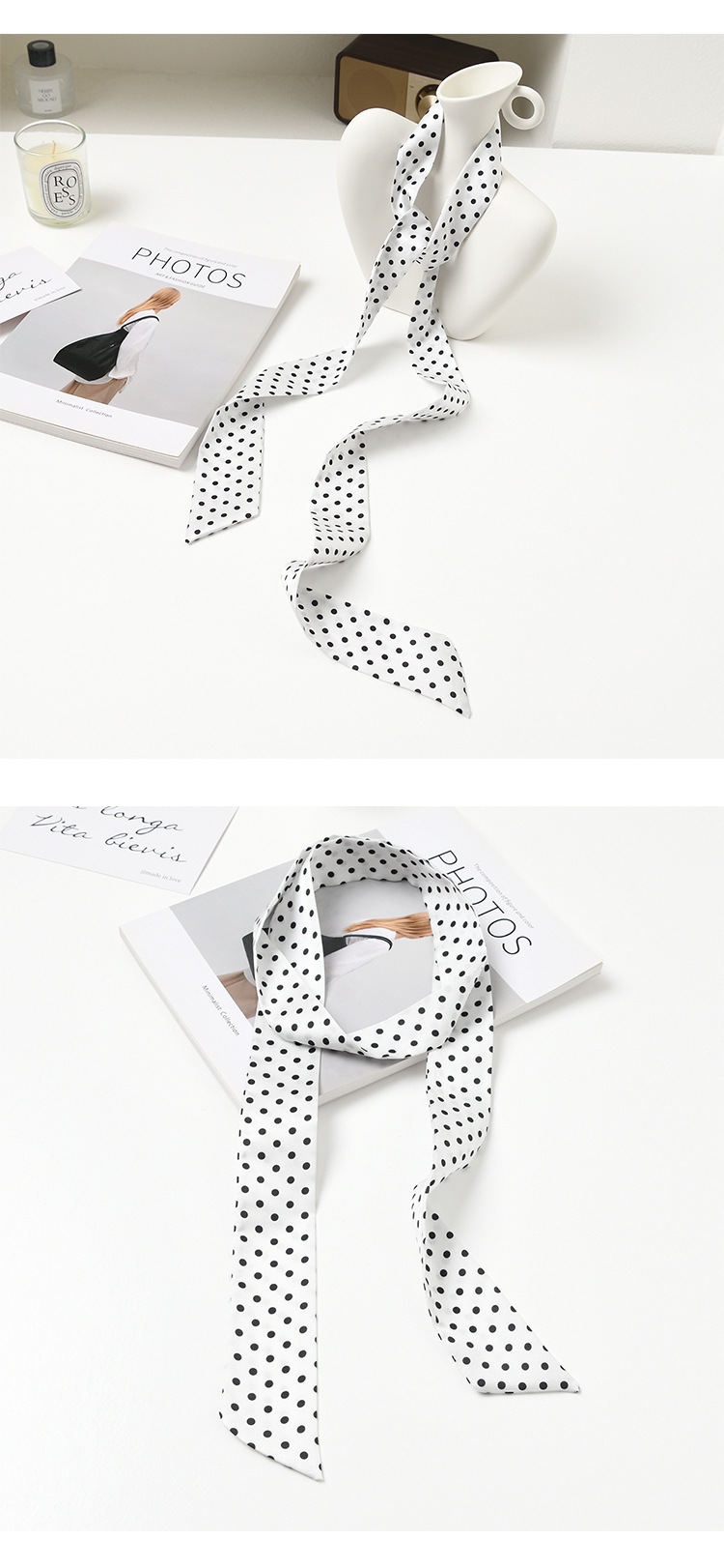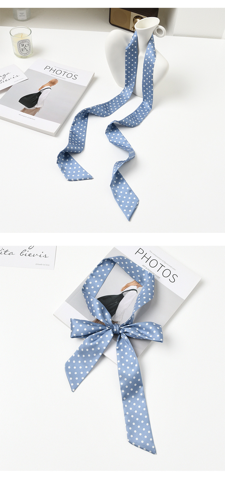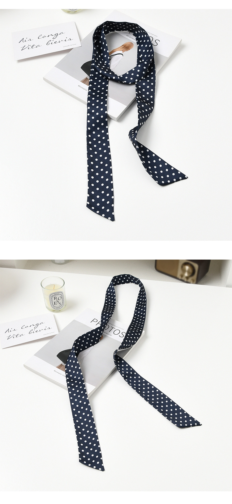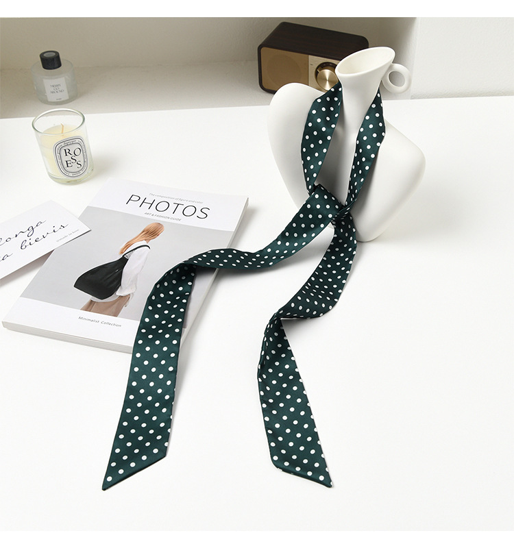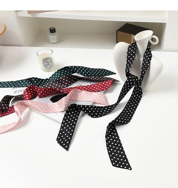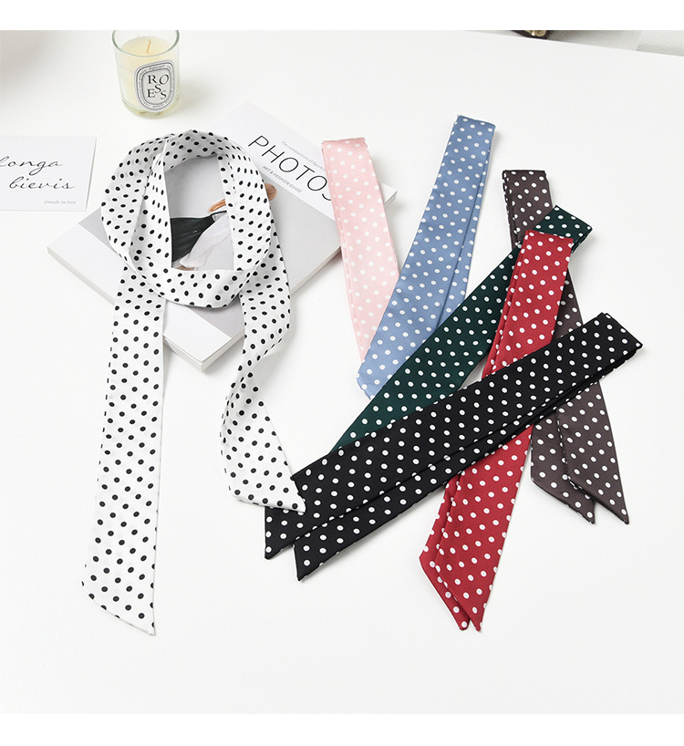 폴로 도트 실크 스카프 목 헤어 밴드 넥타이 헤어 여성 하이 엔드 우아한 스카프 여름 얇은 목 보호 스카프 긴 머리스토어 가기