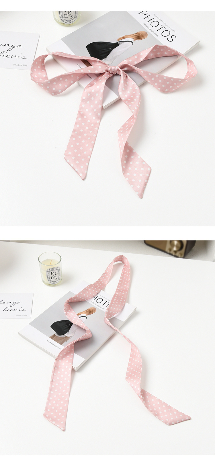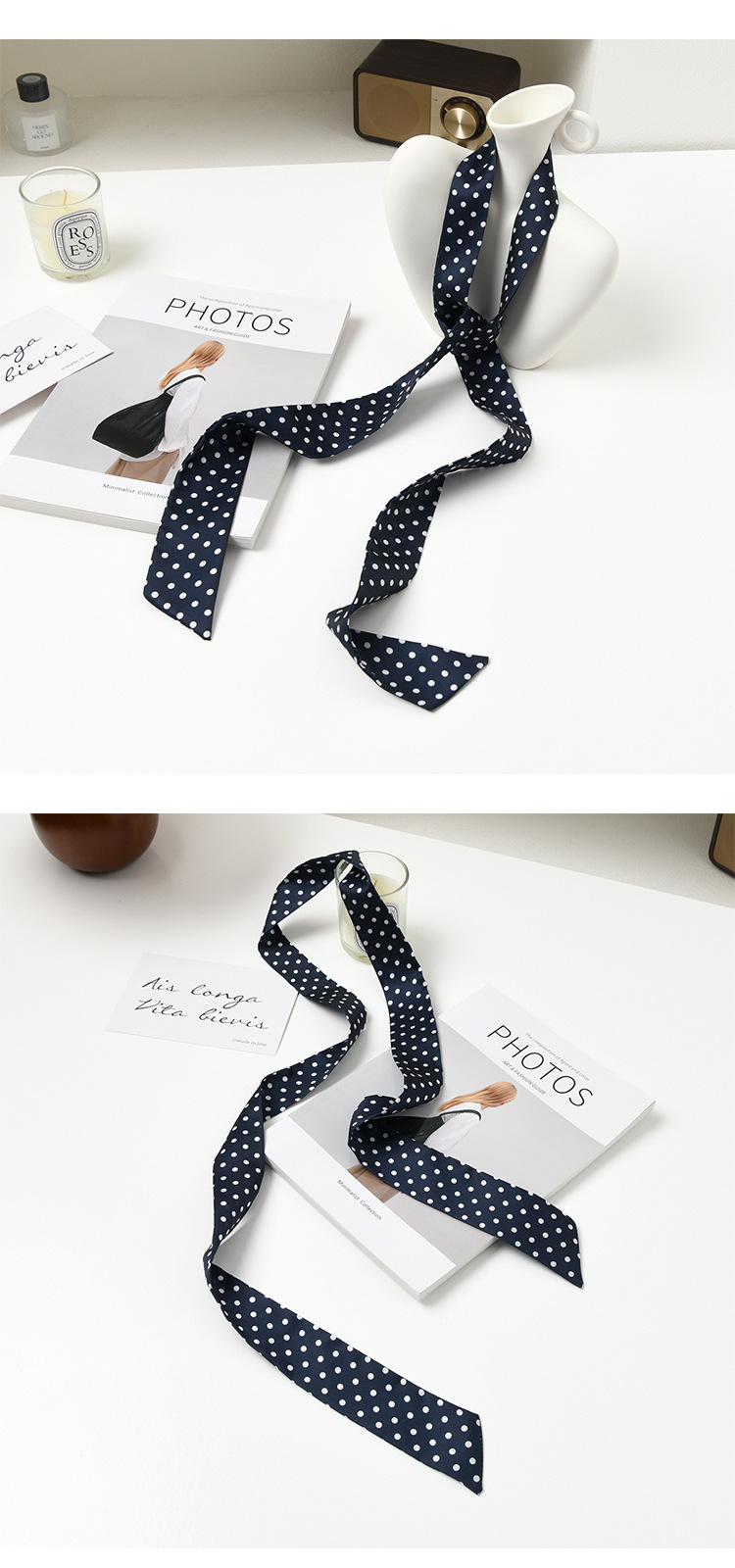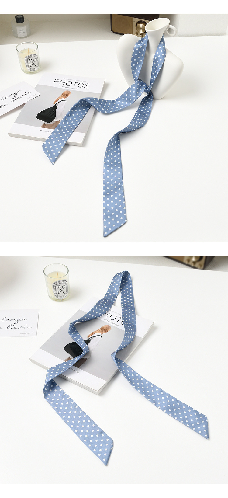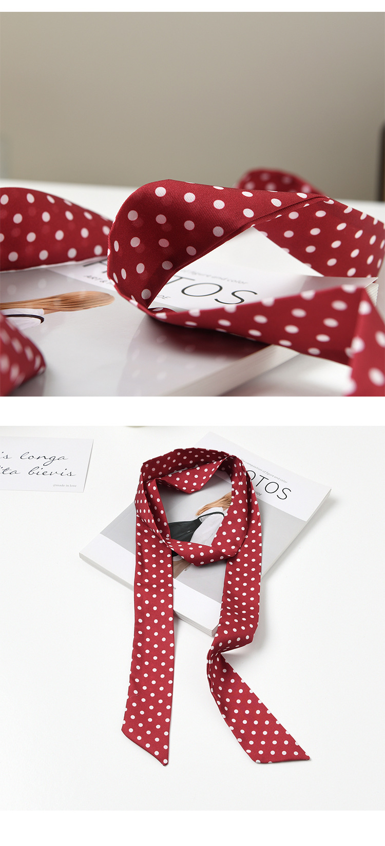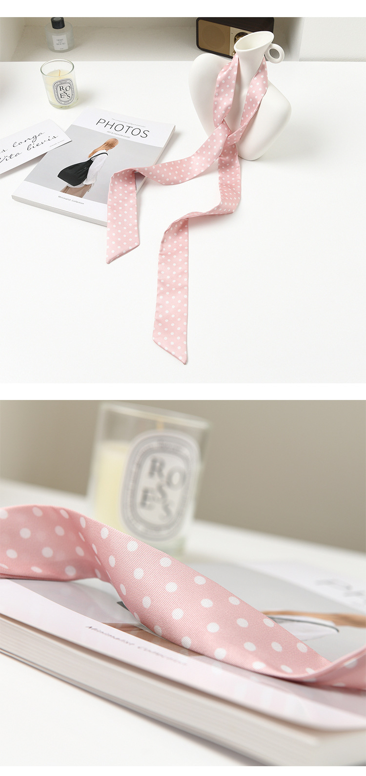 폴로 도트 실크 스카프 목 헤어 밴드 넥타이 헤어 여성 하이 엔드 우아한 스카프 여름 얇은 목 보호 스카프 긴 머리스토어 가기