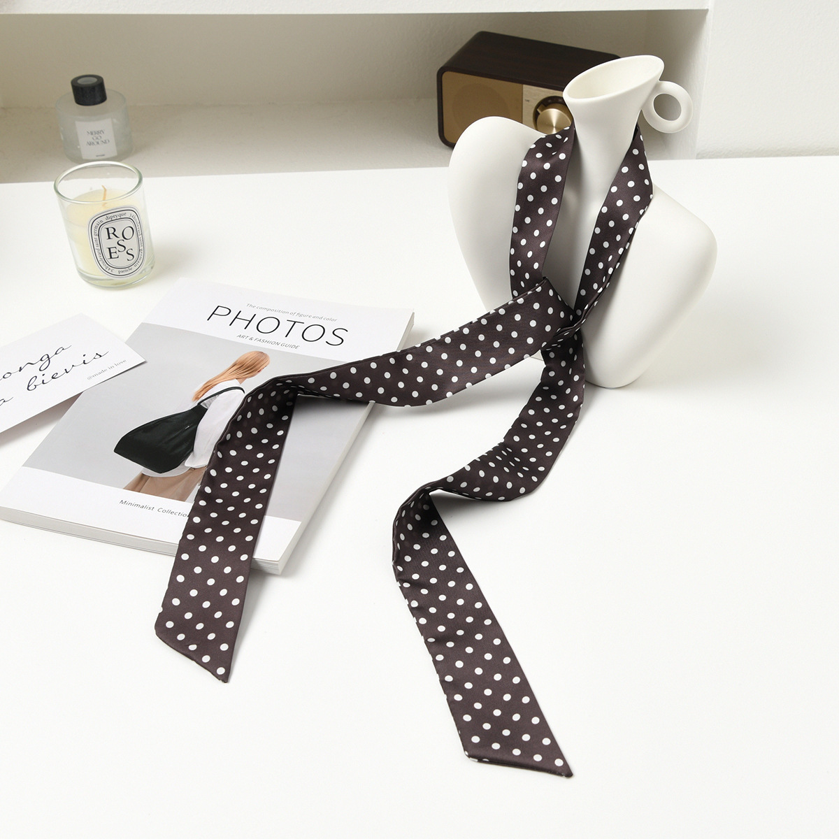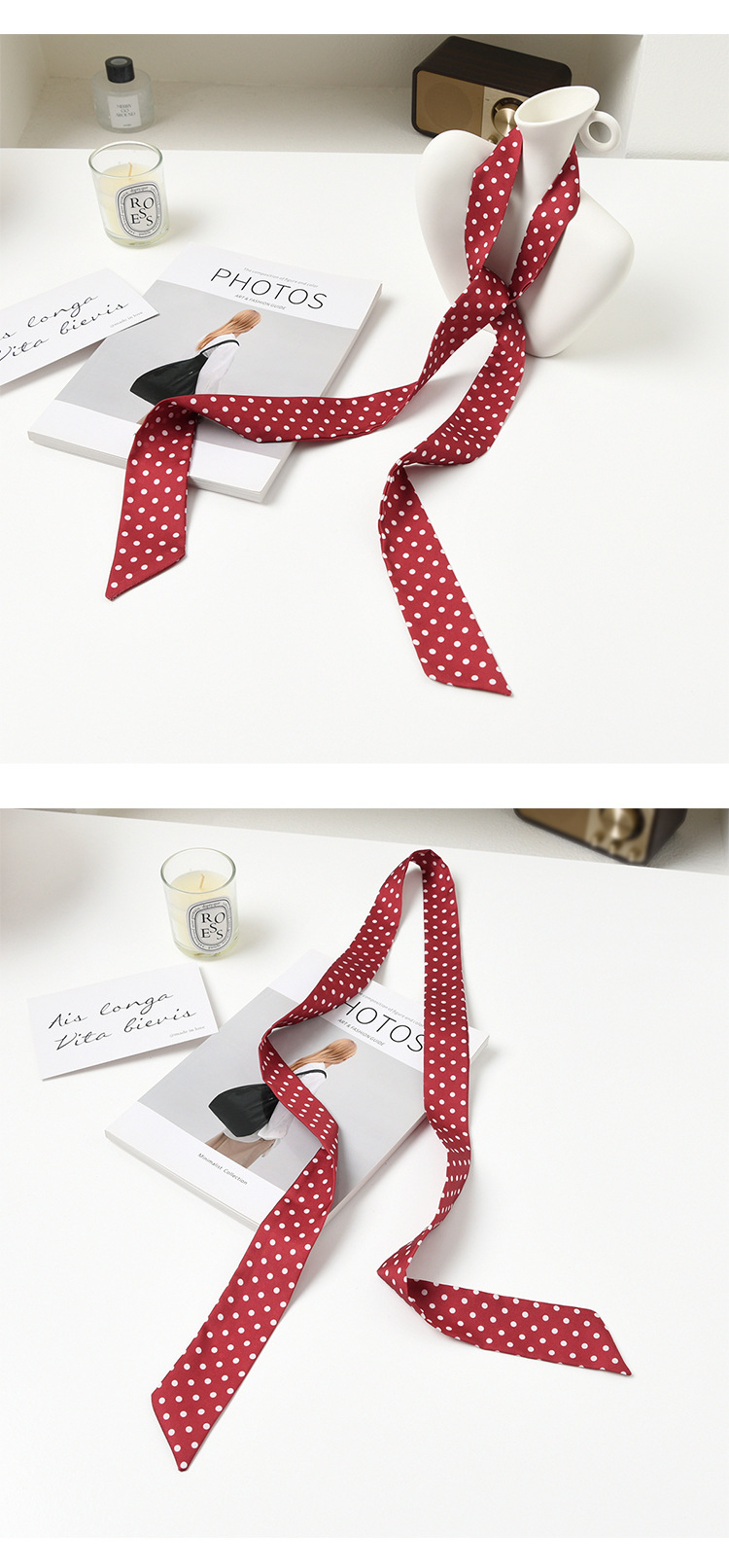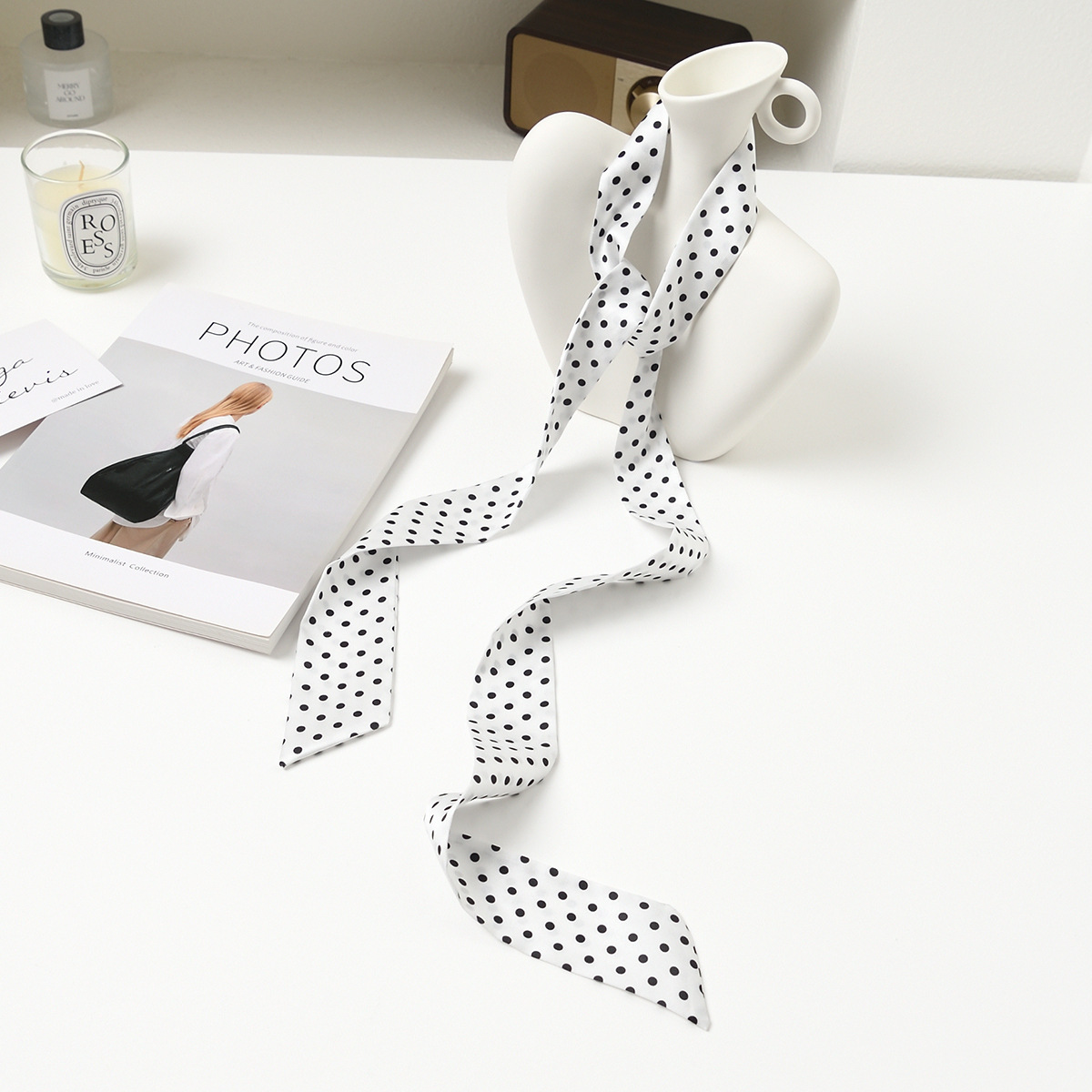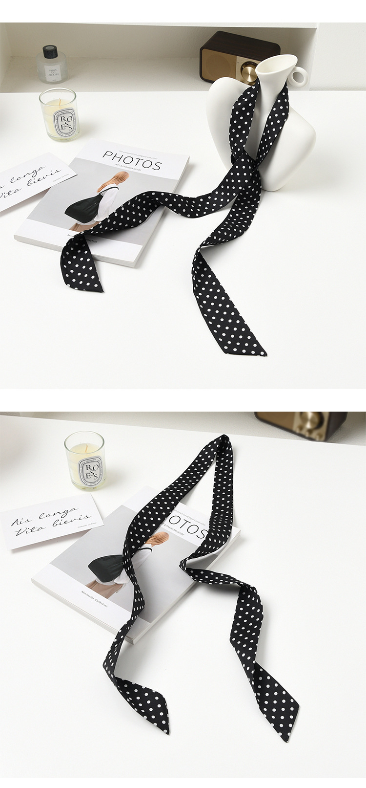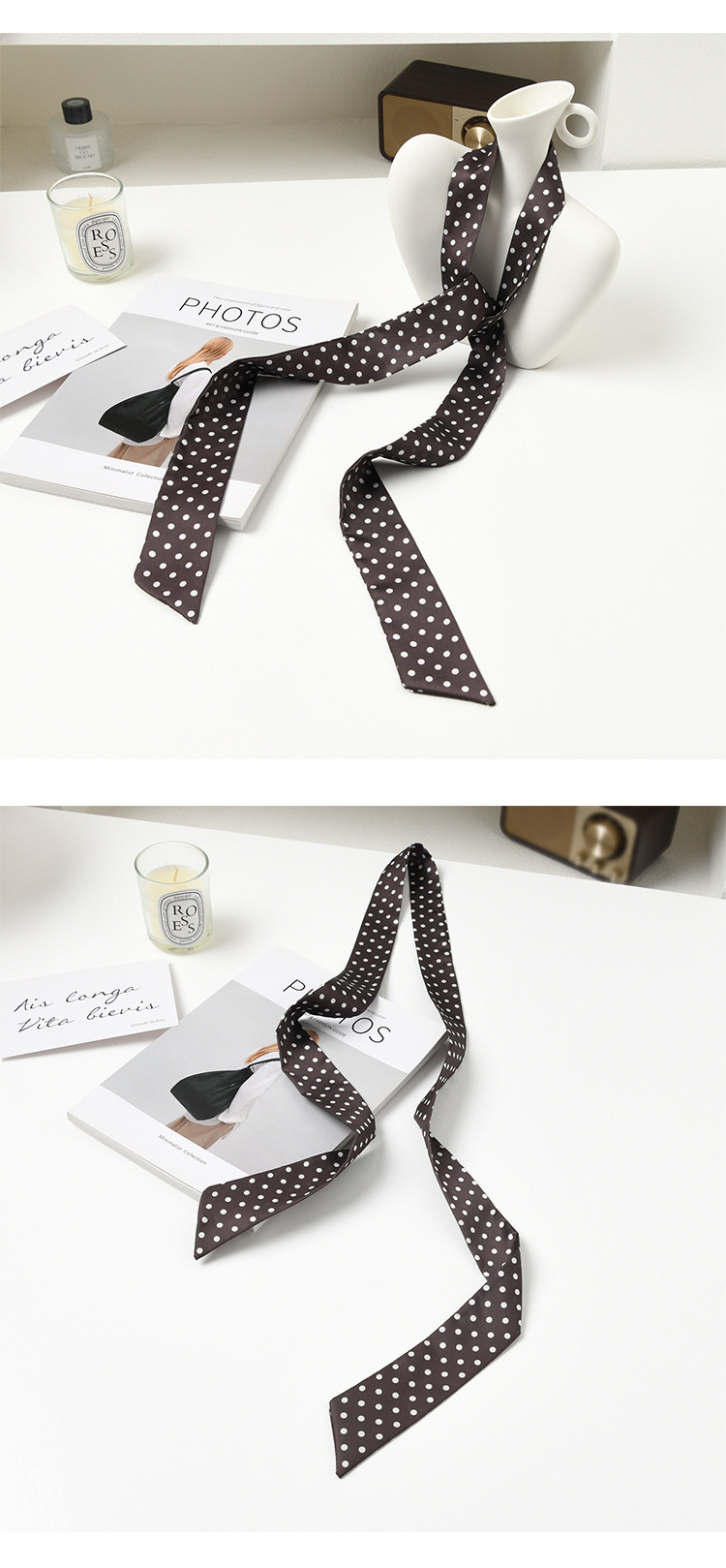 폴로 도트 실크 스카프 목 헤어 밴드 넥타이 헤어 여성 하이 엔드 우아한 스카프 여름 얇은 목 보호 스카프 긴 머리스토어 가기