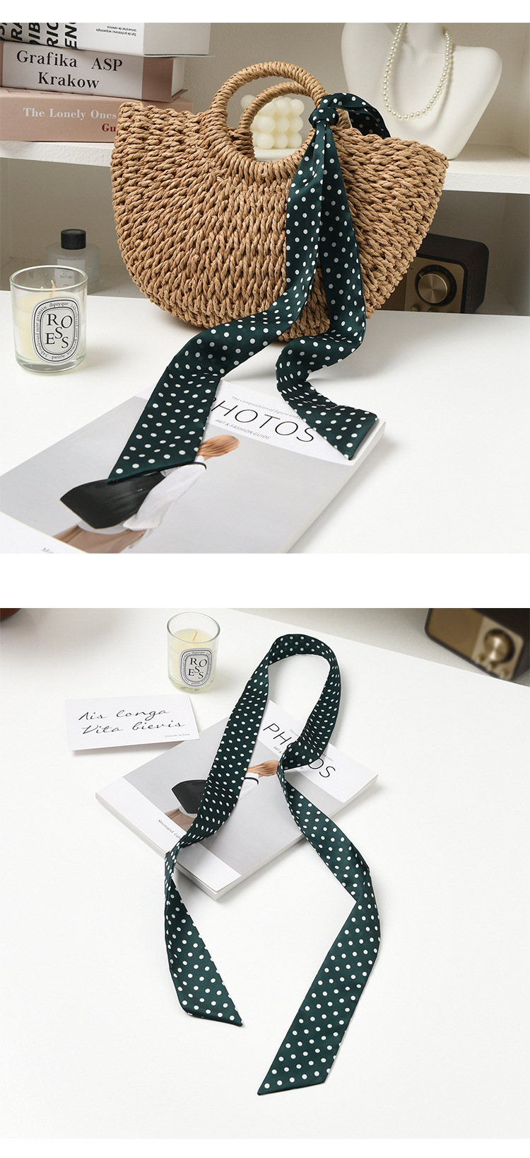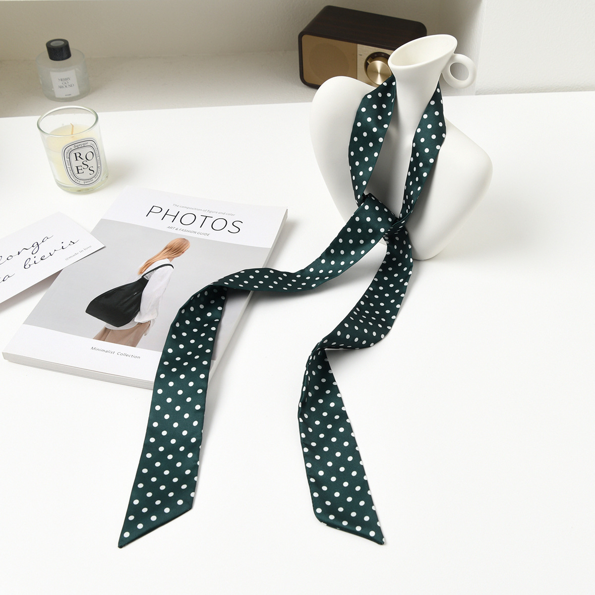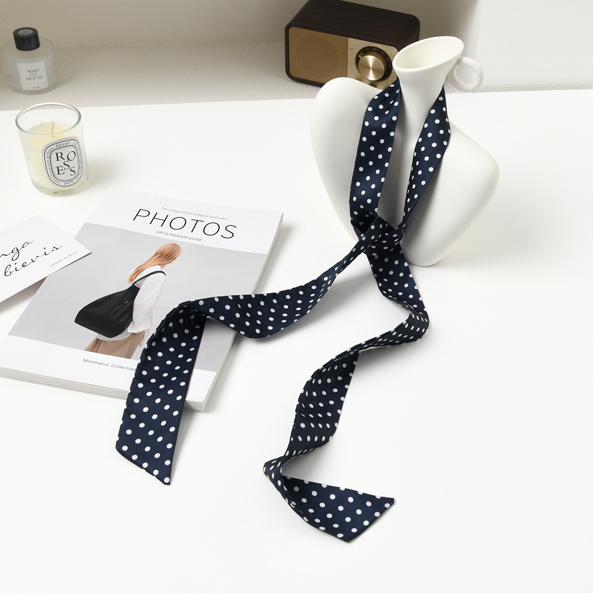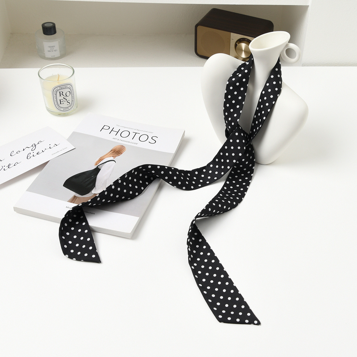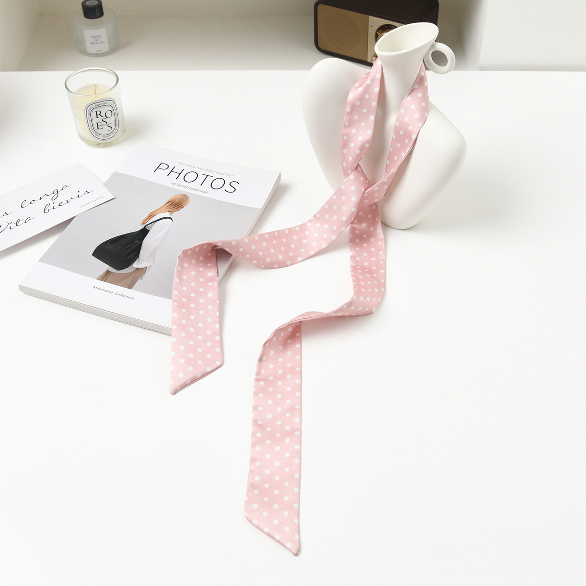 폴로 도트 실크 스카프 목 헤어 밴드 넥타이 헤어 여성 하이 엔드 우아한 스카프 여름 얇은 목 보호 스카프 긴 머리스토어 가기