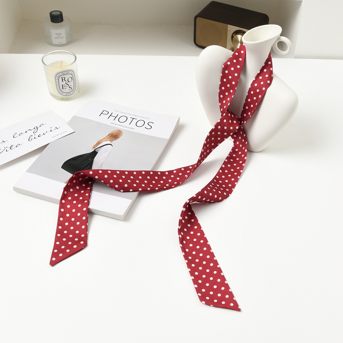 폴로 도트 실크 스카프 목 헤어 밴드 넥타이 헤어 여성 하이 엔드 우아한 스카프 여름 얇은 목 보호 스카프 긴 머리